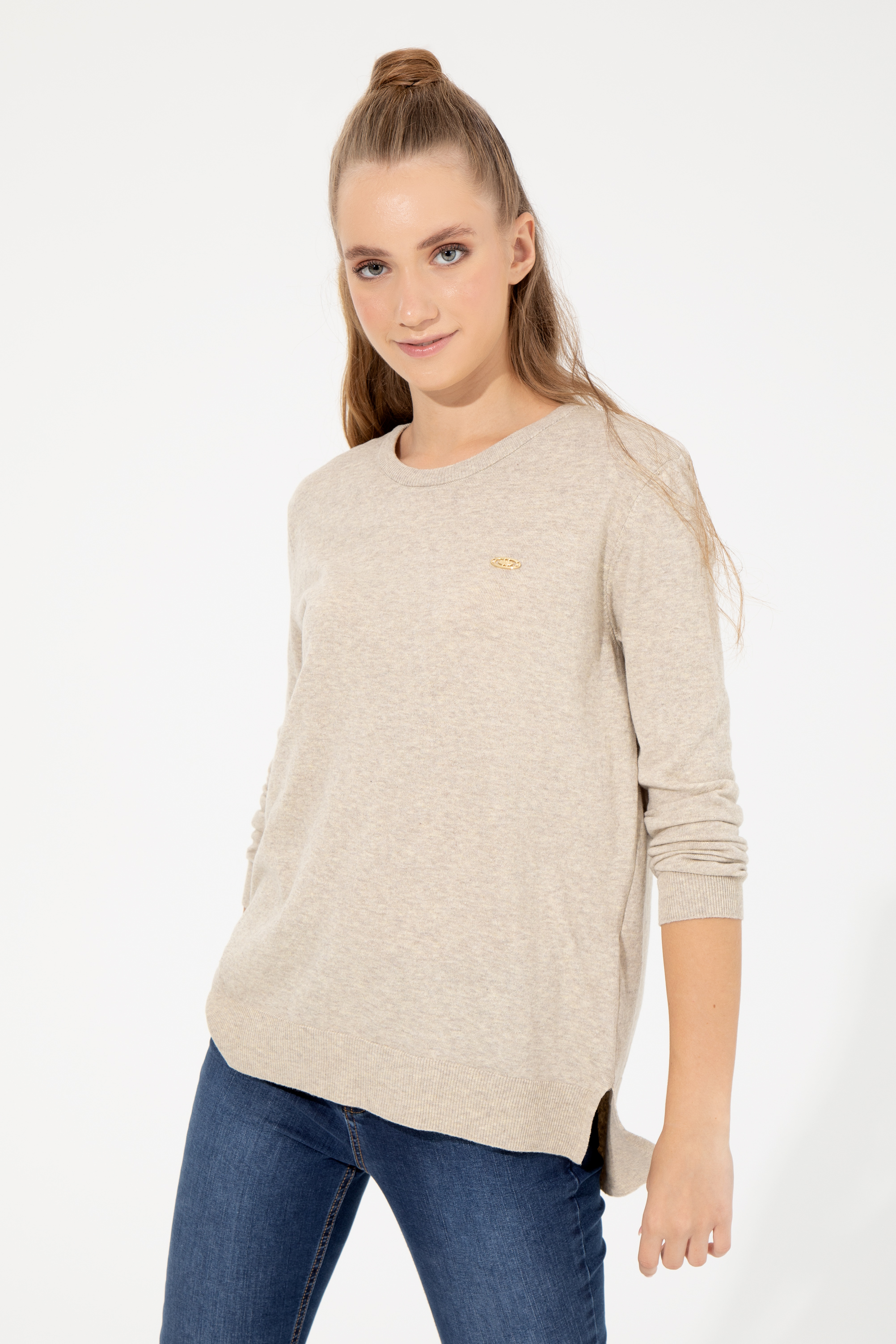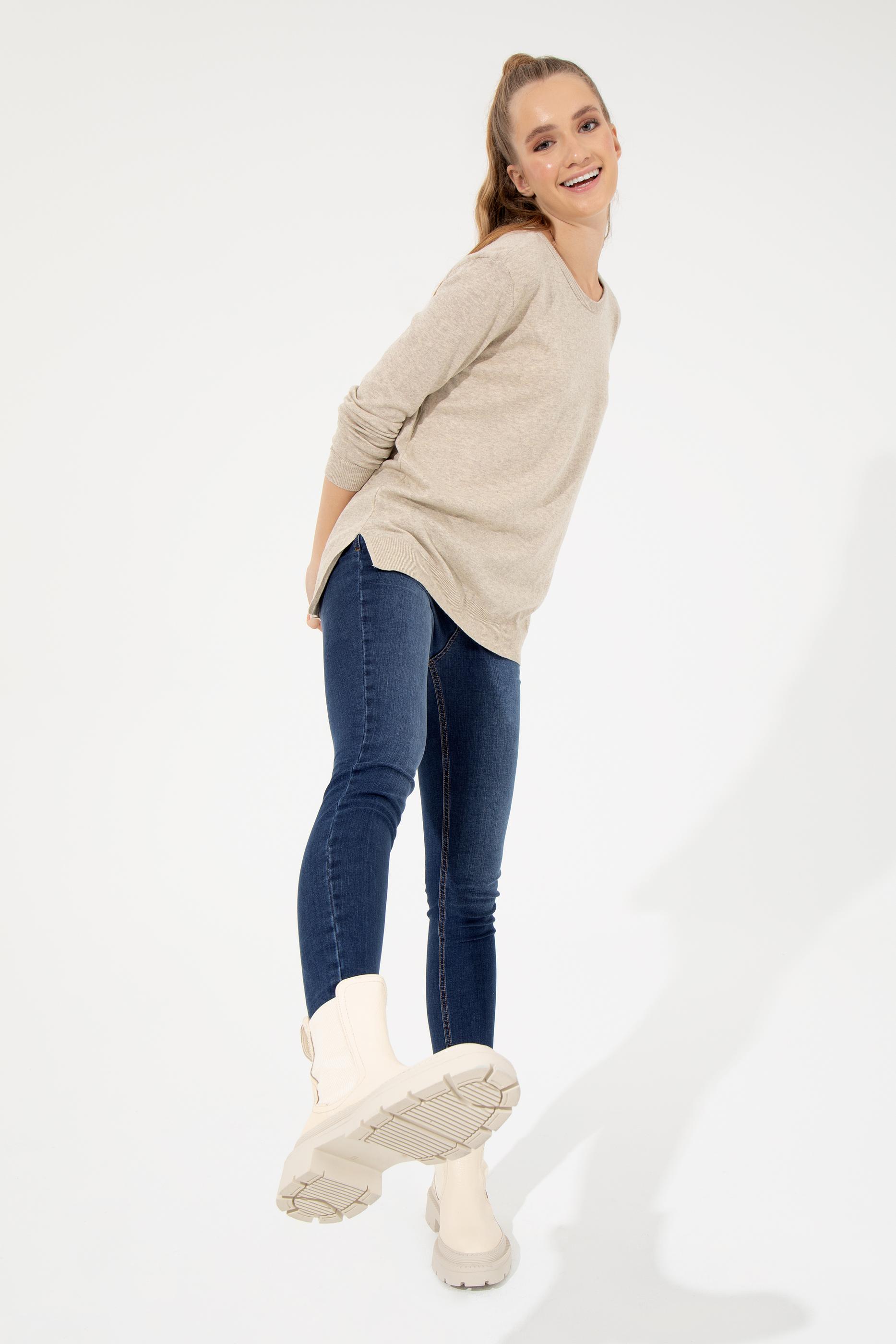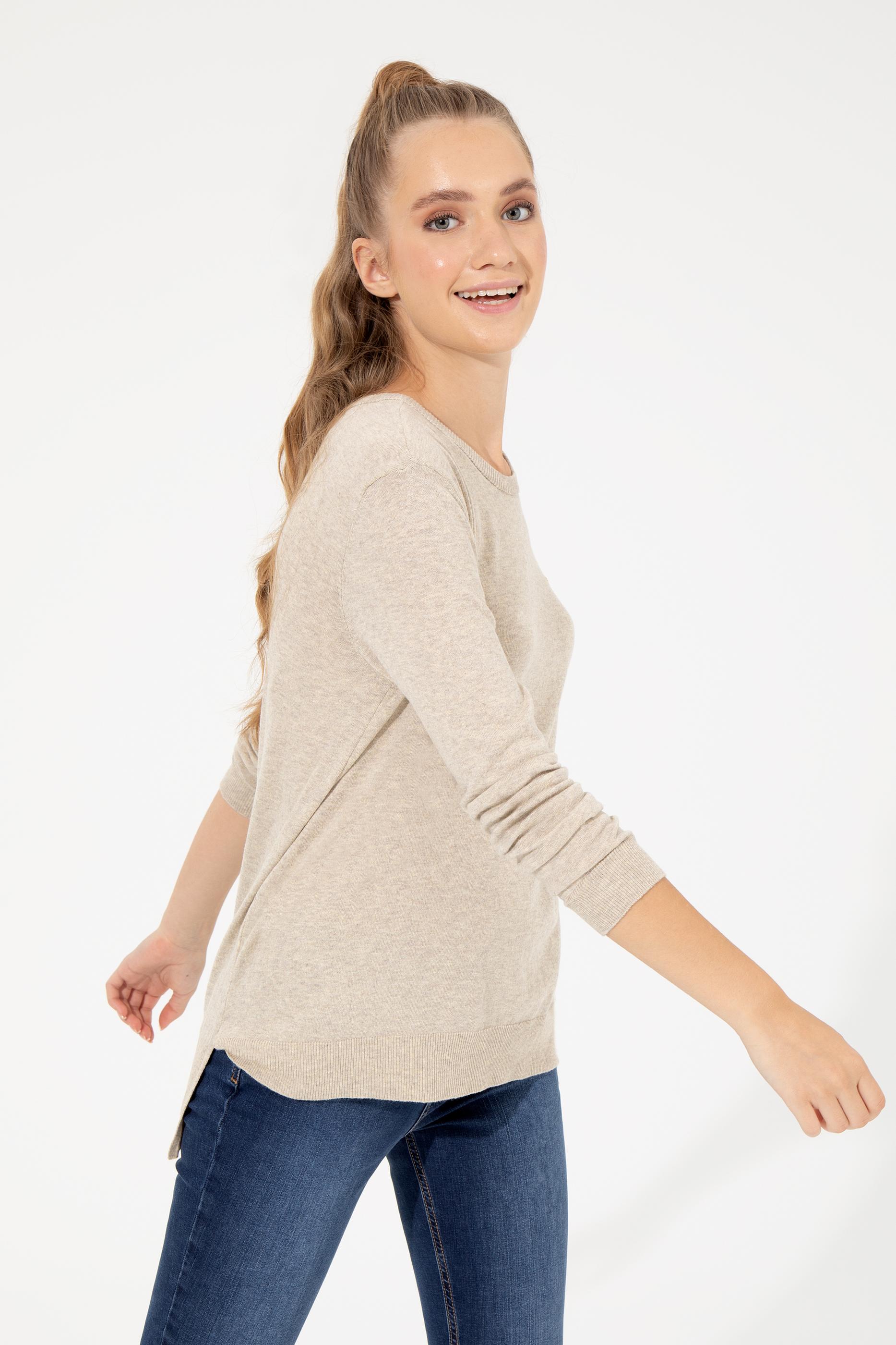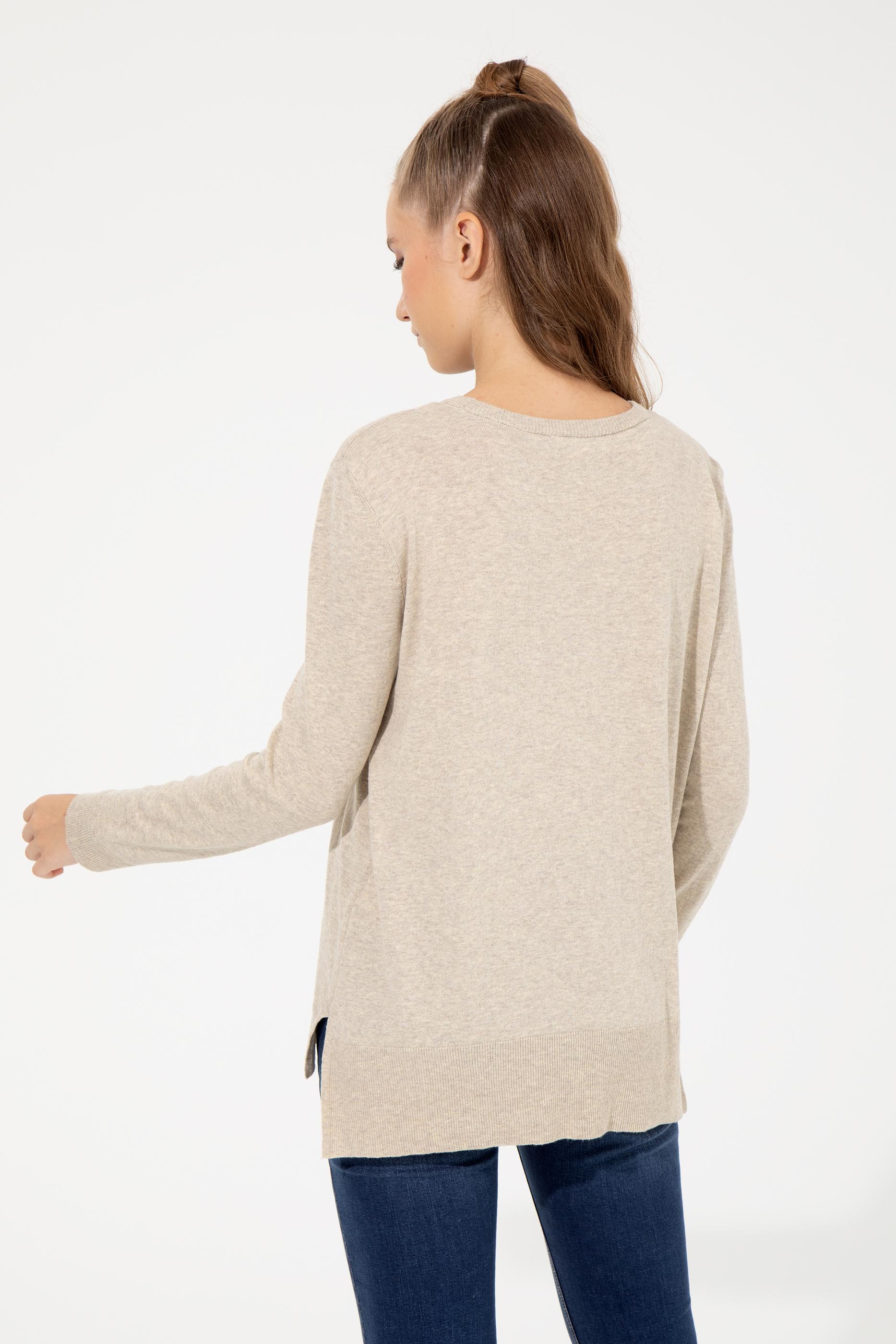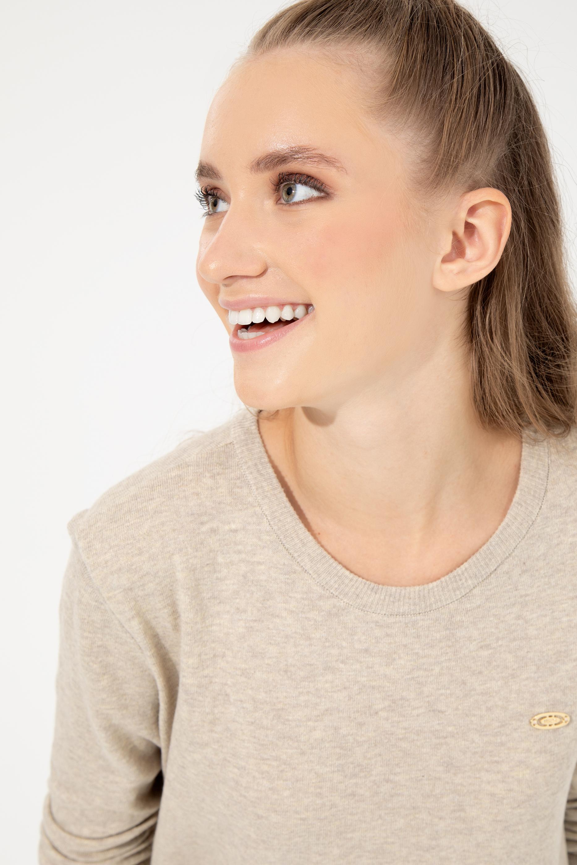 Kadın Taş Melanj Bisiklet Yaka Basic Kazak