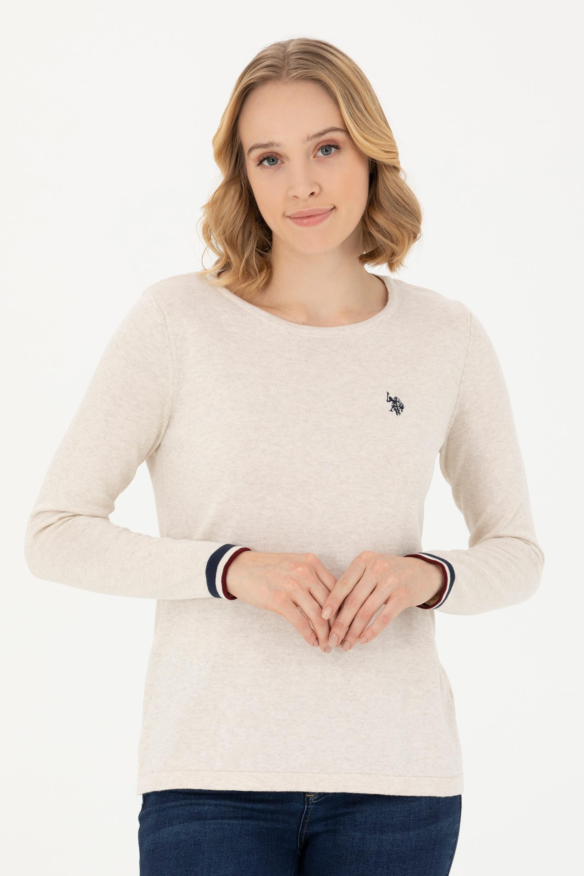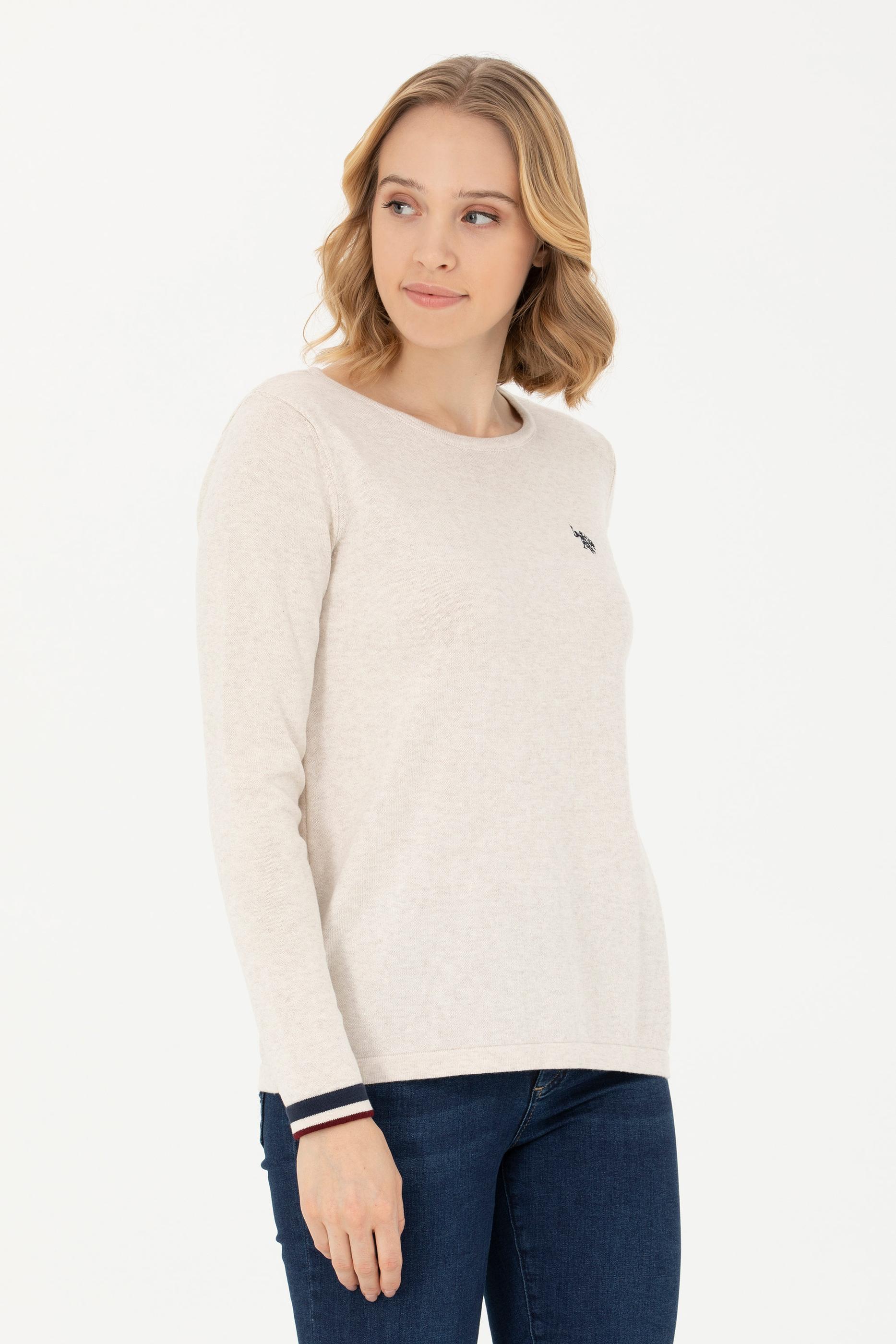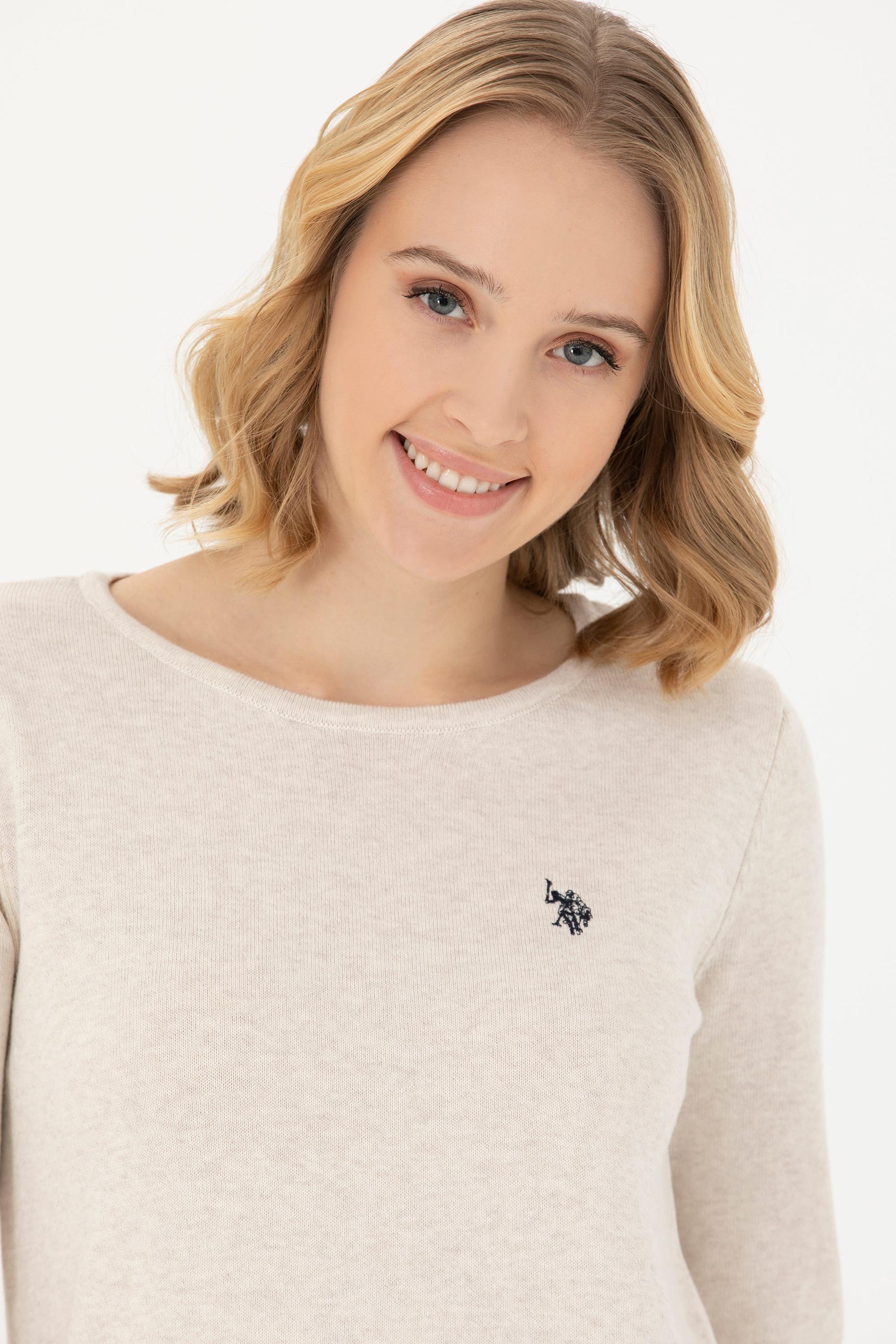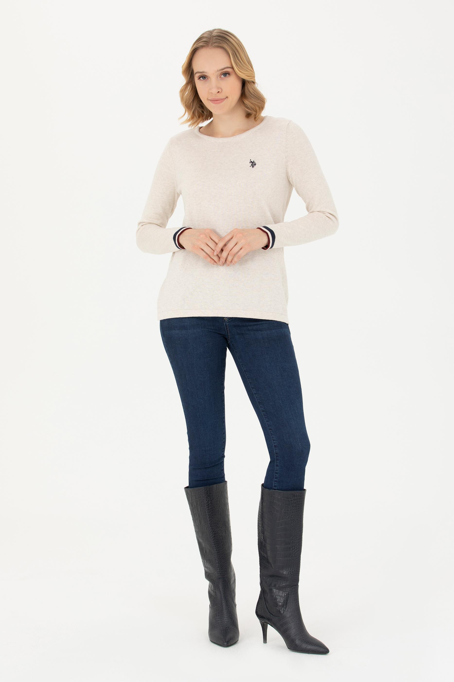 Kadın Taş Melanj Bisiklet Yaka Kazak