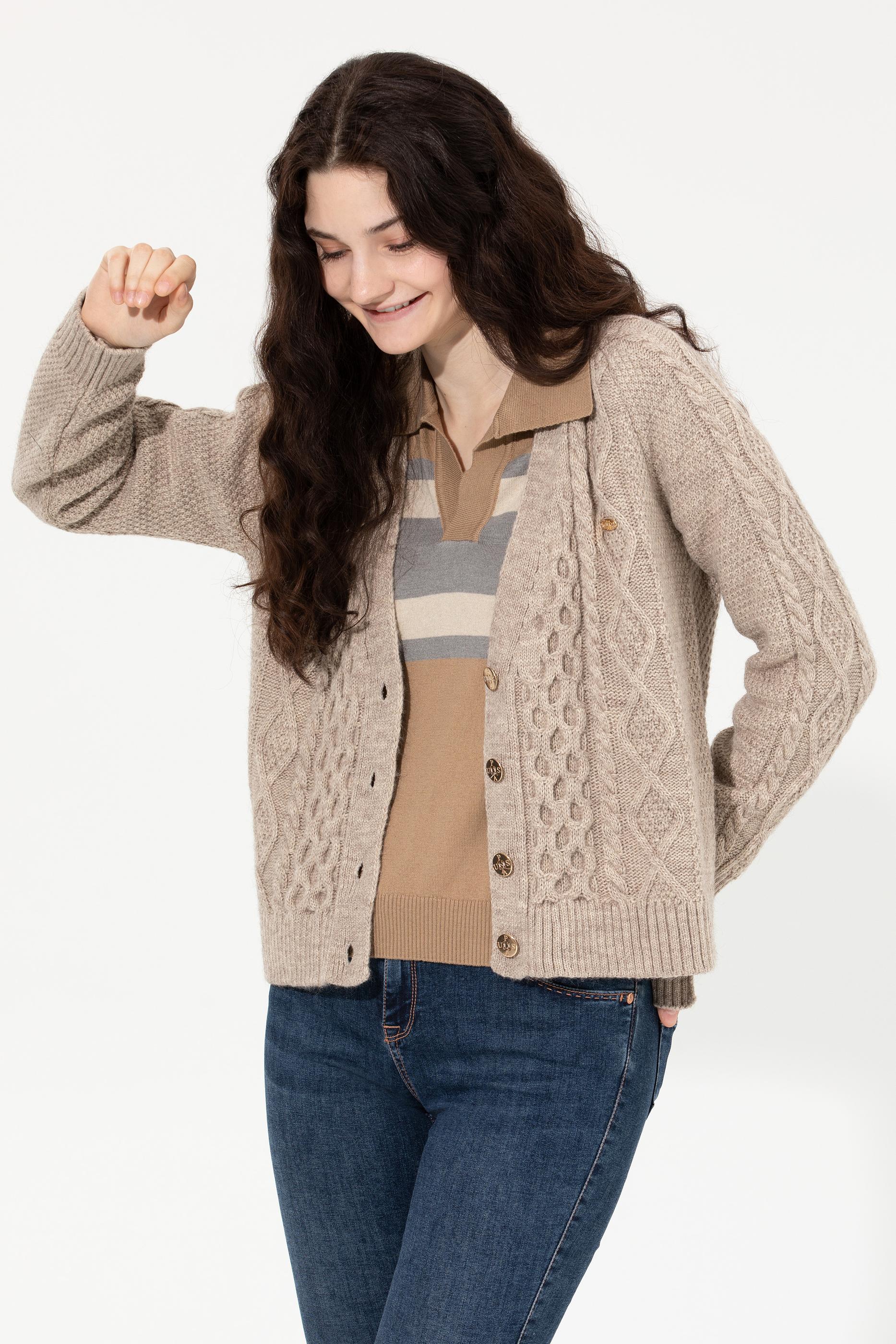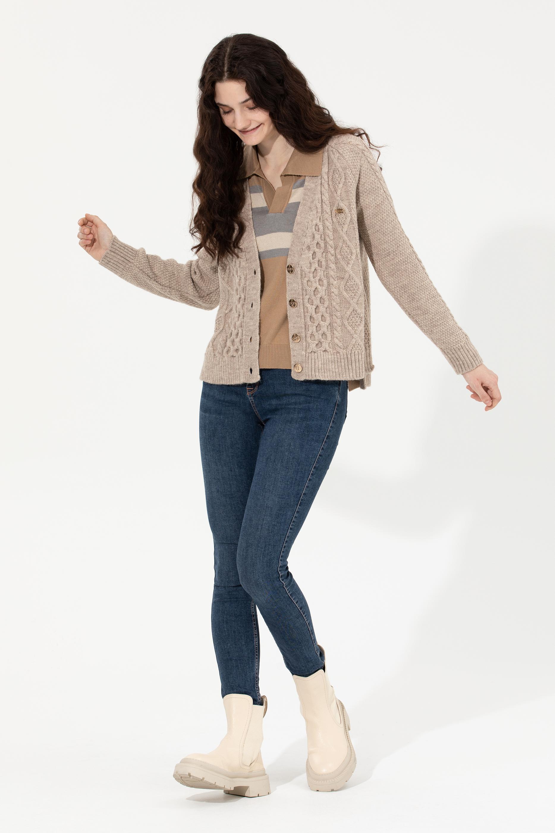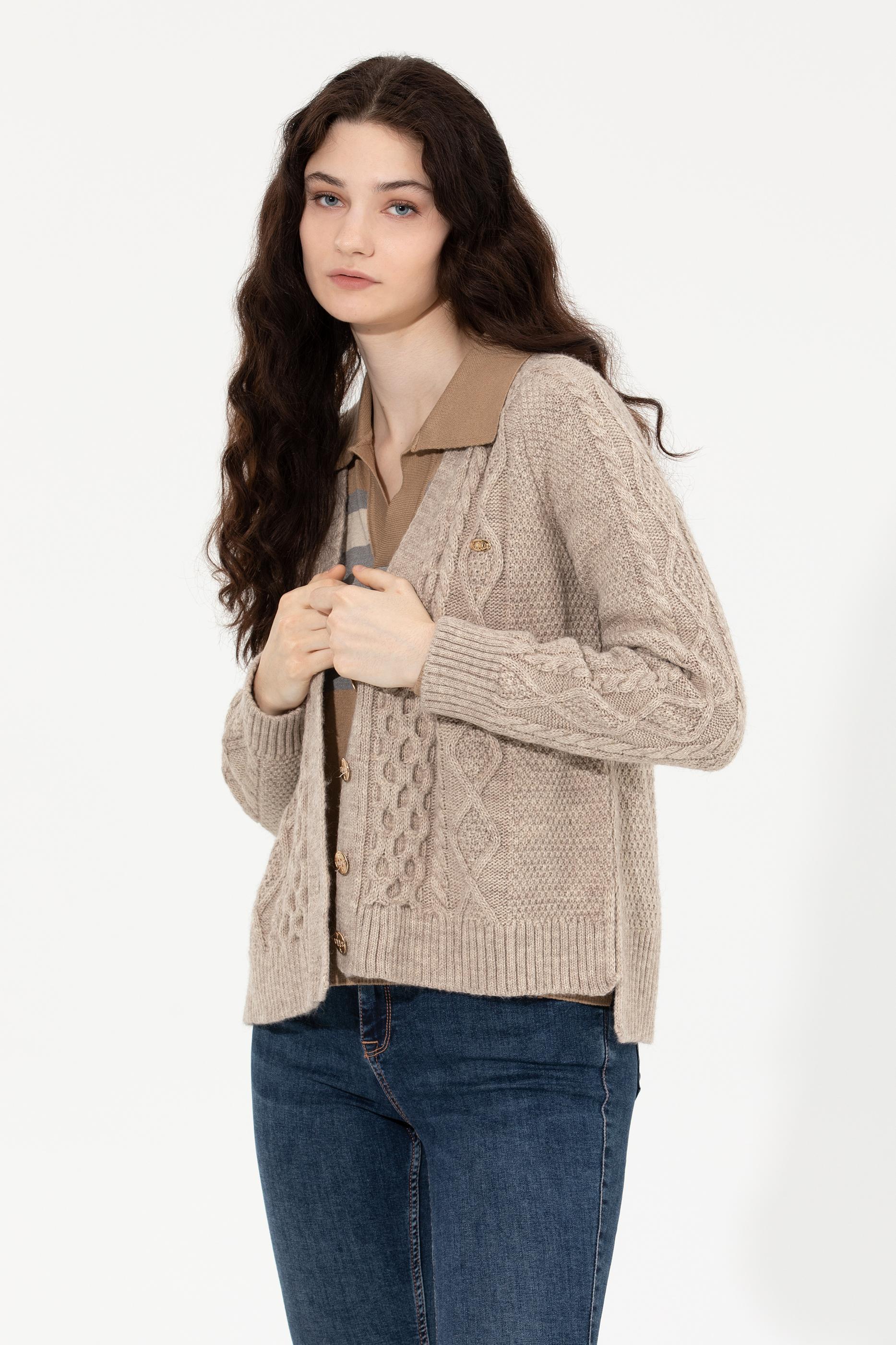 Kadın Taş Melanj Triko Hırka