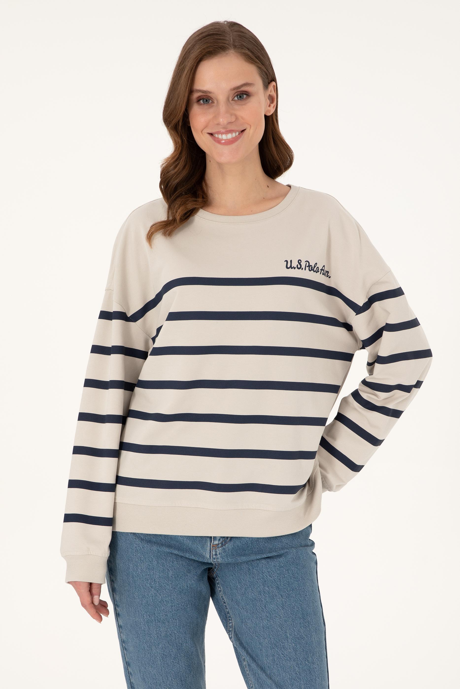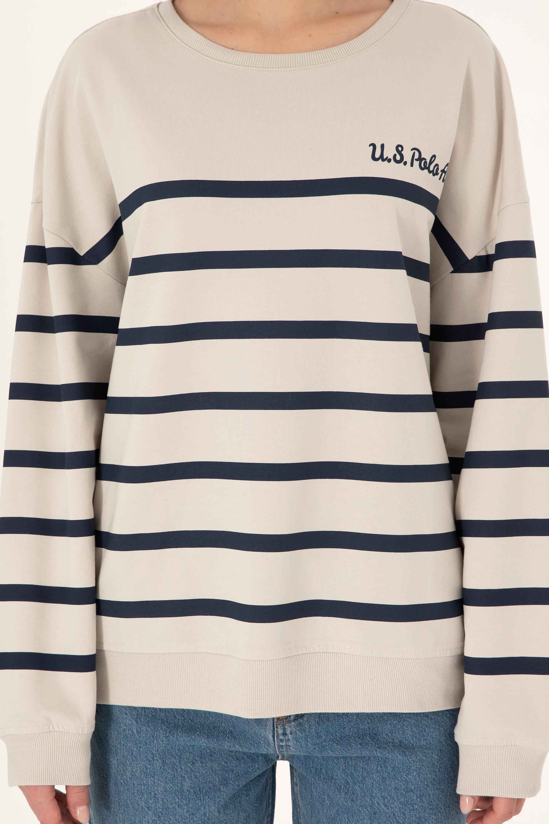 Kadın Taş Çizgili Bisiklet Yaka Sweatshirt
