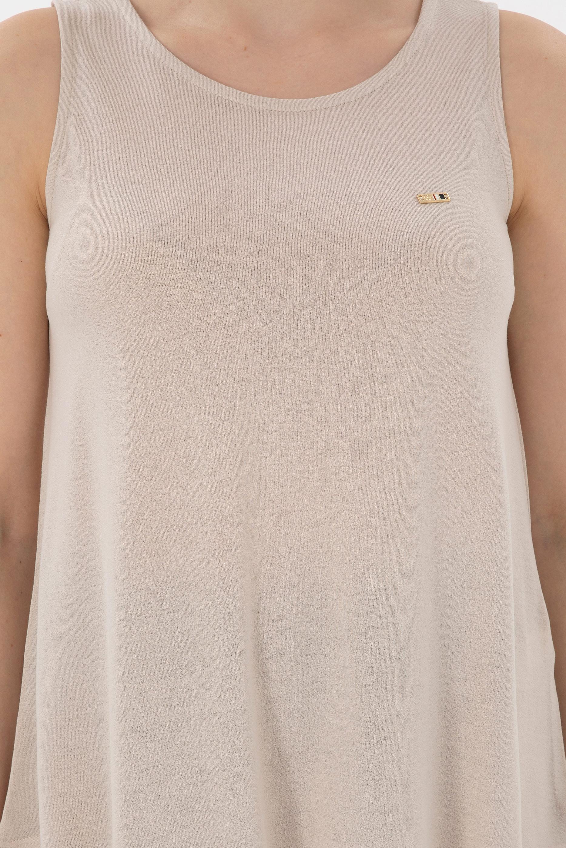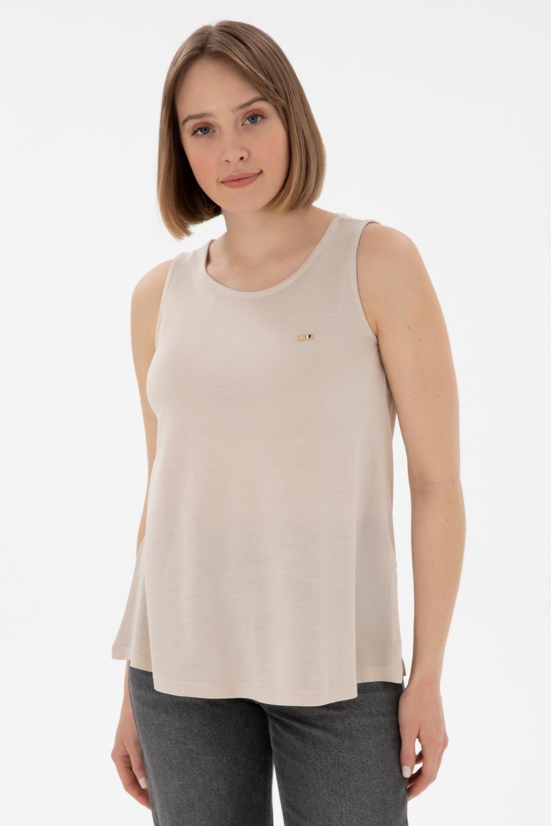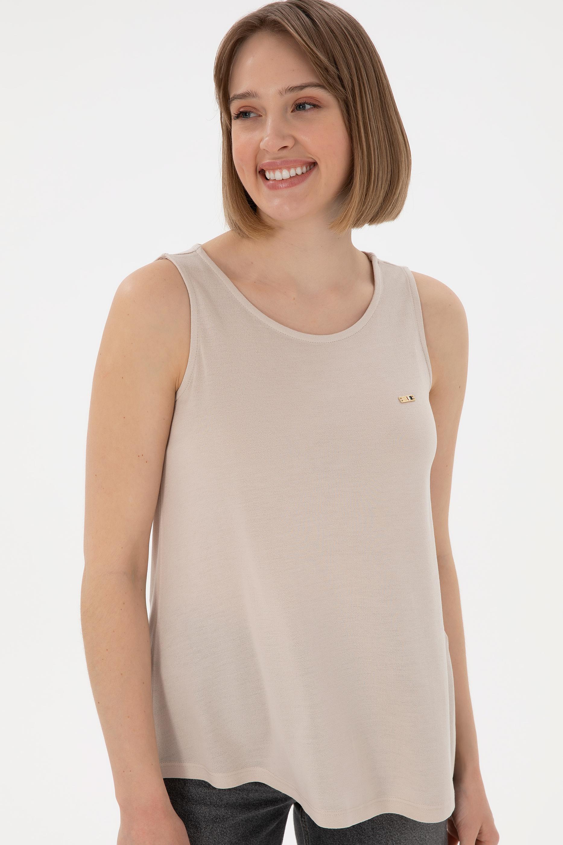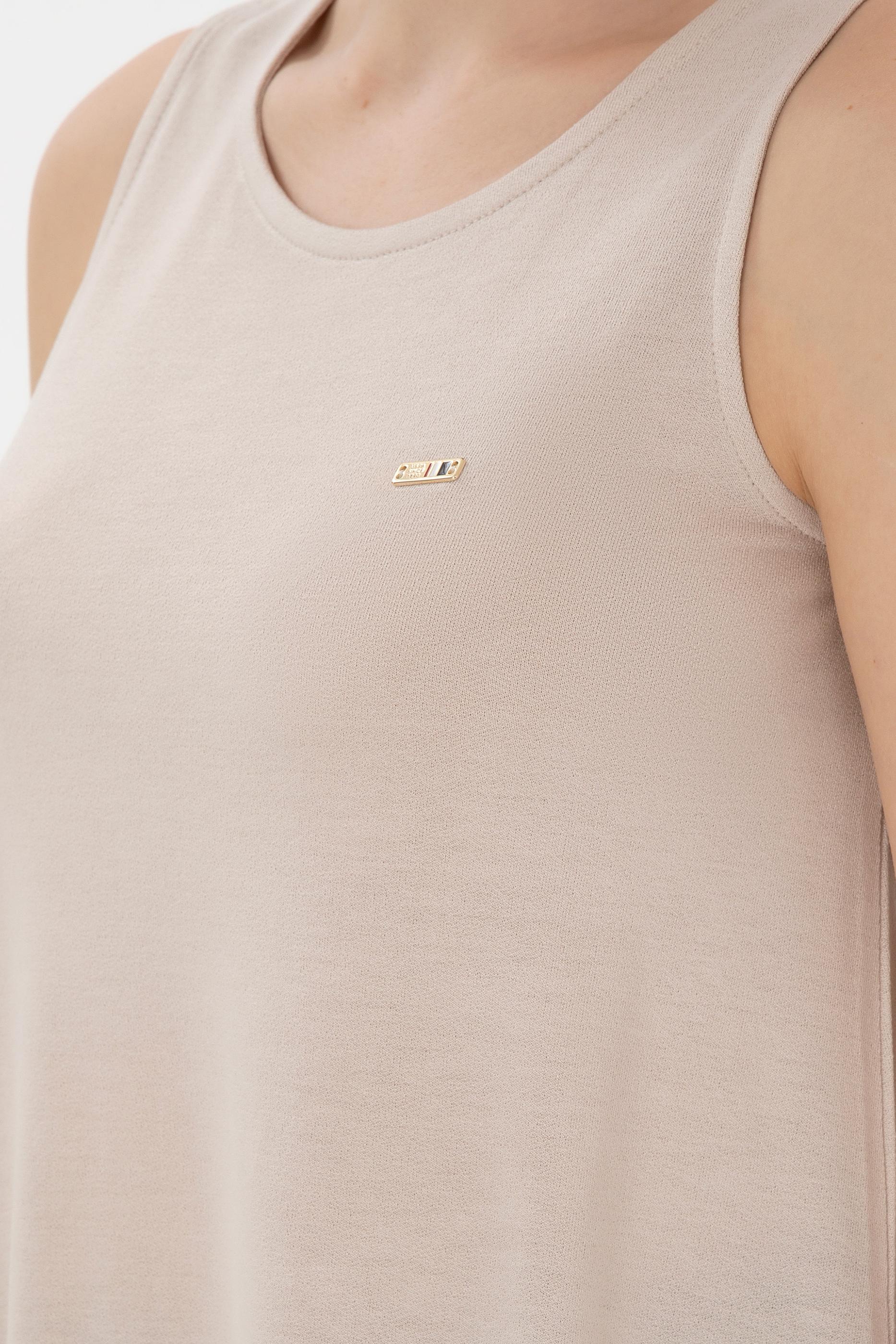 Modern ve rahat tasarımıyla öne çıkan kadın bisiklet yaka kolsuz tişört, hafif ve akışkan yapısıyla hareket özgürlüğü sağlayarak gün boyu rahat bir kullanım sunar. Taş rengi, her kombine kolayca uyum sağlayan zamansız bir şıklık sunarken, düz tasarımı minimal ve sade bir görünüm kazandırır. A-form kesimi, vücuda hafifçe oturarak aşağı doğru genişleyen yapısıyla rahat bir hareket alanı sunar. Bisiklet yaka detayı klasik ve modern bir denge oluştururken, kol kesimlerinin rahat kalıbı ferah bir kullanım sağlar. Göğüs üzerindeki küçük logo detayı, tasarıma zarif bir dokunuş ekler. Kolsuz yapısı, sıcak havalarda serin bir kullanım sağlarken, hafif ve nefes alabilen dokusu gün boyu konfor sunar. Esnek ve yumuşak kumaşı cildi tahriş etmeden doğal bir his bırakırken, dayanıklı dikişleri uzun ömürlü bir kullanım vadeder. Spor şıklıktan casual kombinlere kadar geniş bir kullanım alanı sunan kolsuz tişört, jean, şort veya eteklerle kolayca tamamlanabilir. Hem günlük stiline zarif bir dokunuş katmak isteyenler hem de rahat bir kullanım arayanlar için ideal bir seçenek sunarak her ortamda şık ve özgüvenli bir görünüm kazandırır.