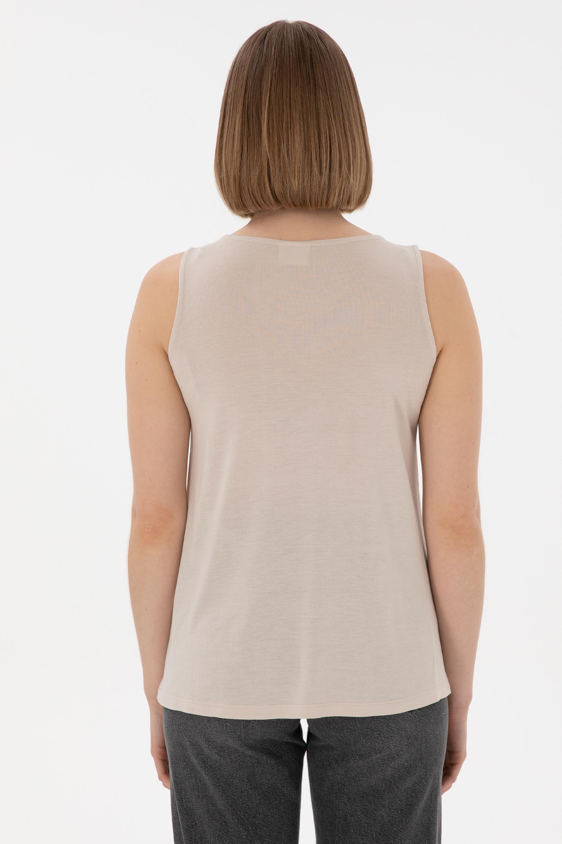 Kadın Taş Kolsuz Bisiklet Yaka Tişört