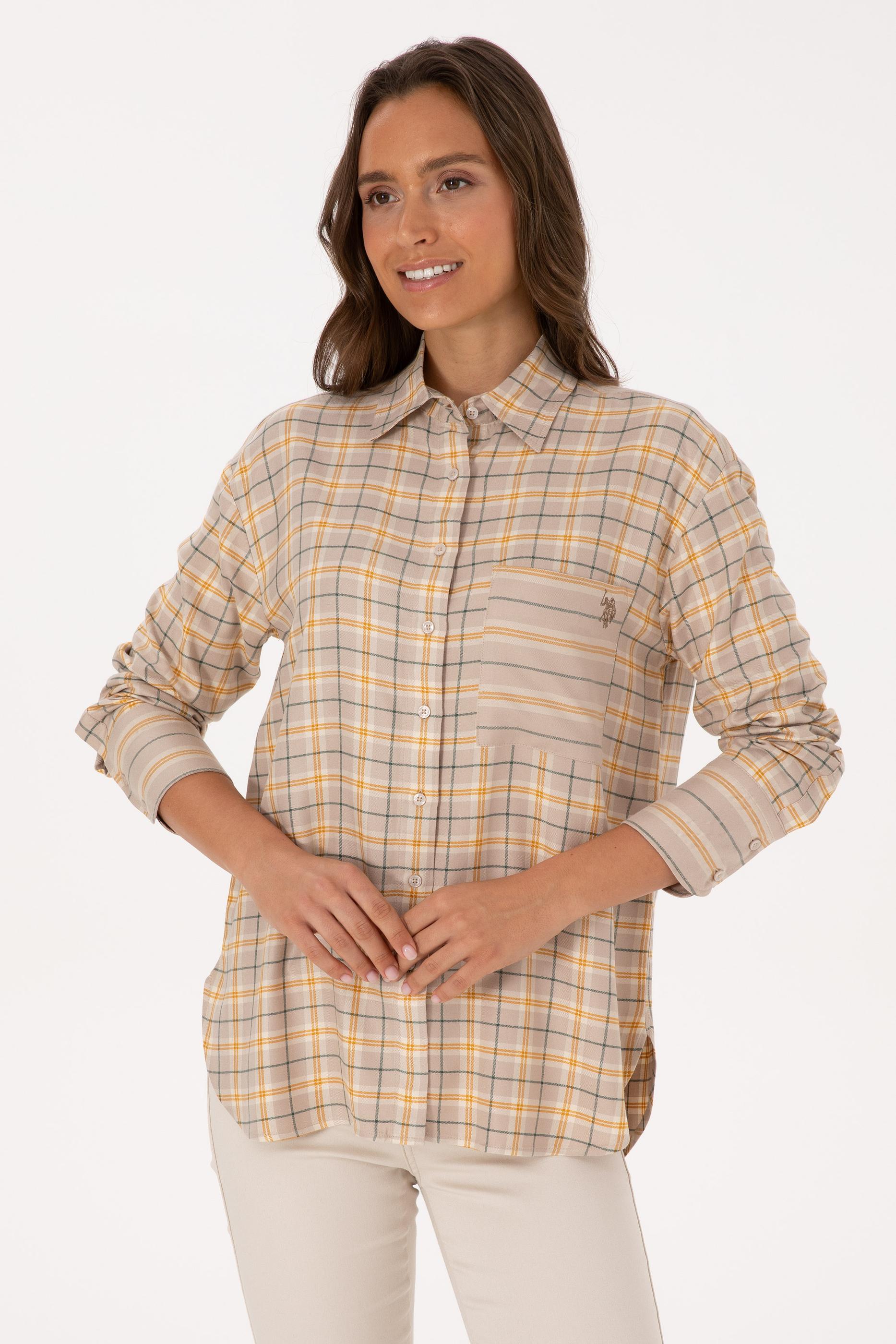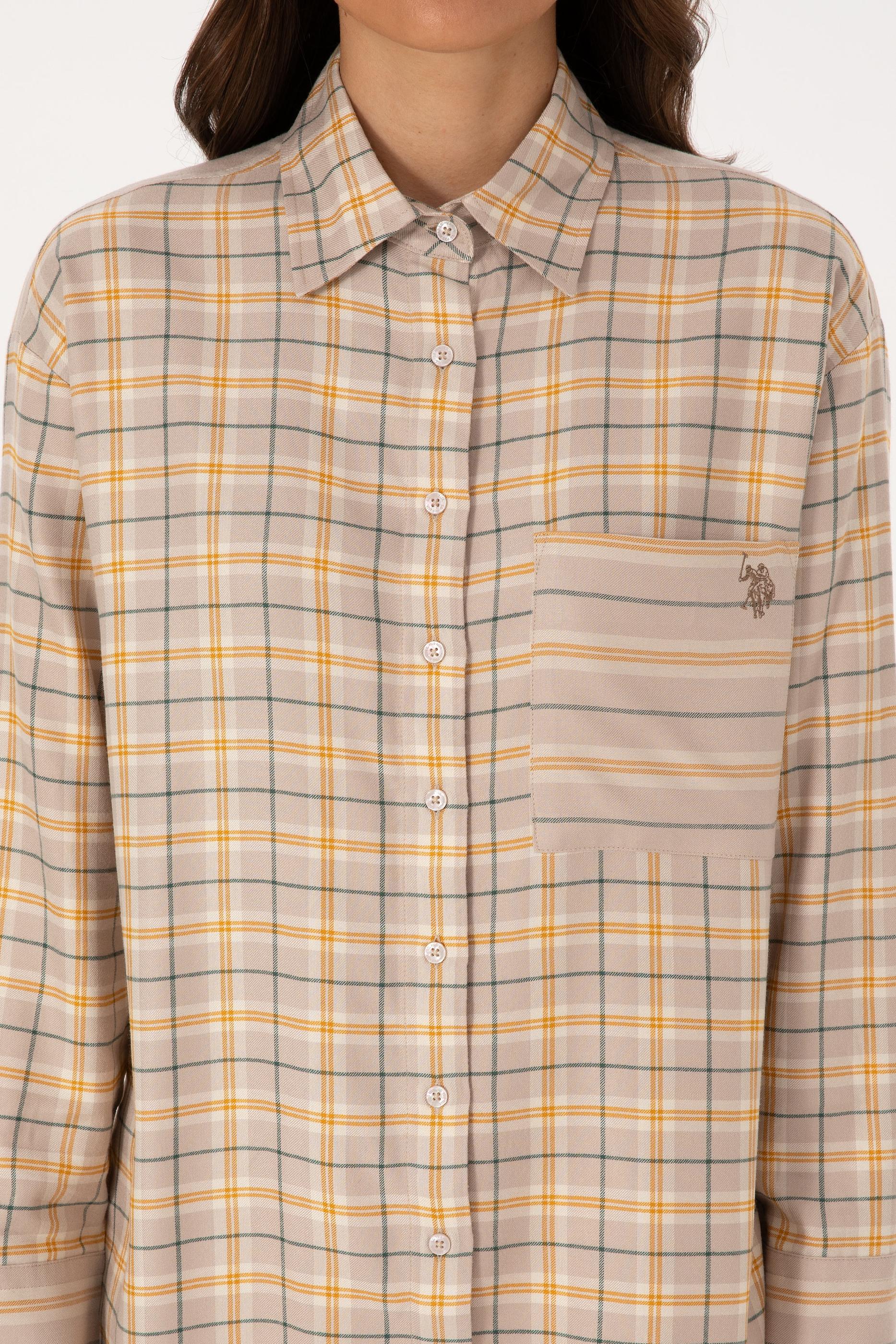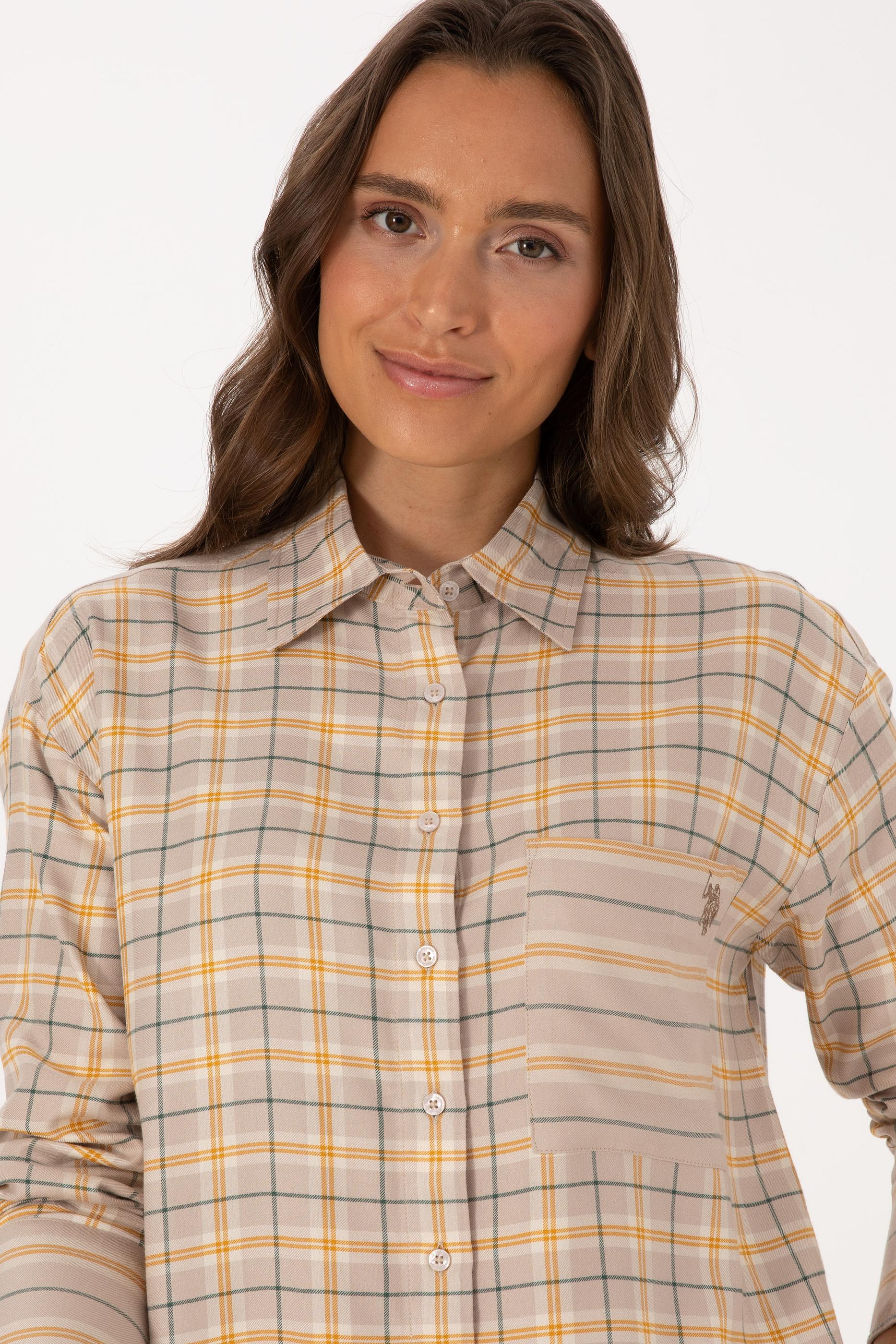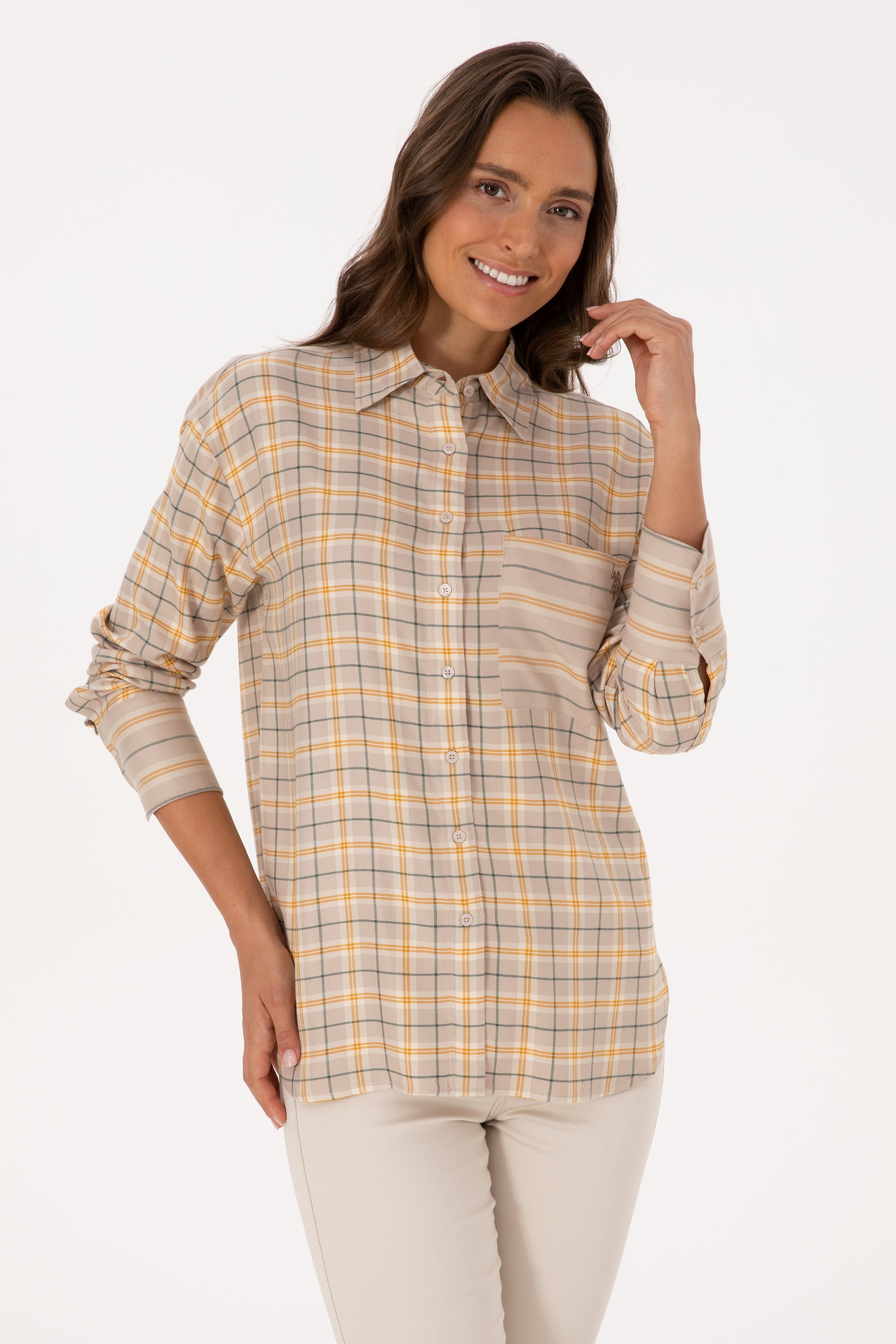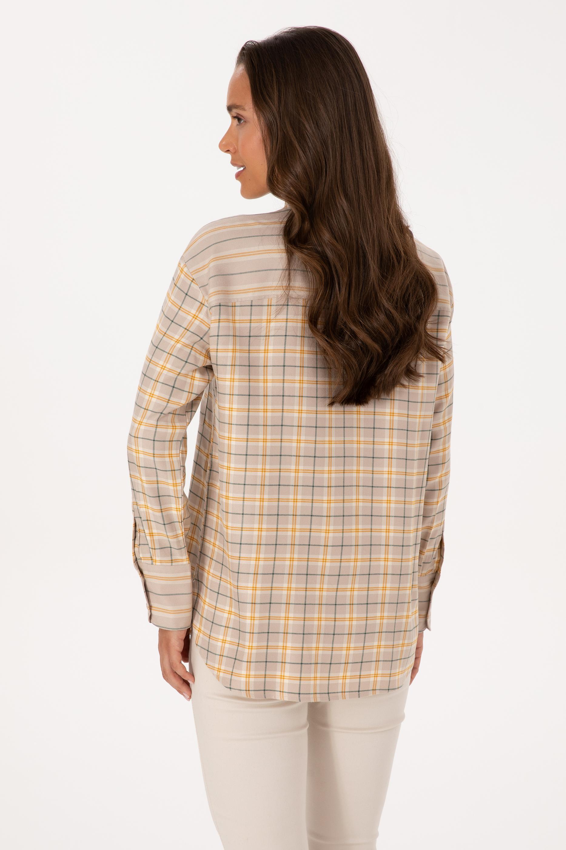 Kadın Taş Uzun Kollu Ekoseli Gömlek