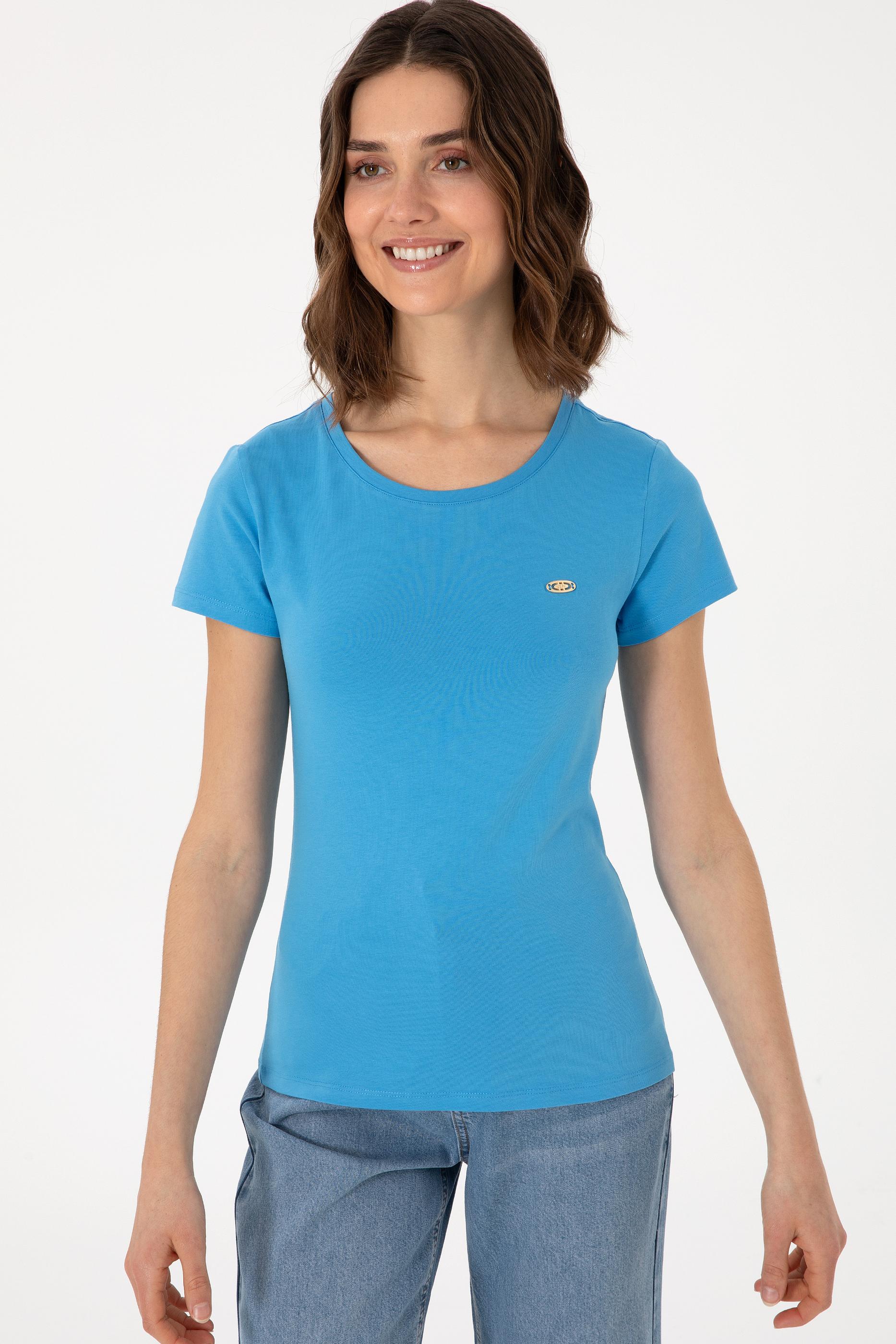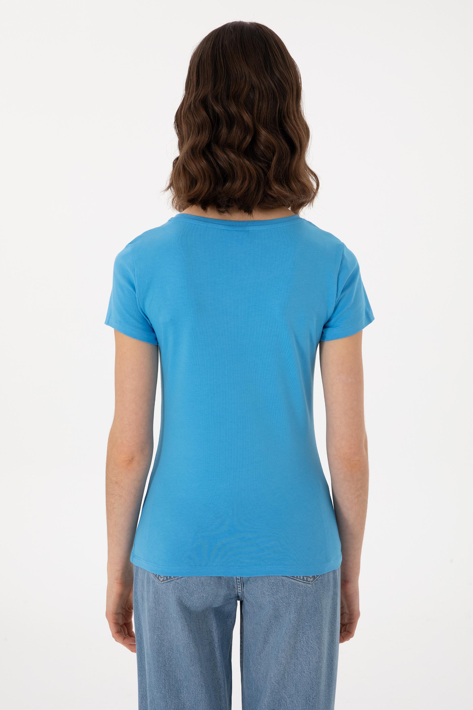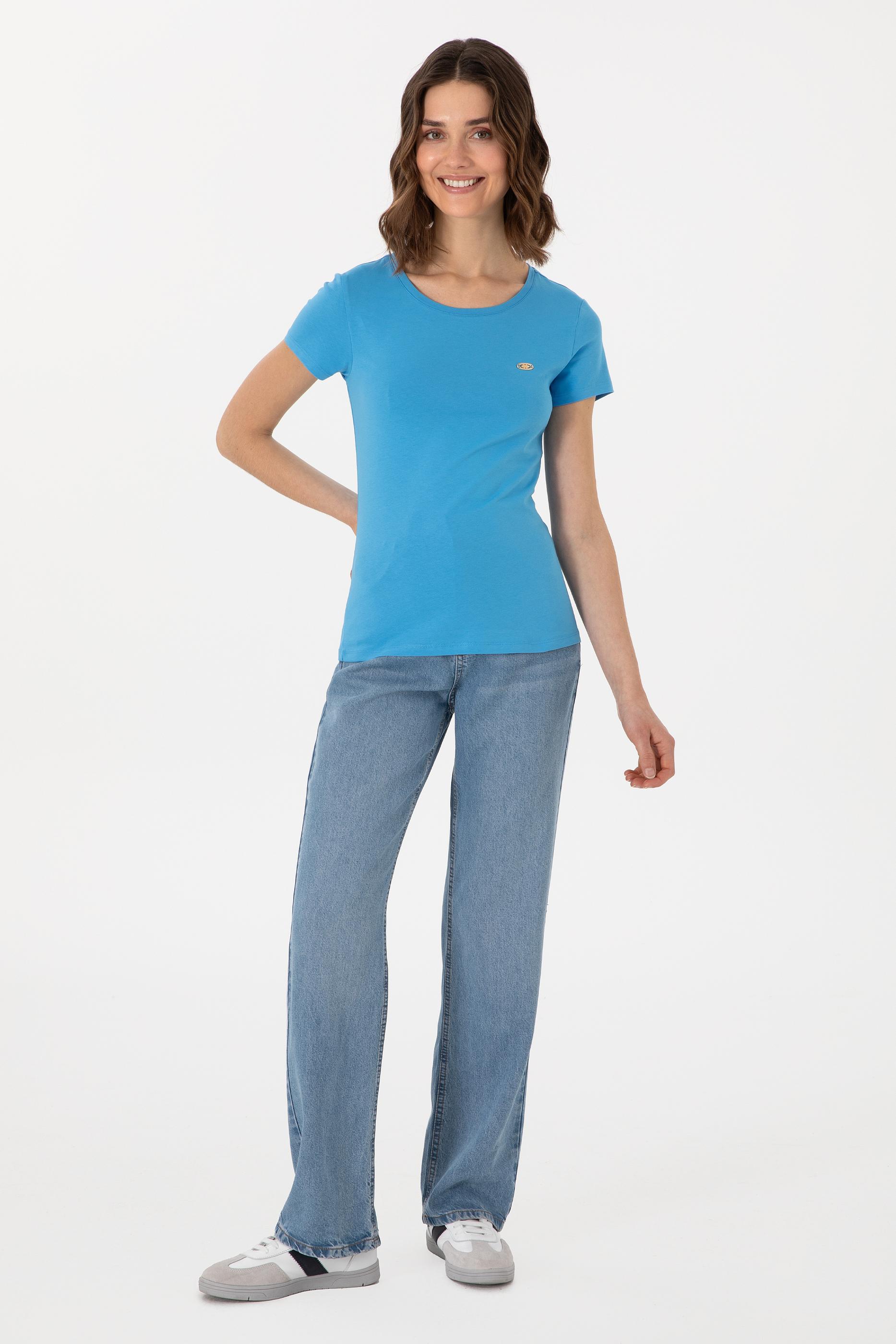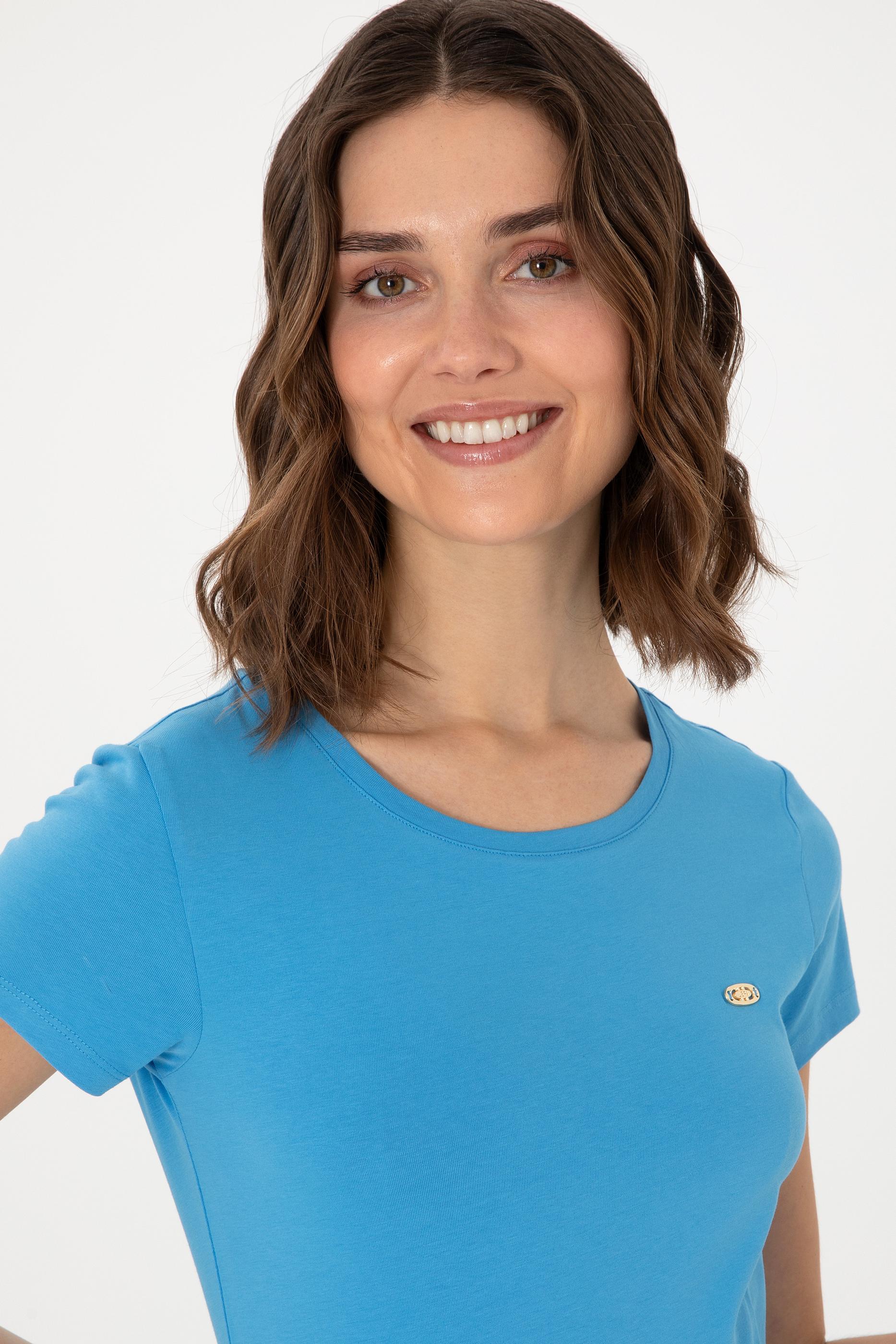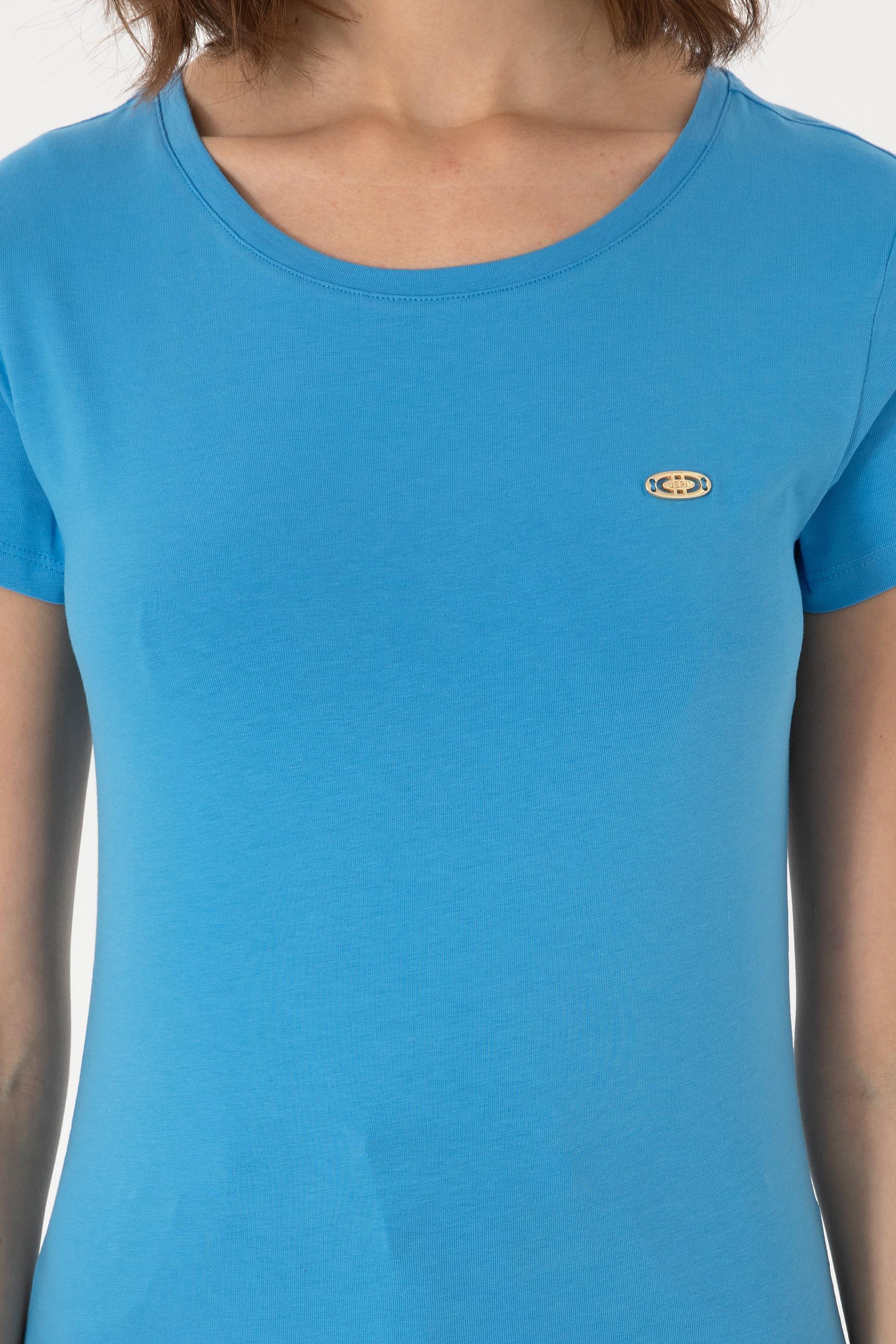 Kadın Turkuaz Bisiklet Yaka Tişört
