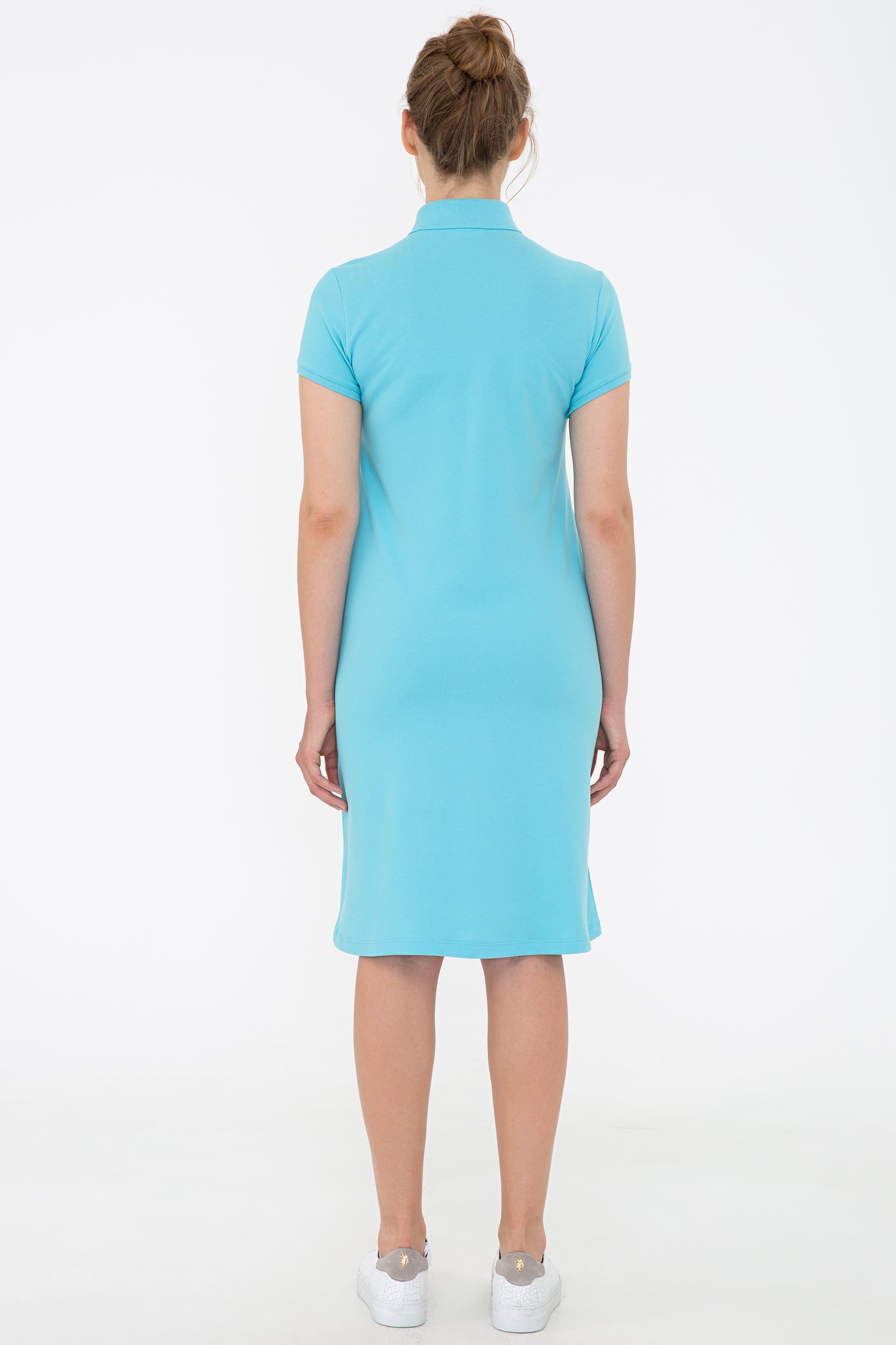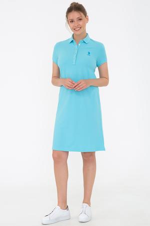 Kadın Turkuaz Polo Yaka Örme Elbise