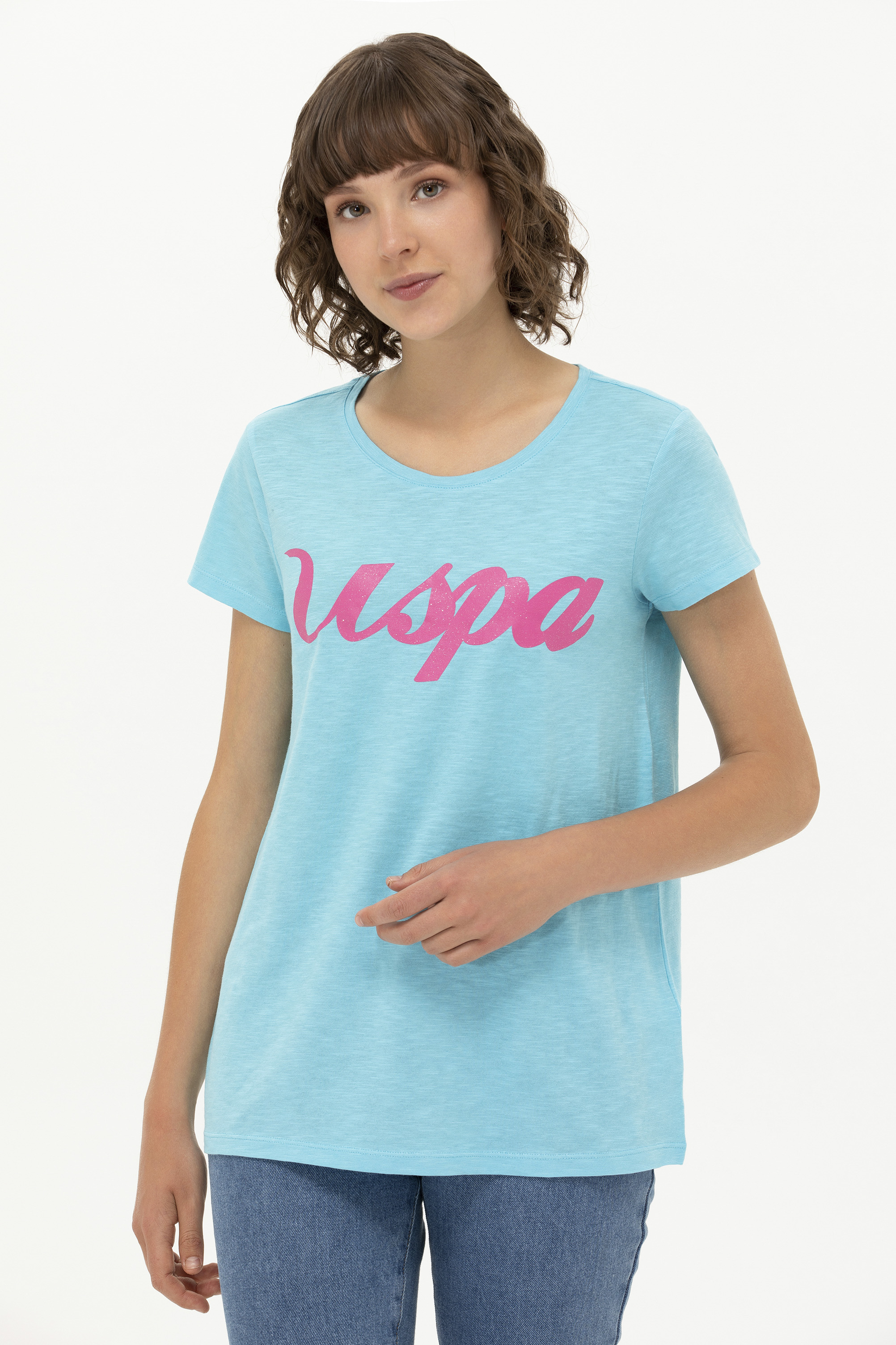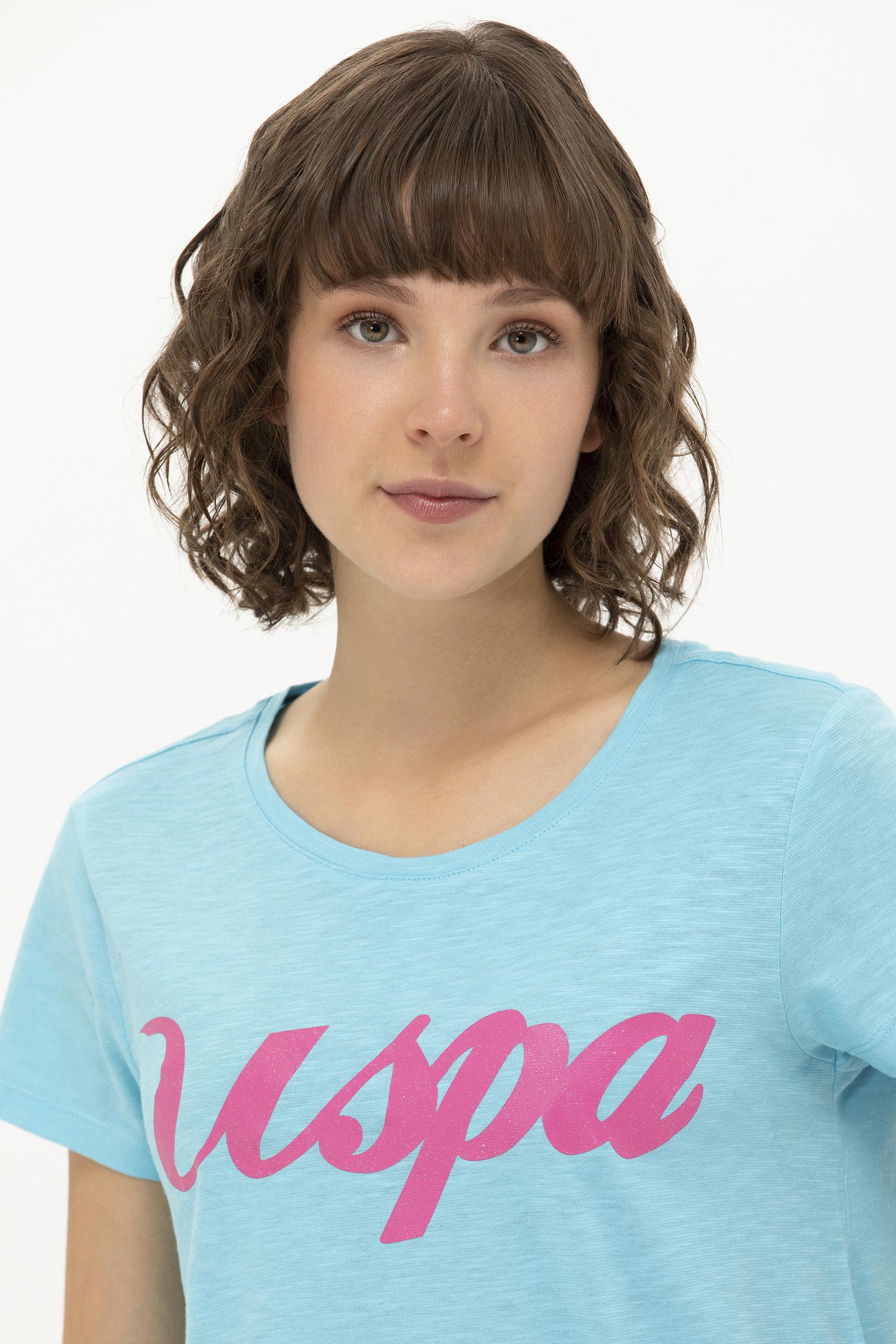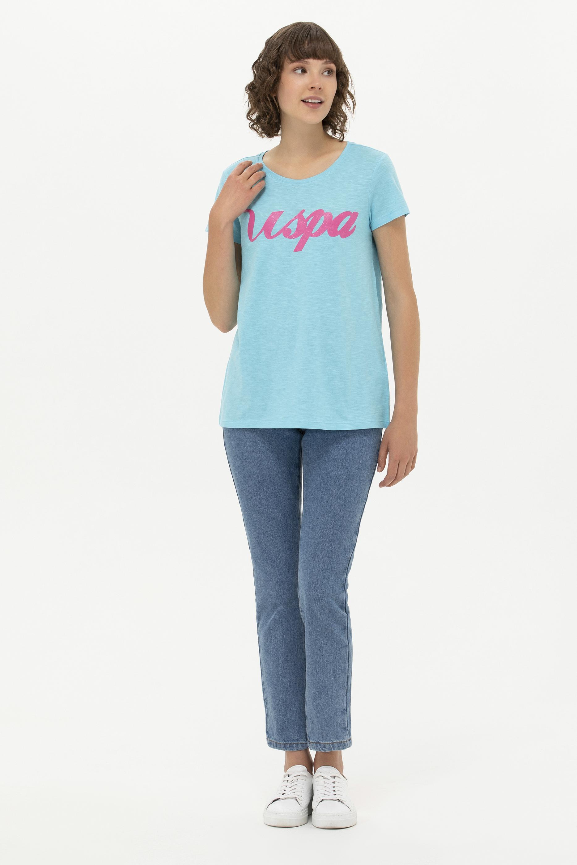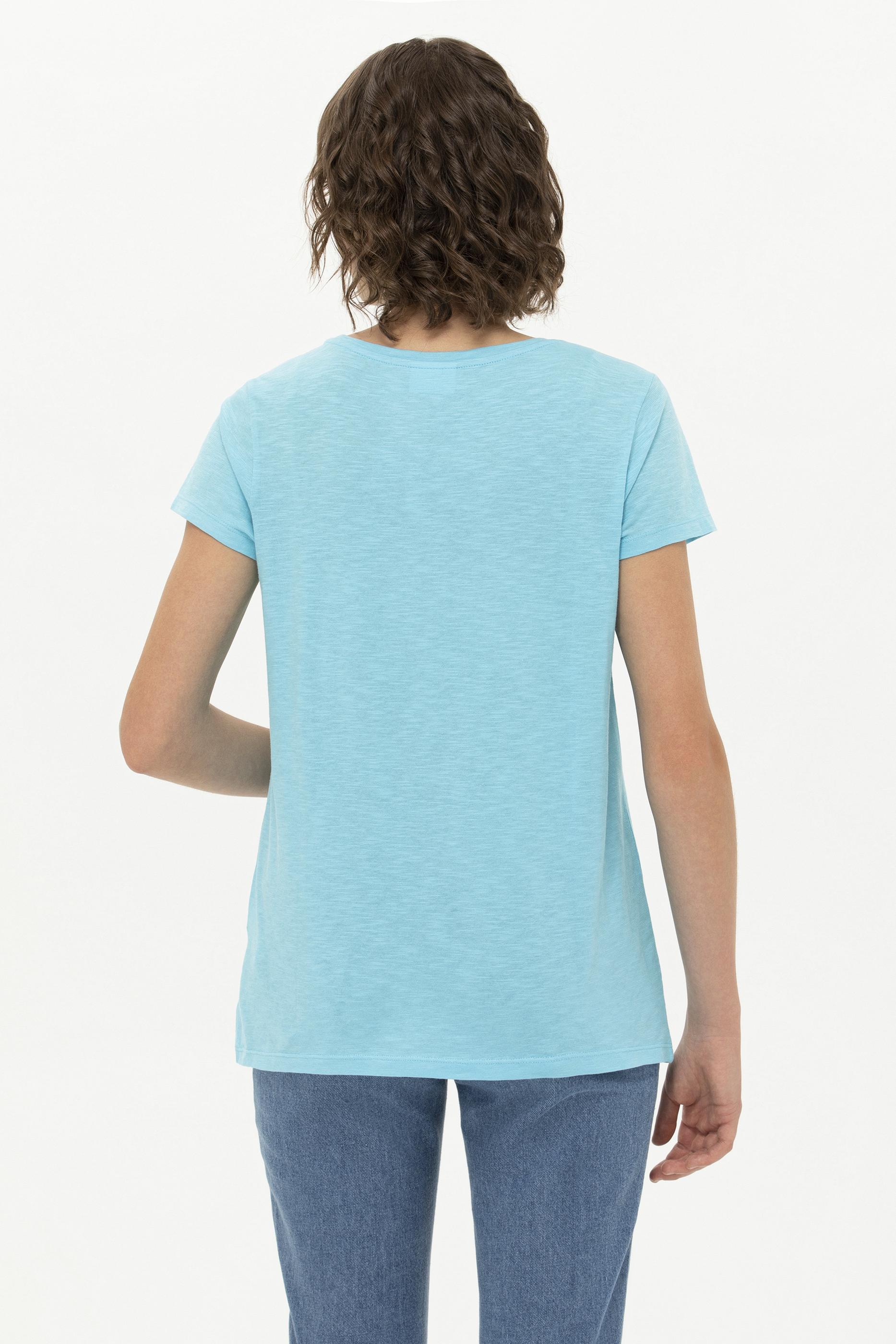 Kadın Turkuaz Bisiklet Yaka Tişört