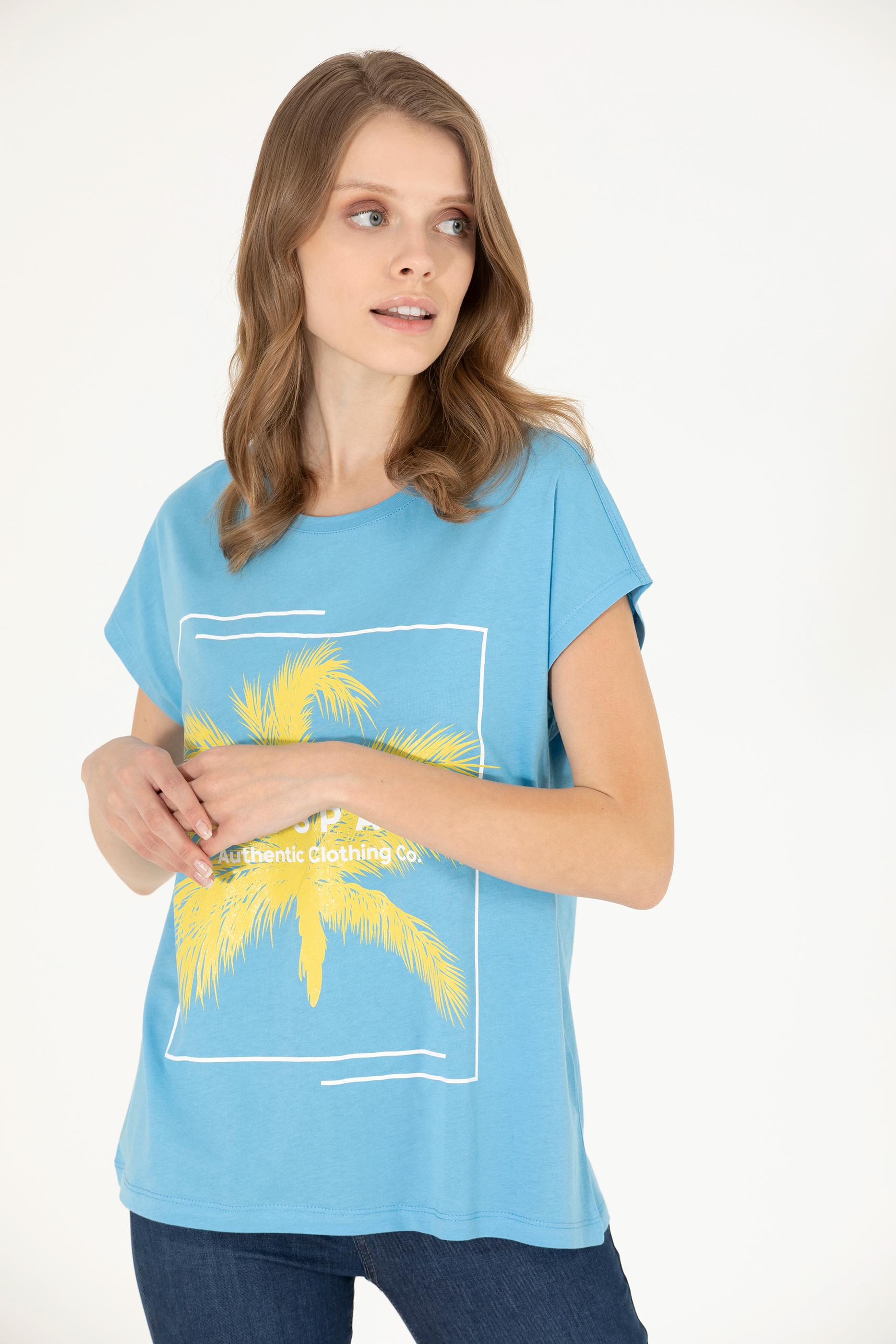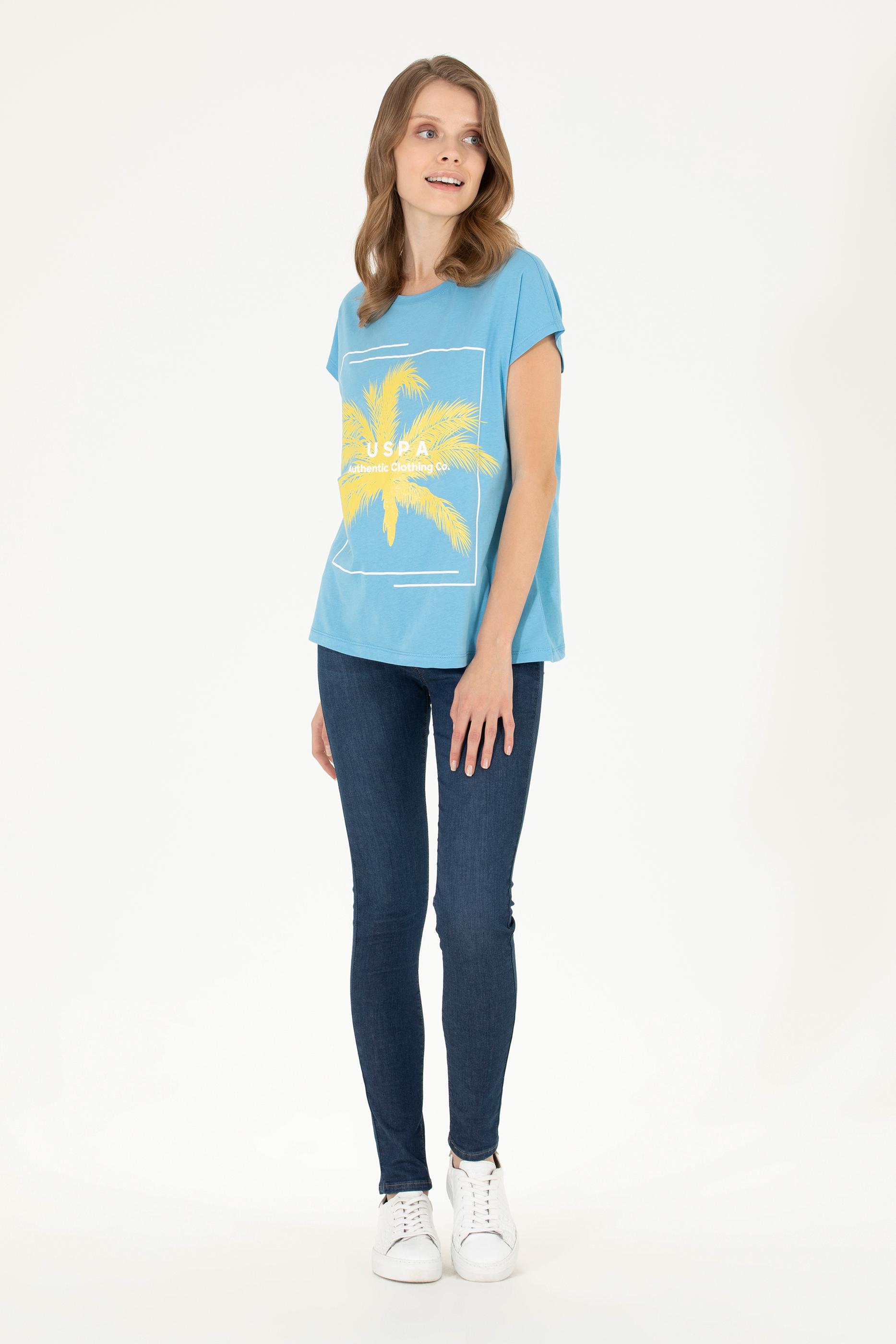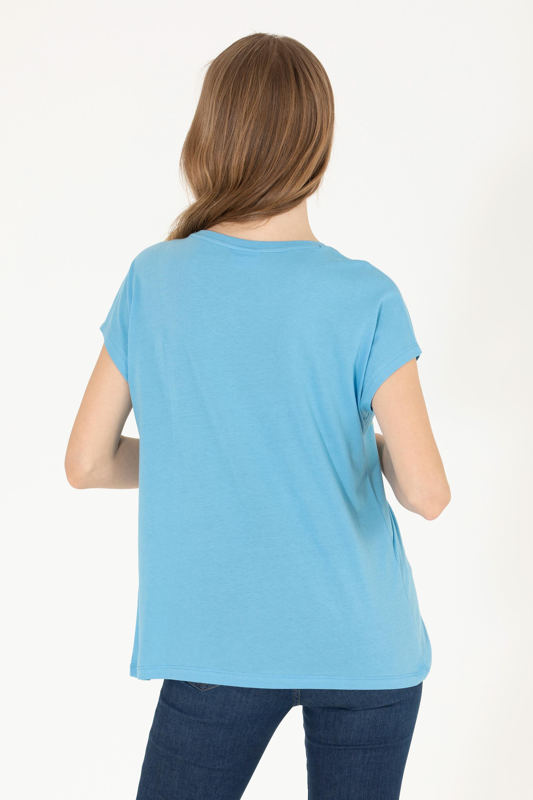 Kadın Turkuaz Bisiklet Yaka Tişört