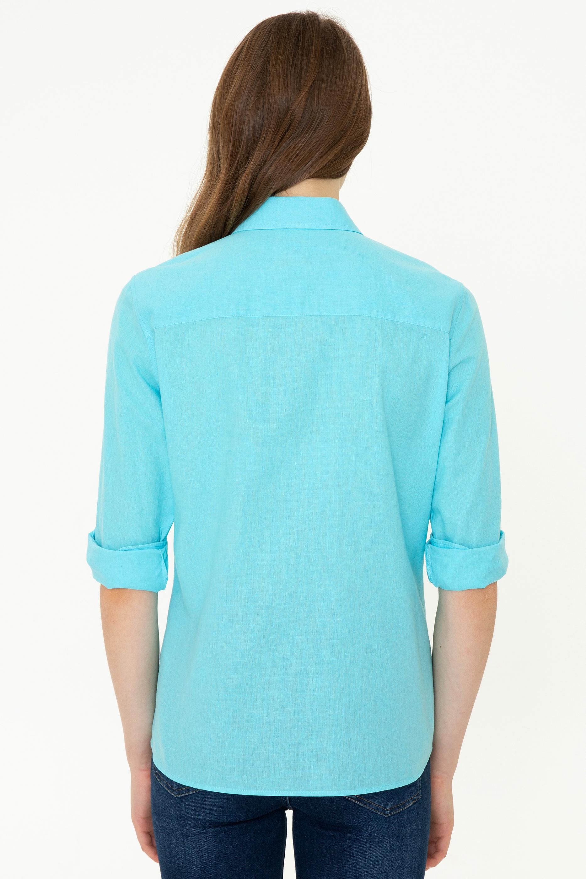 Kadın Turkuaz Keten Görünümlü Uzun Kollu Basic Gömlek - 50246464004