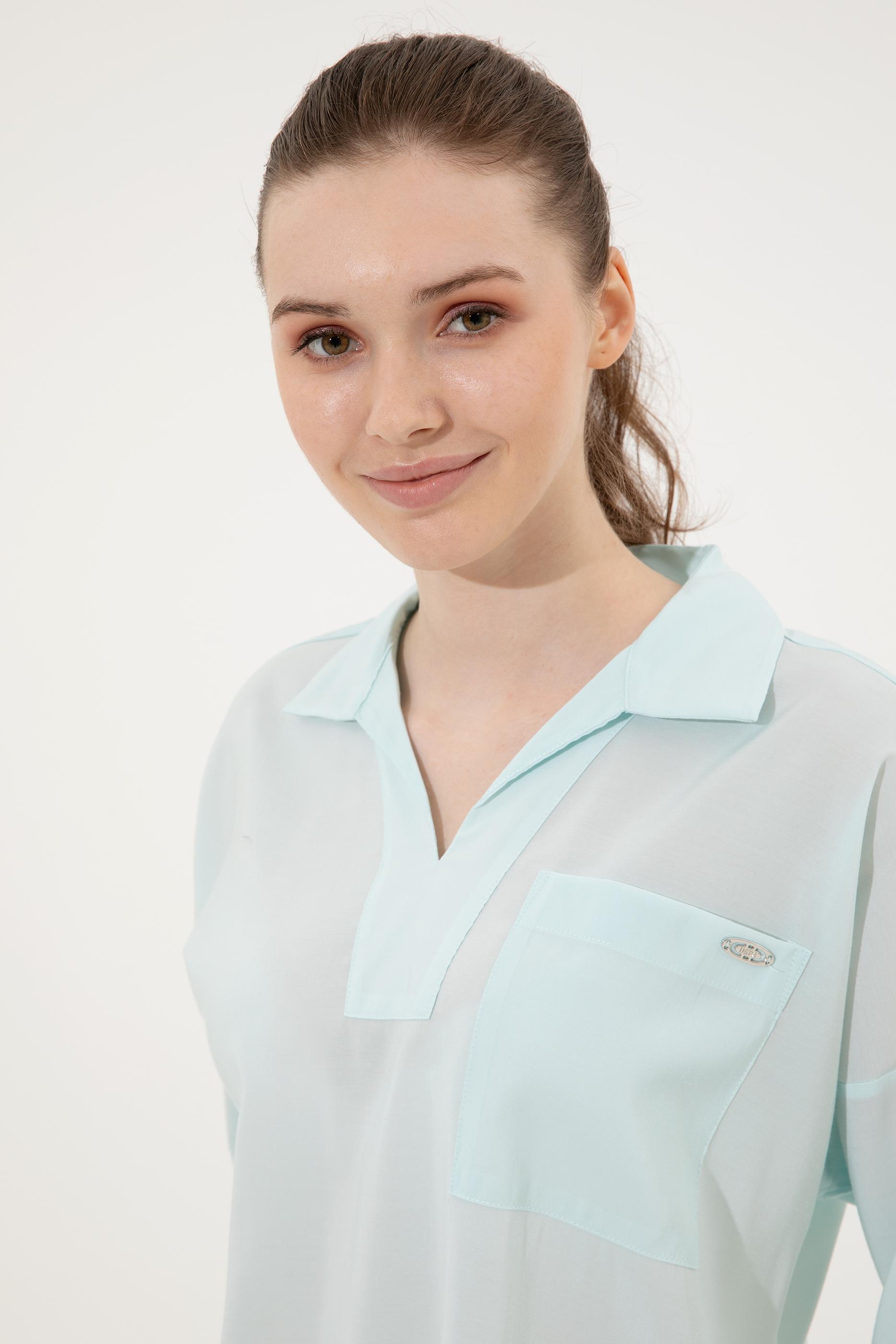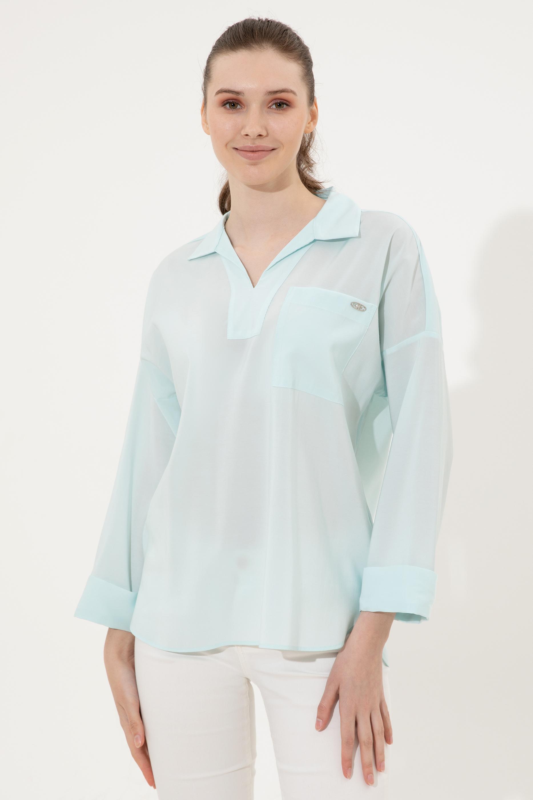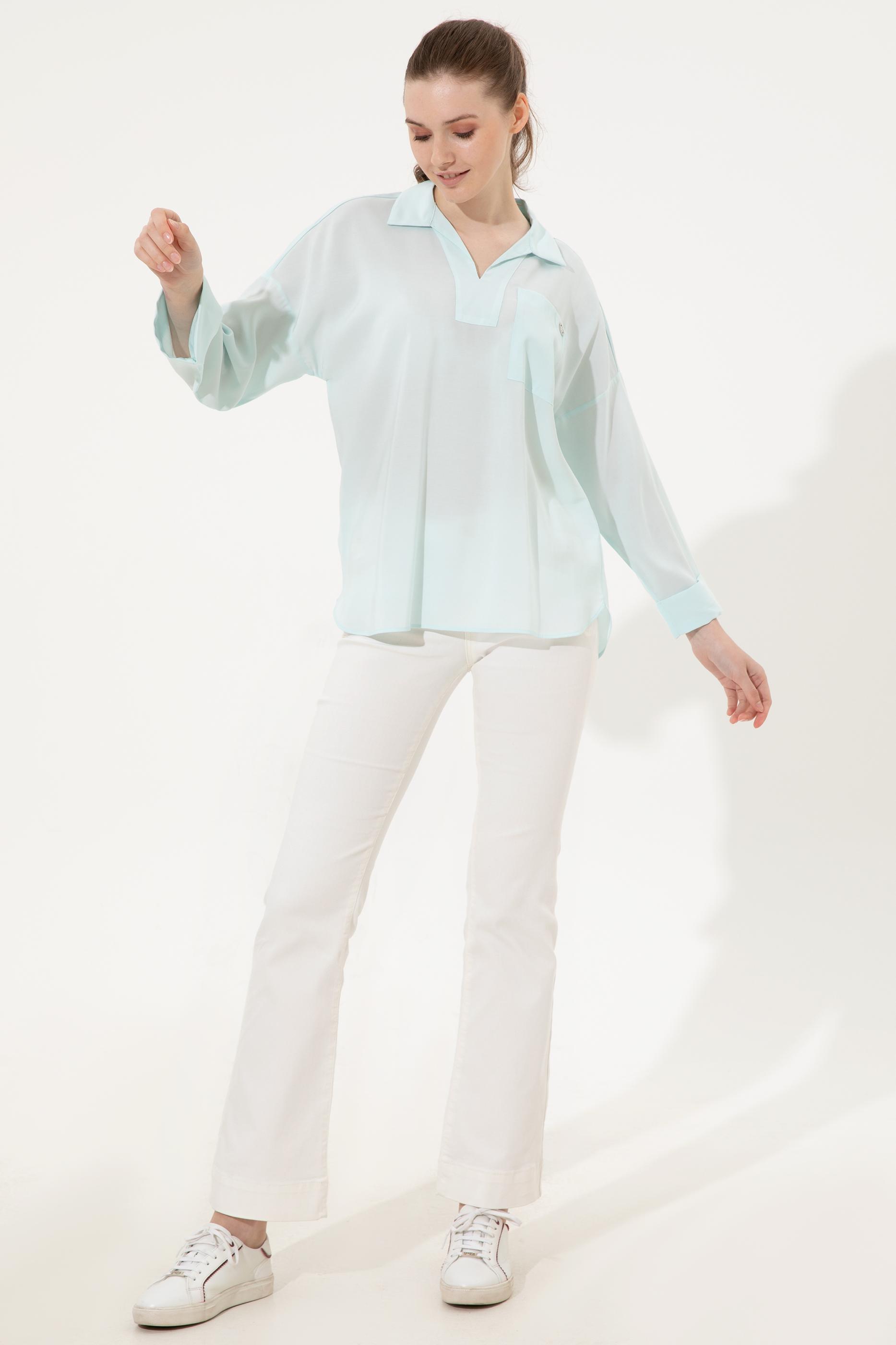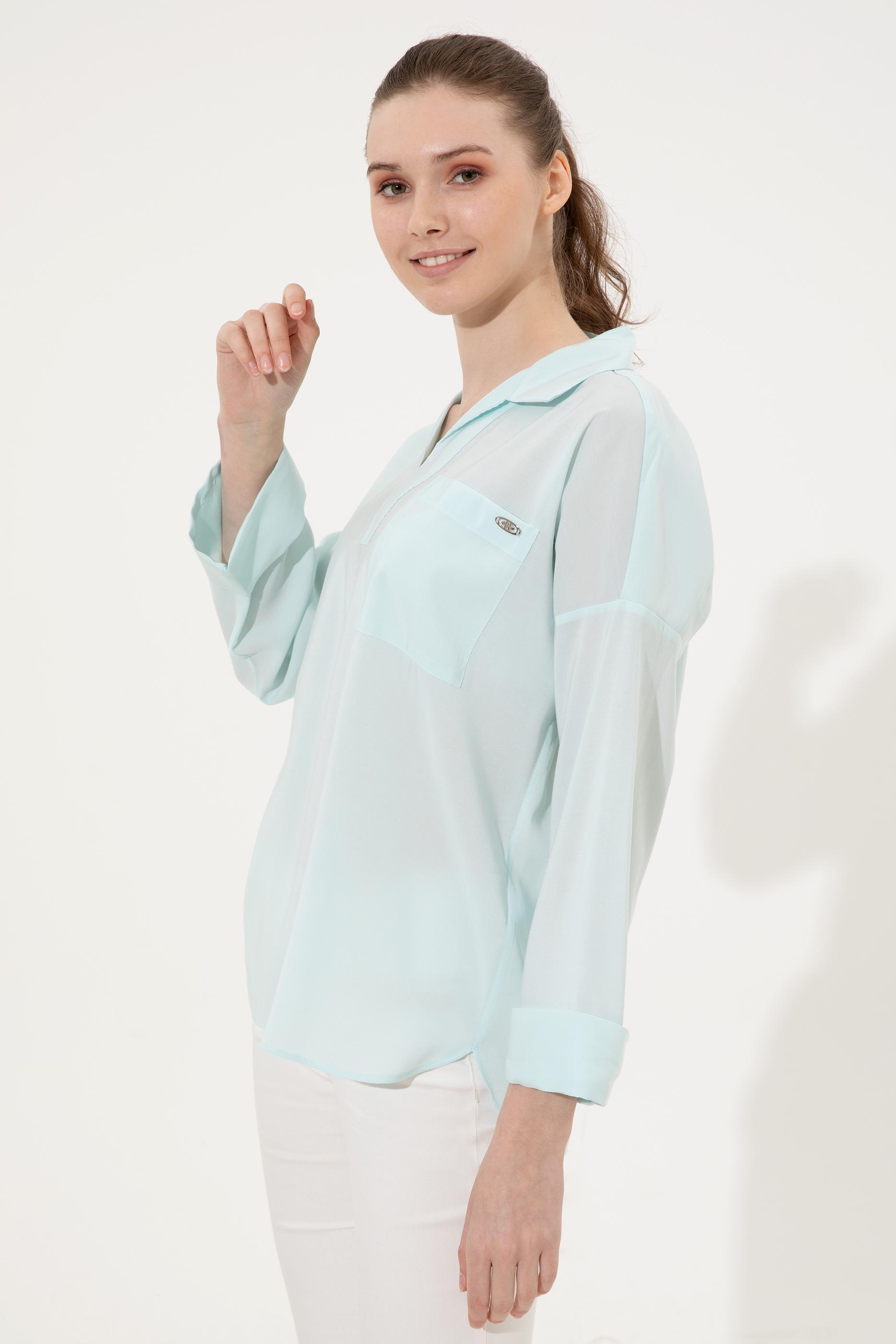 - Kadın Turkuaz Uzun Kollu Gömlek