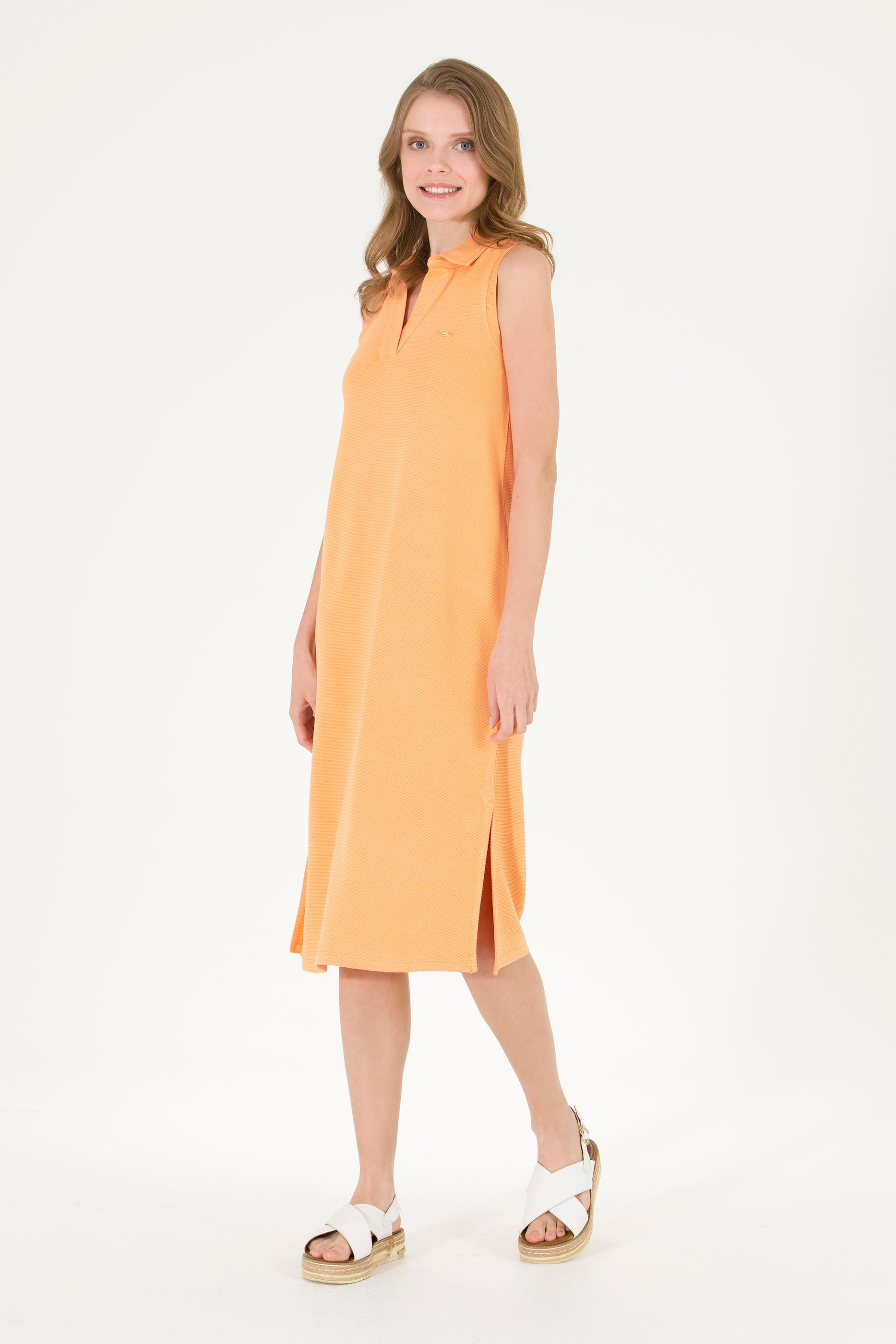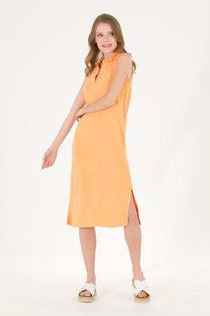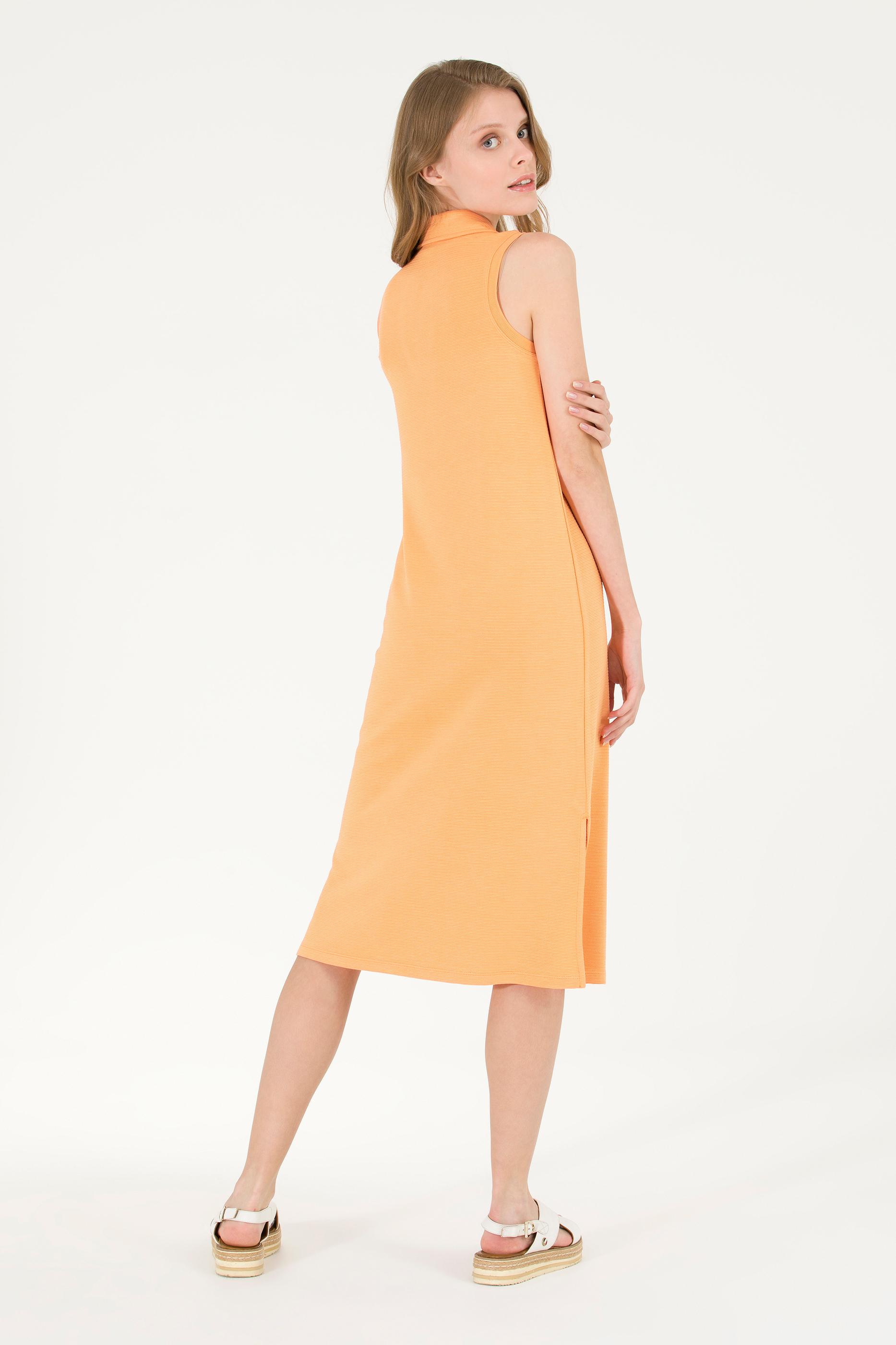 Kadın Turuncu Polo Yaka Örme Elbise - 50263593013