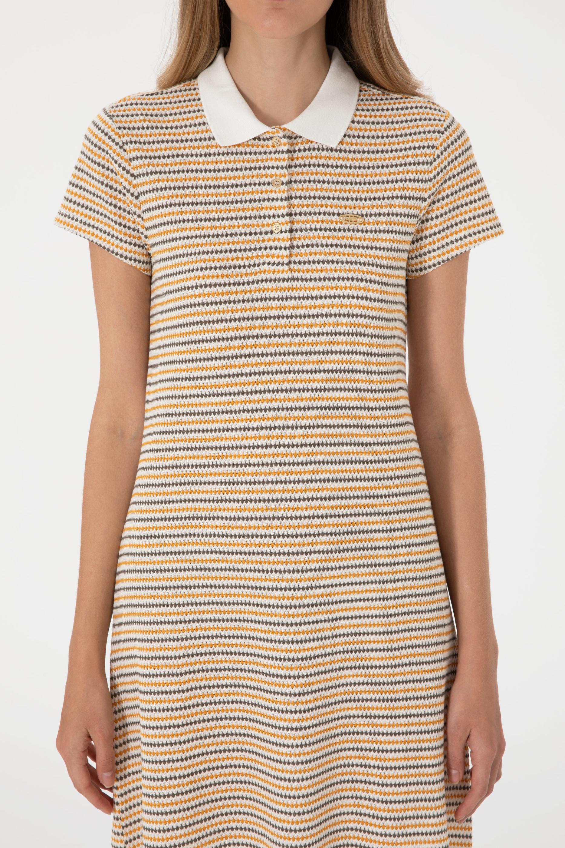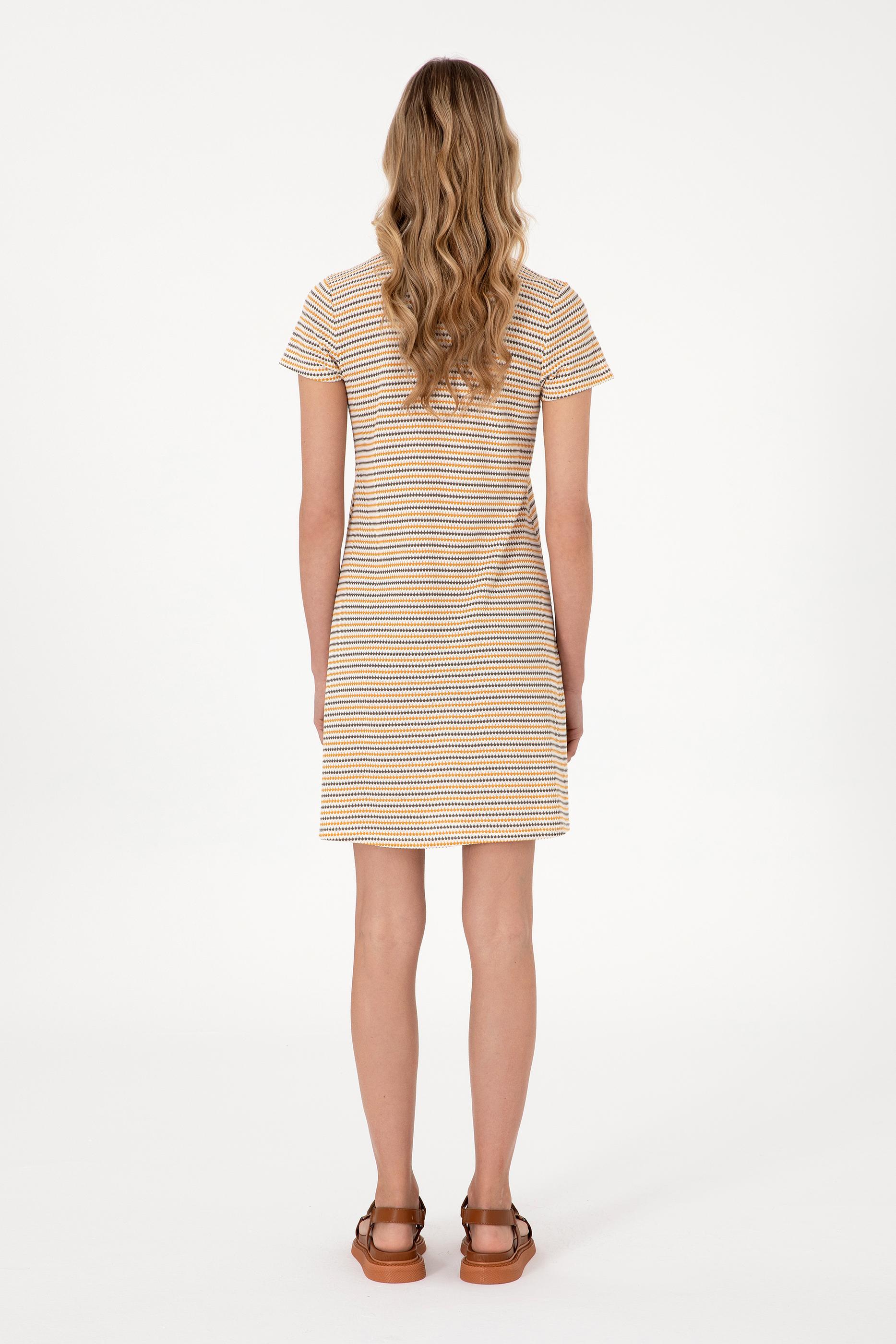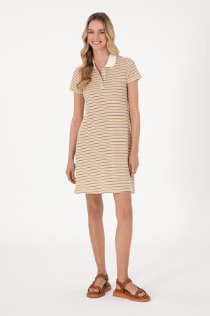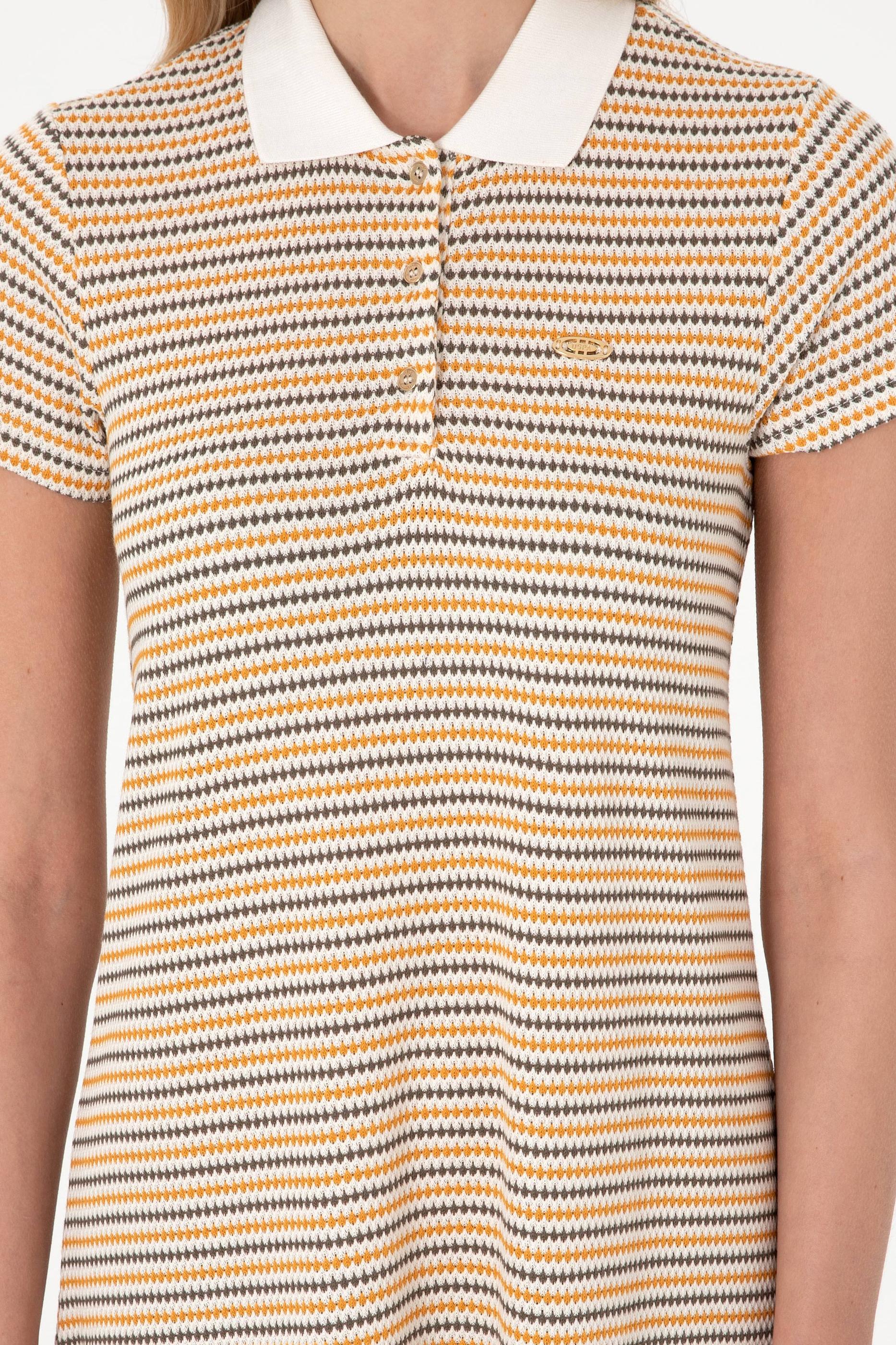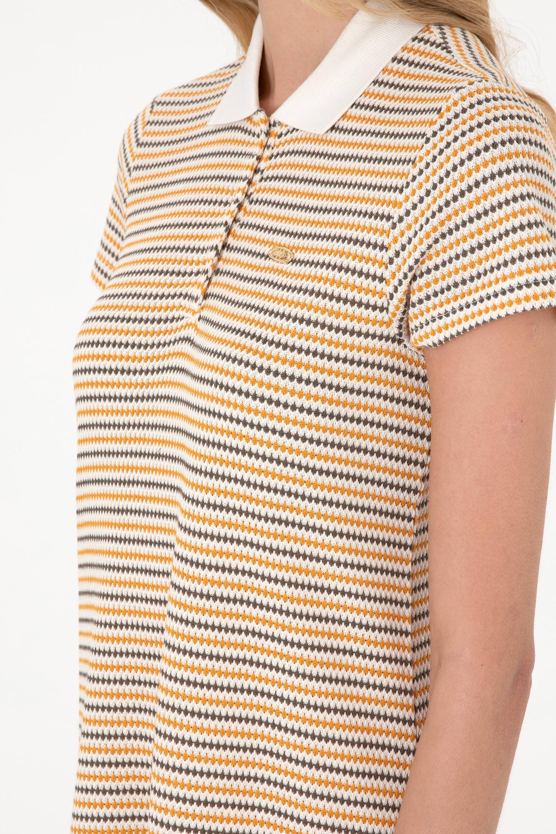 Kadın Turuncu Çizgili Polo Yaka Mini Boy Örme Elbise