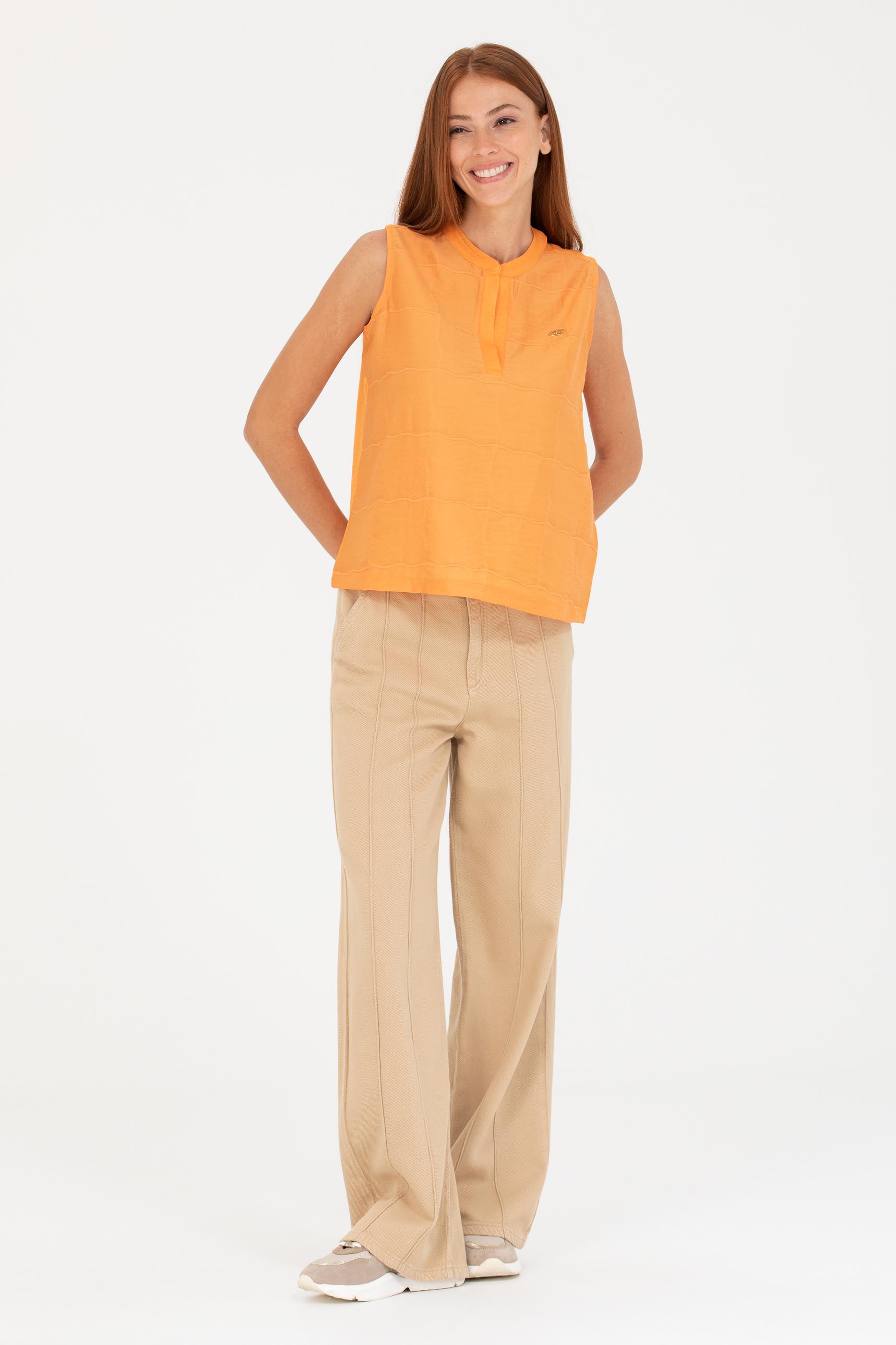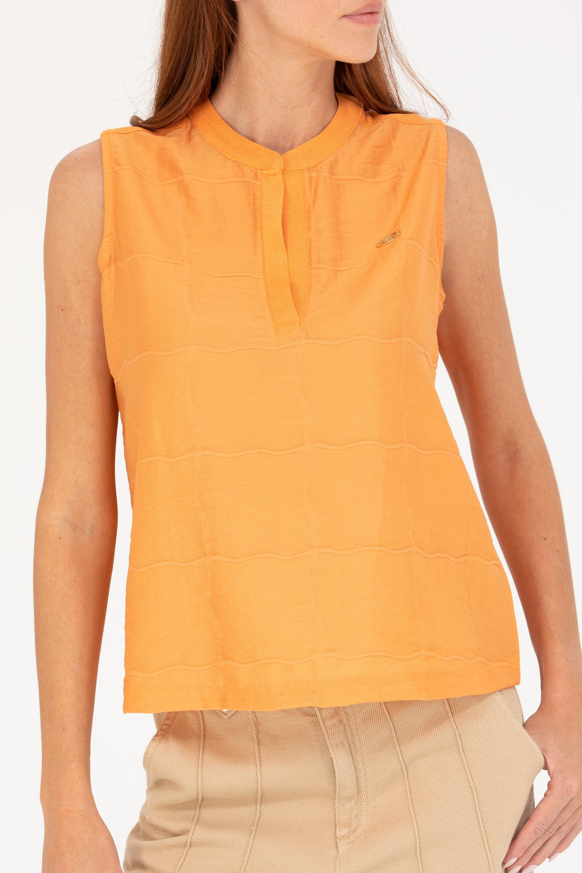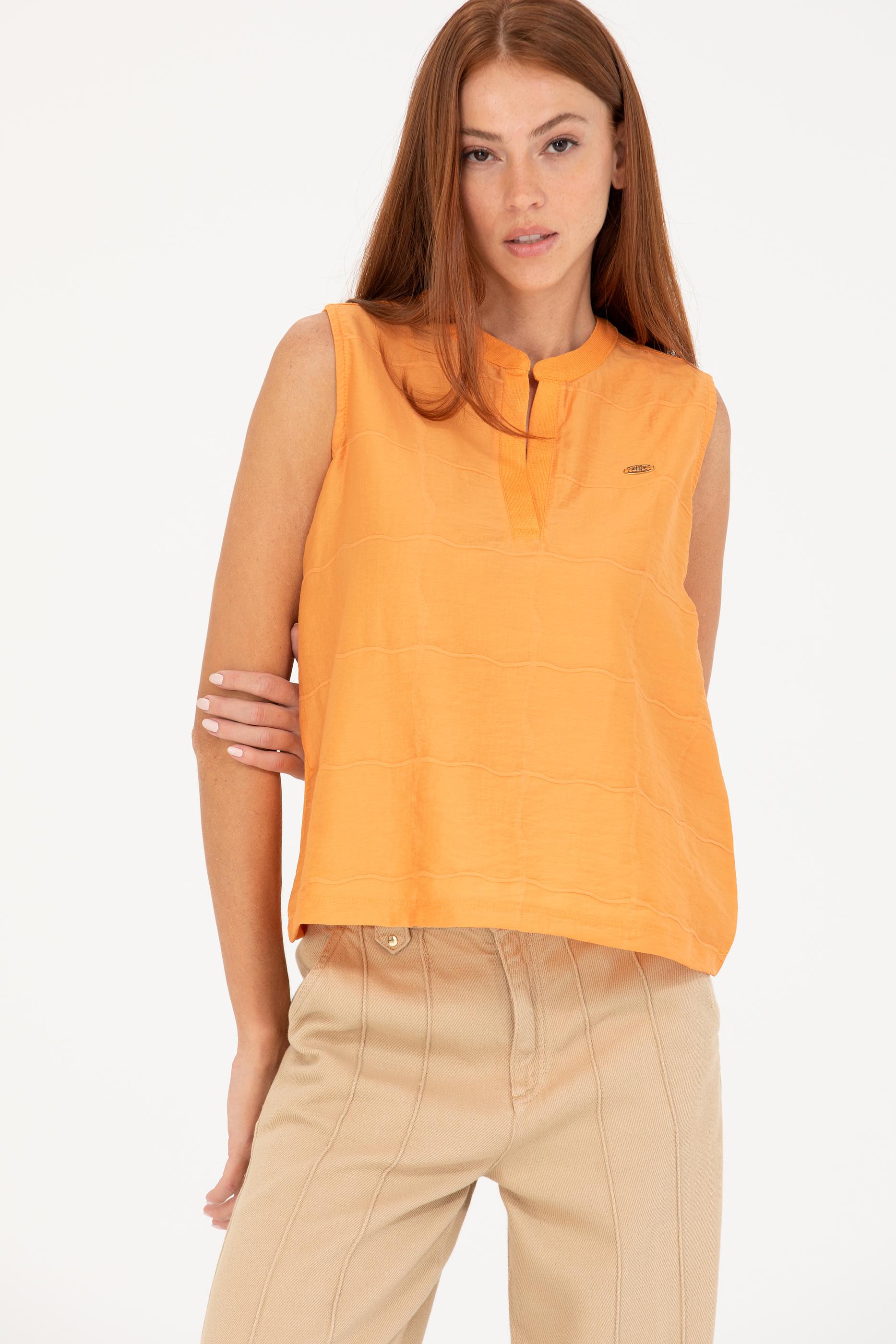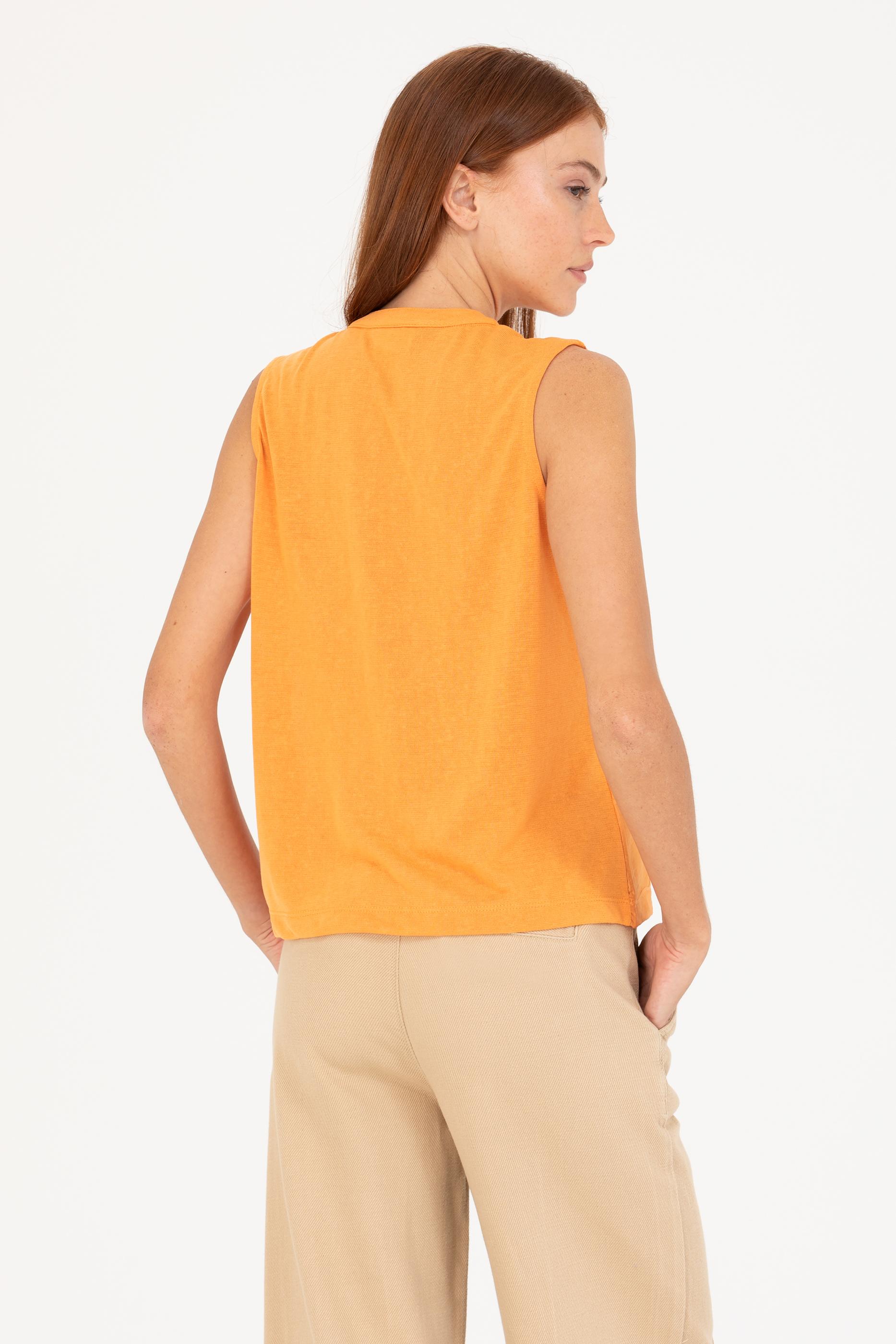 Kadın Turuncu V Yaka Kolsuz Tişört