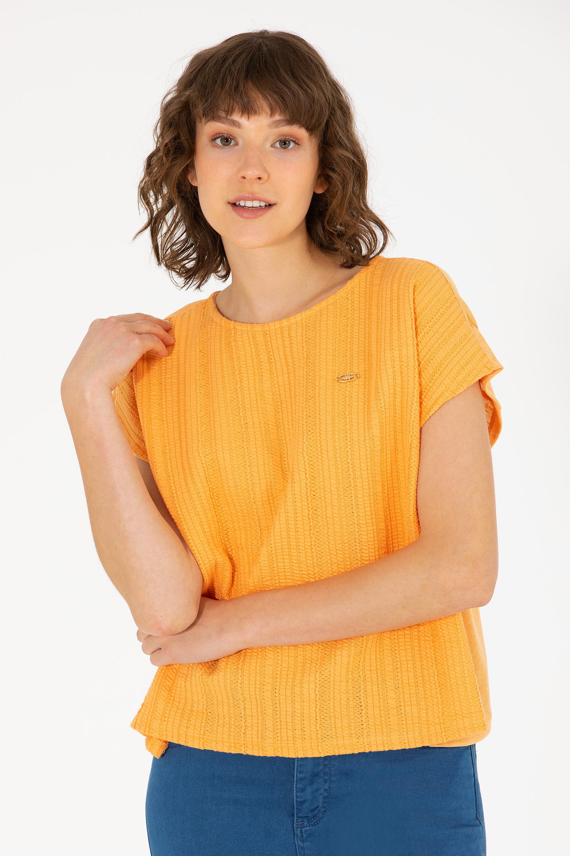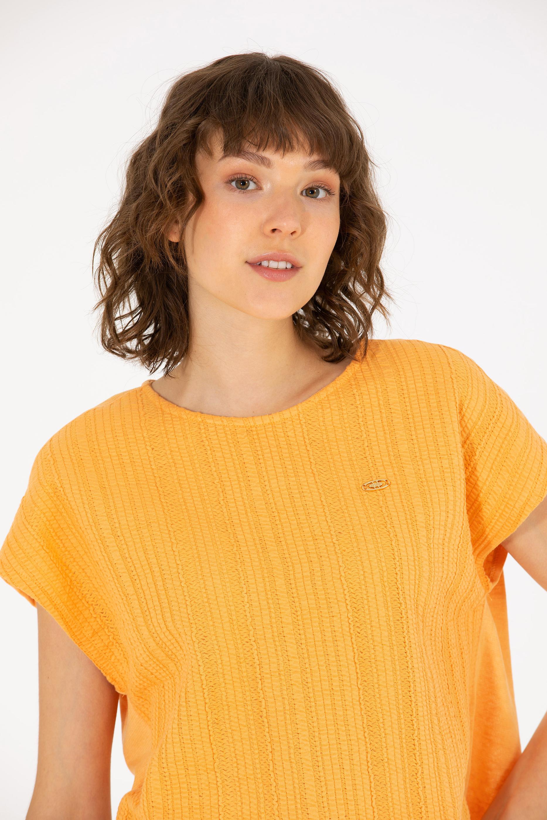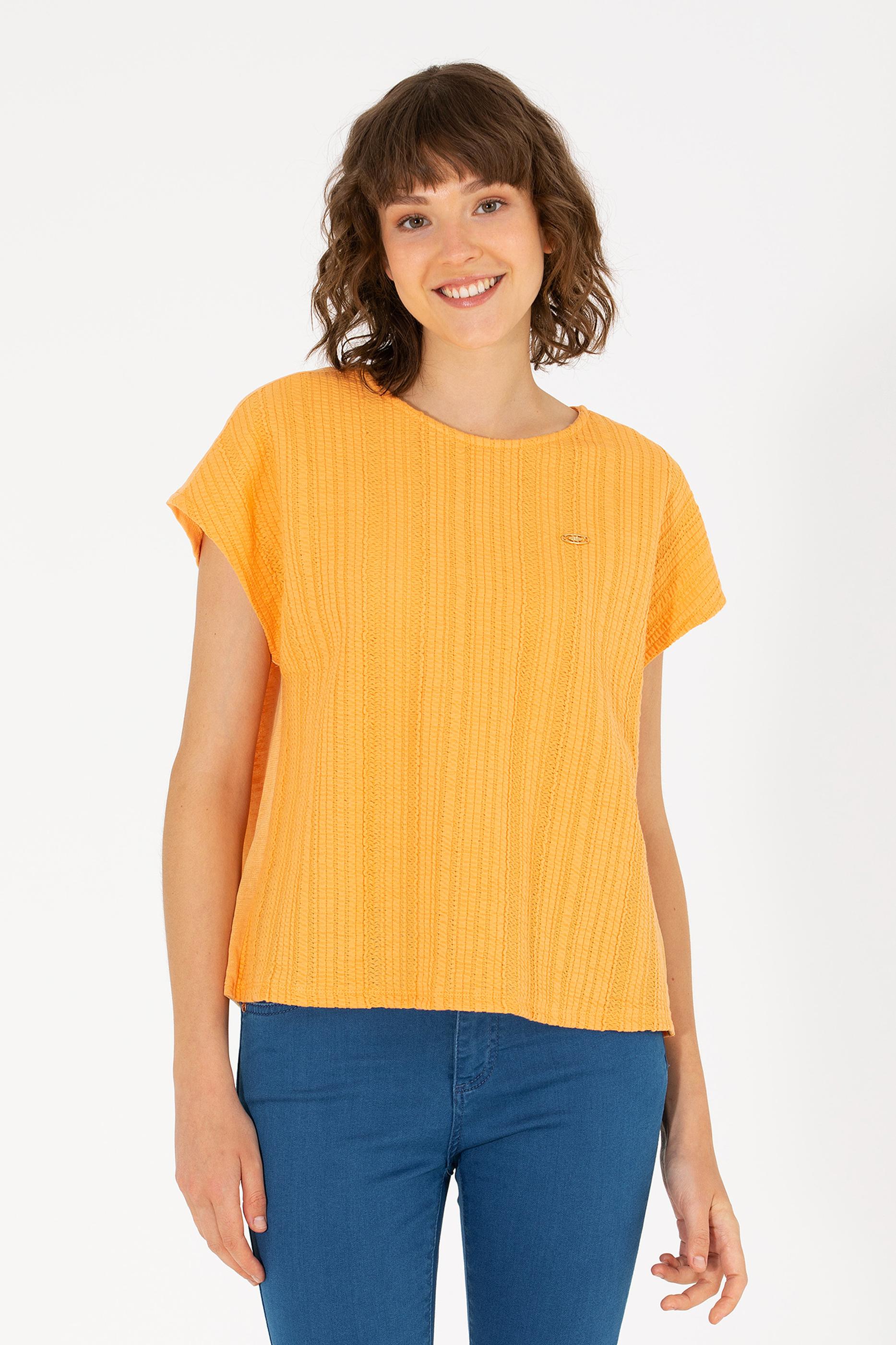 Kadın Turuncu Bisiklet Yaka Tişört