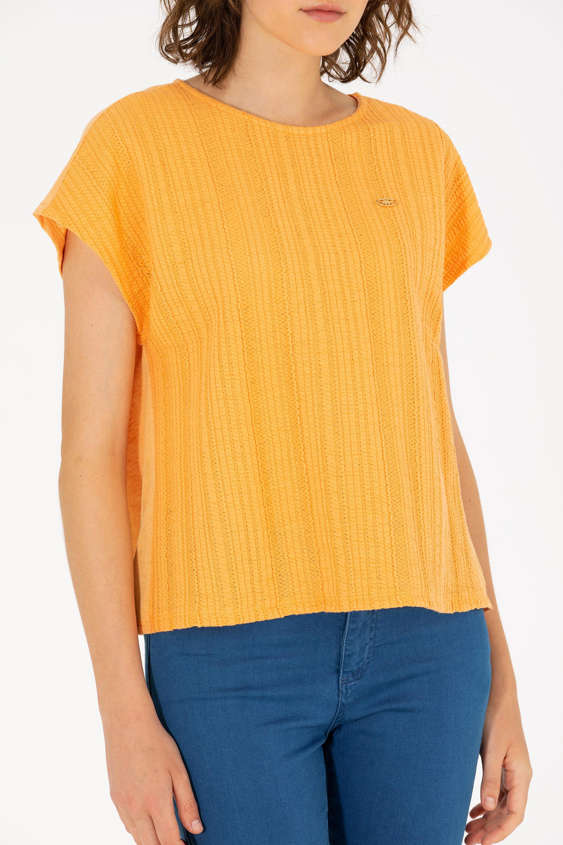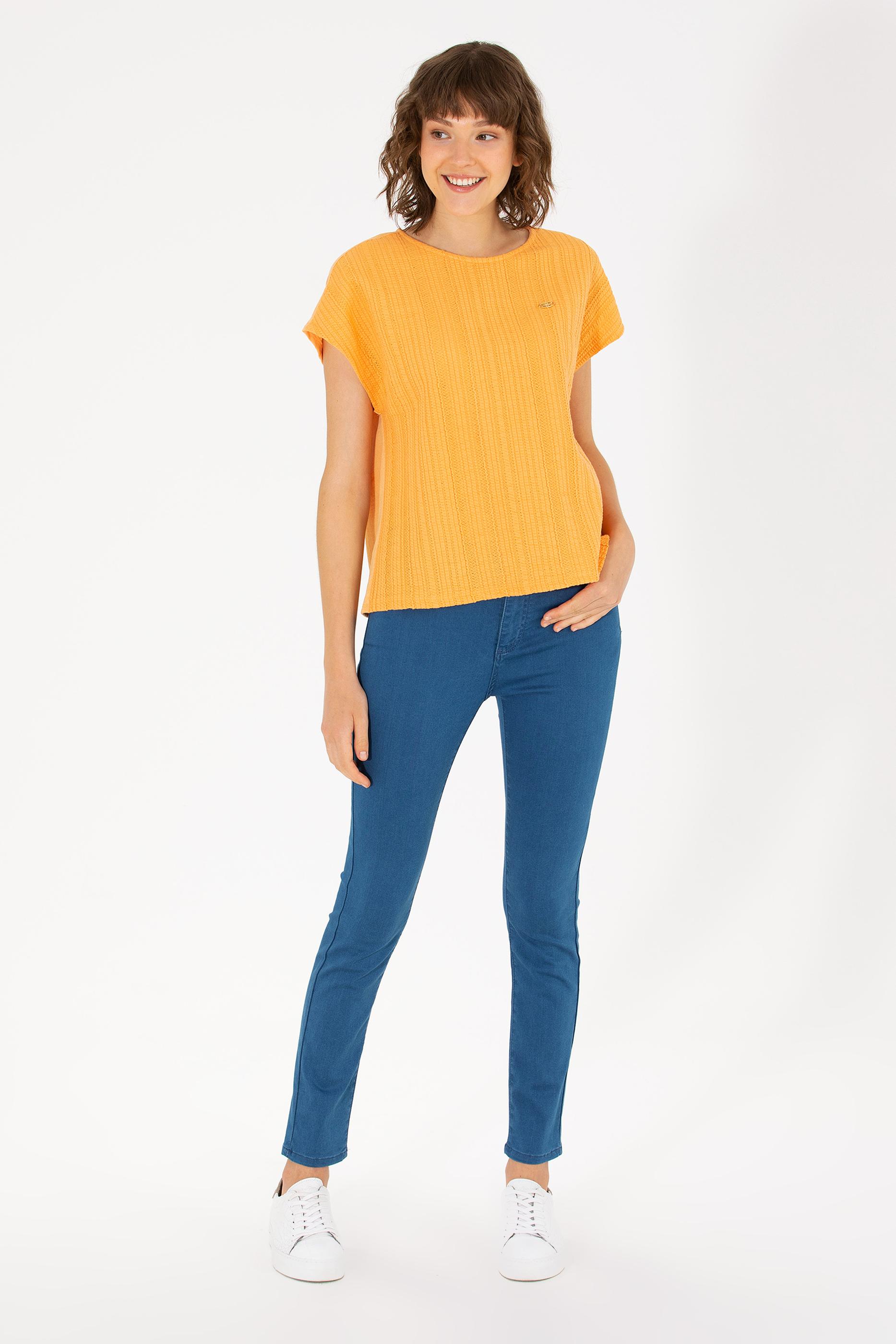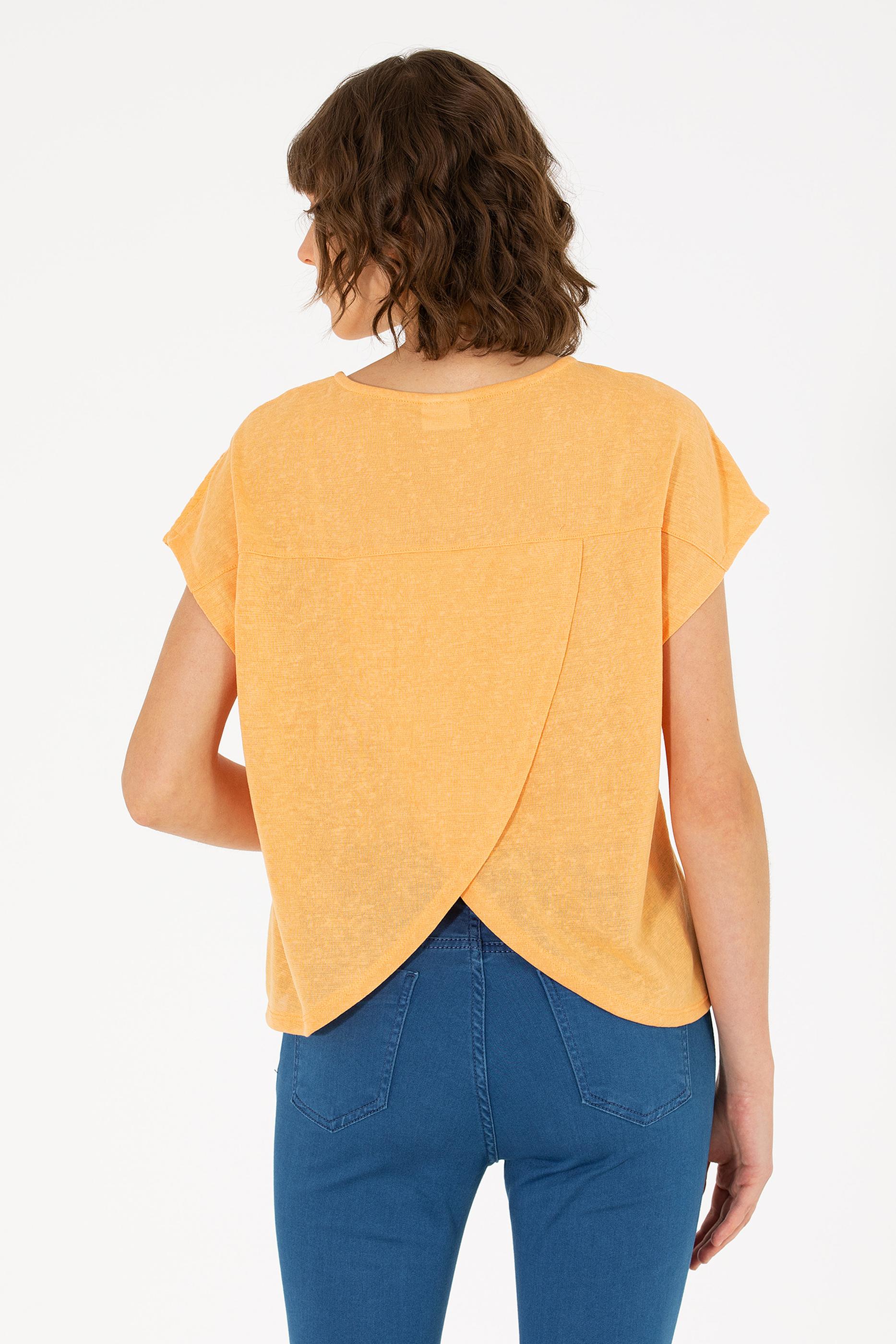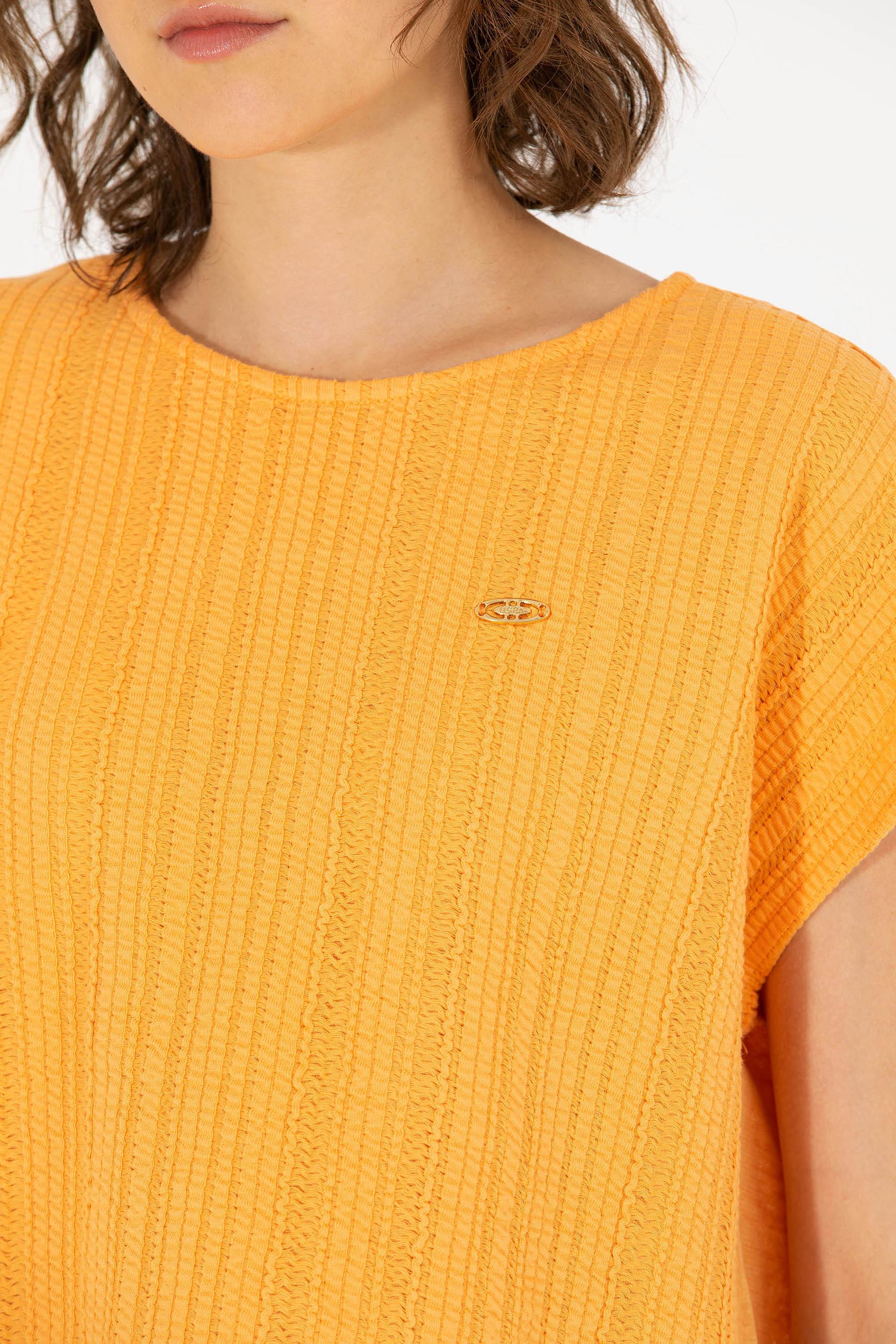 Kadın Turuncu Bisiklet Yaka Tişört