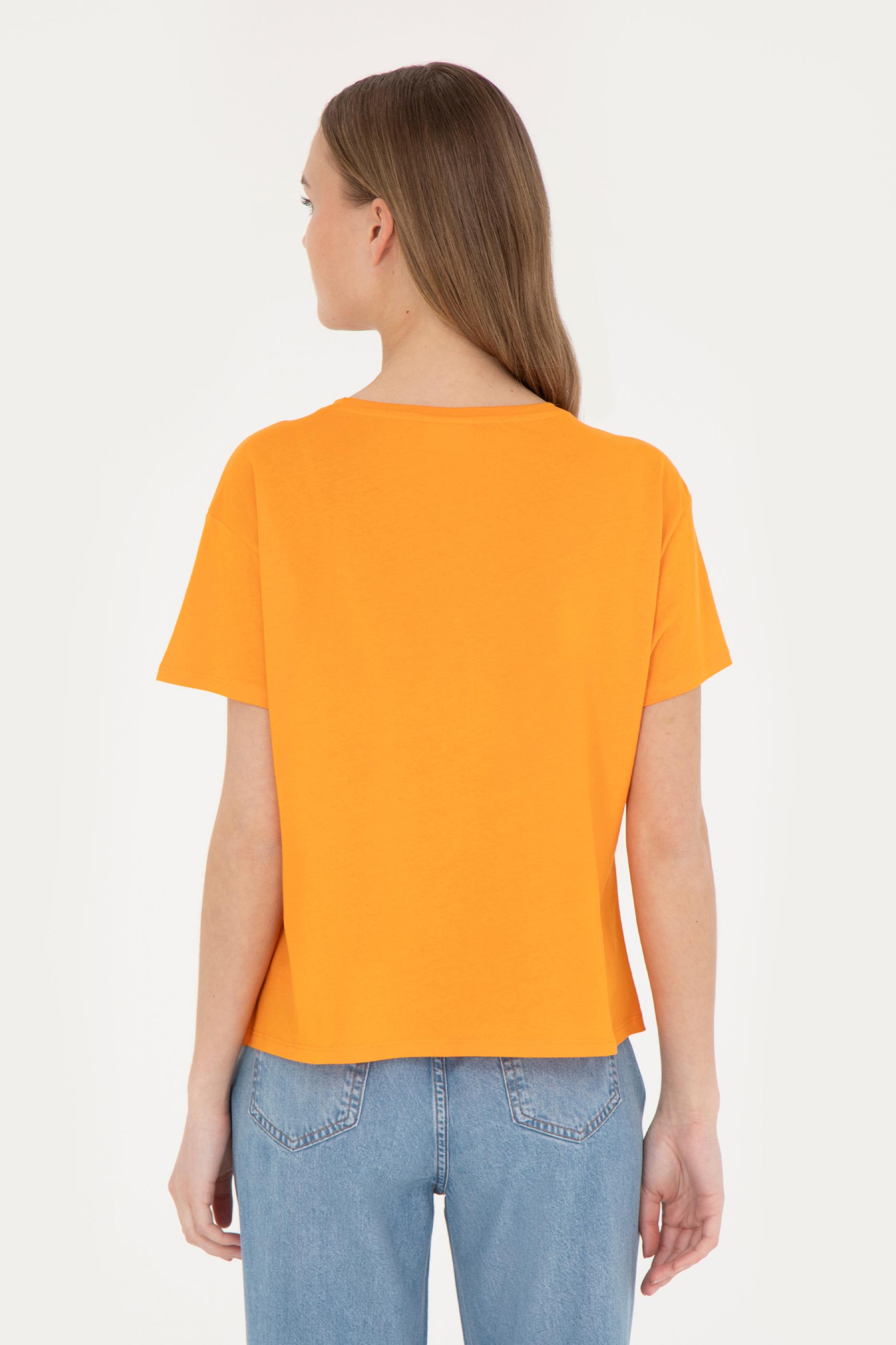 %100 pamuktan üretilmiş olan turuncu pamuk tişört, yumuşak dokusu, nefes alabilir yapısıyla gün boyu rahatlık sunar. Desensiz tasarımı ile sade ve şık bir görünüm sağlar. Comfort fit kesimiyle vücudunuza nazikçe oturur, sıkmadan rahat bir kullanım sunar. Hem günlük kullanımda hem de spor aktivitelerinde ideal bir tercihtir.
