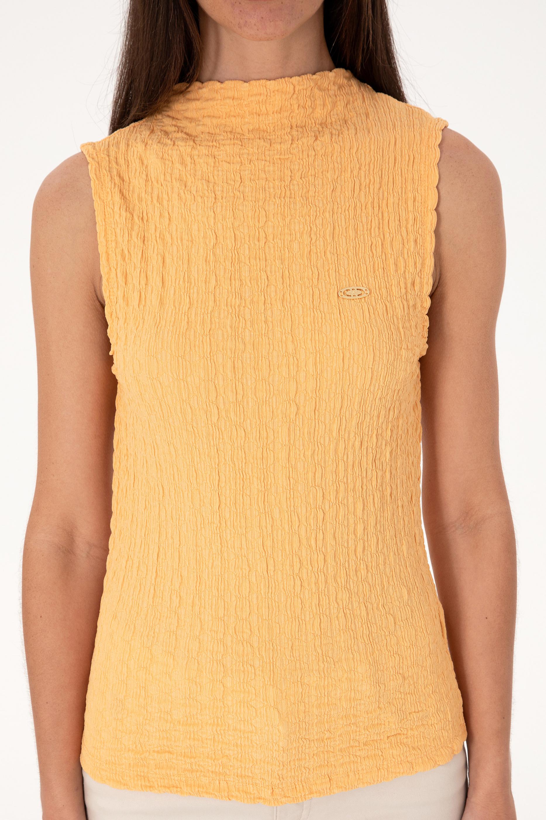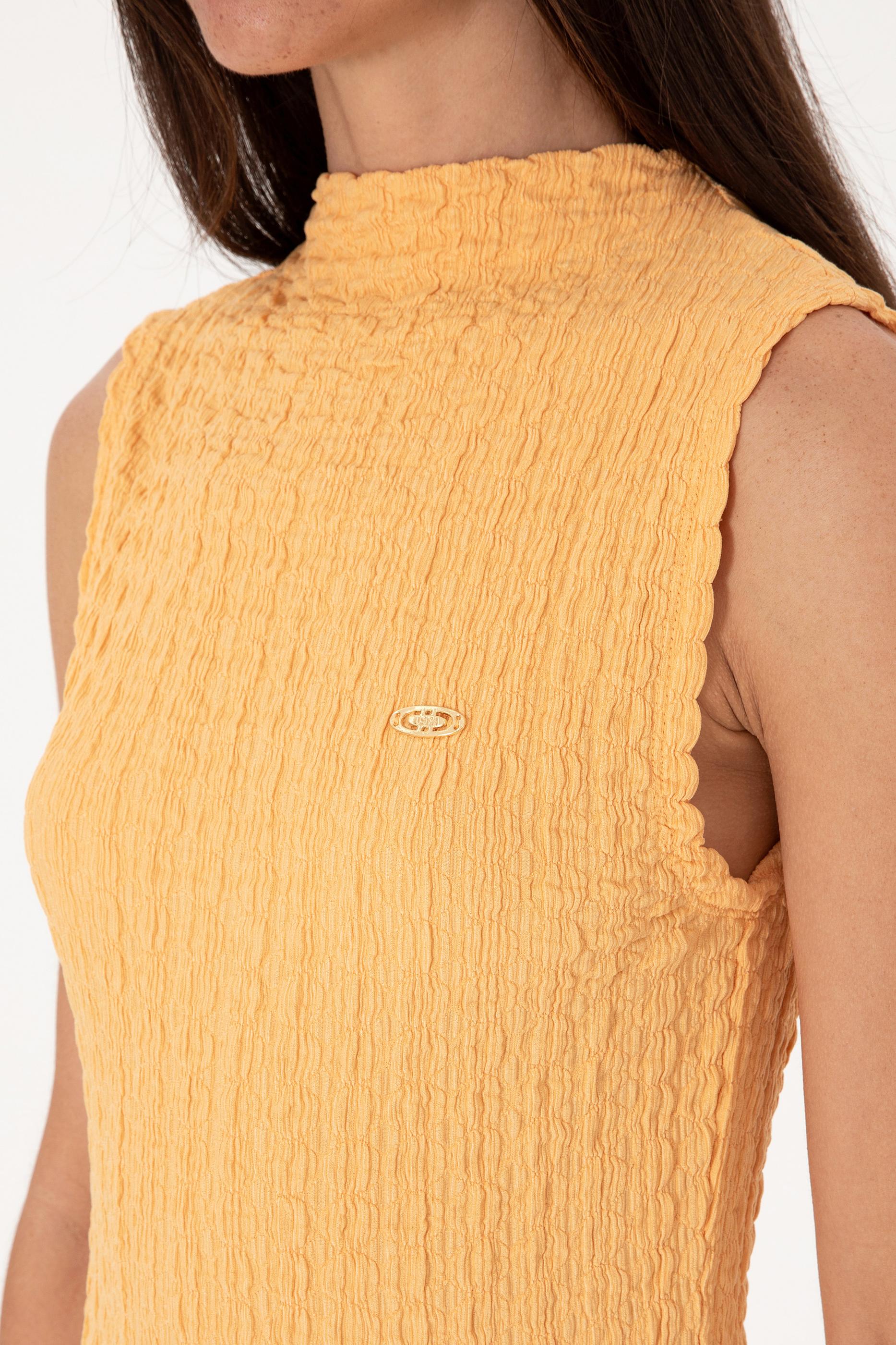 Kadın Turuncu Kolsuz Dik Yaka Tişört