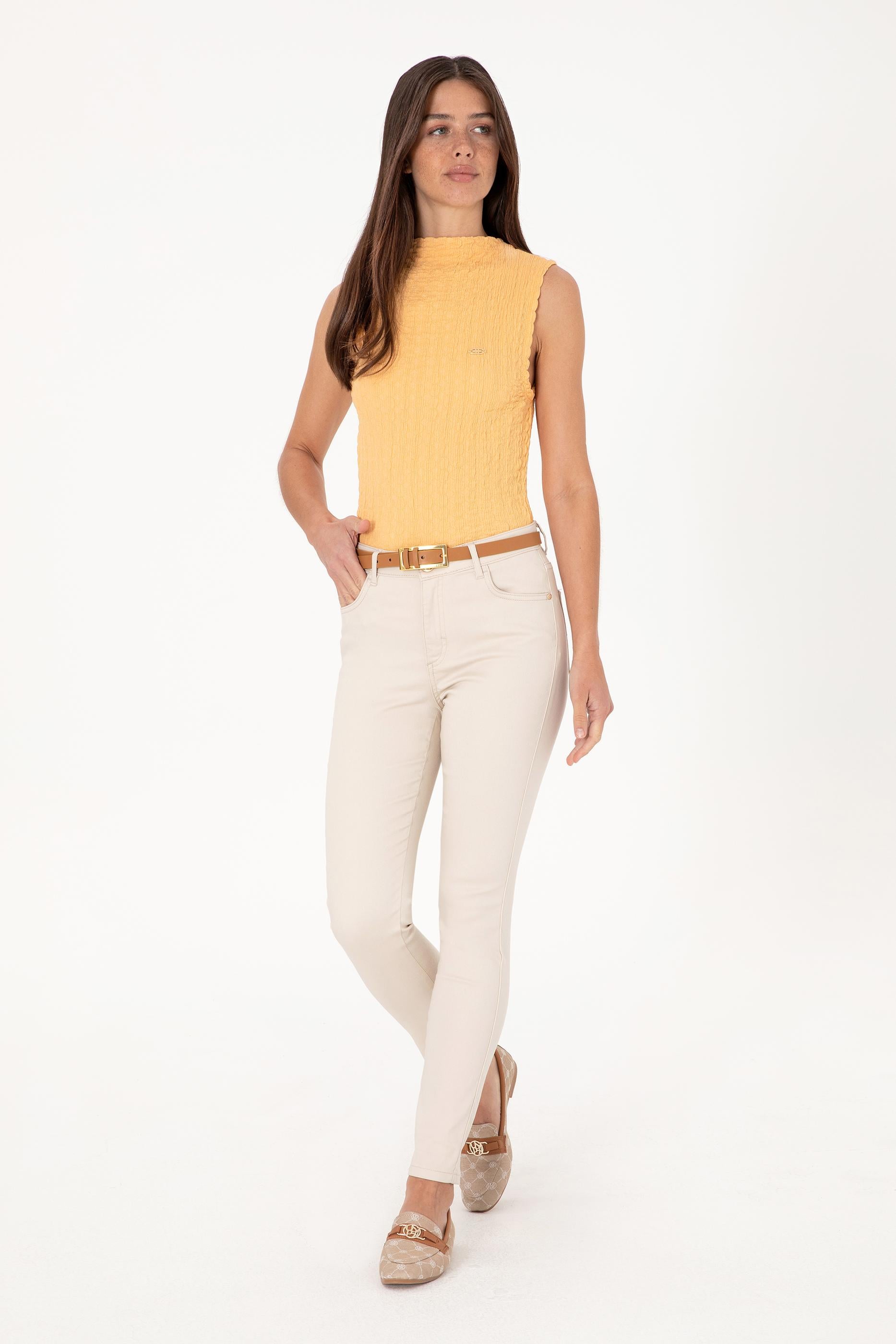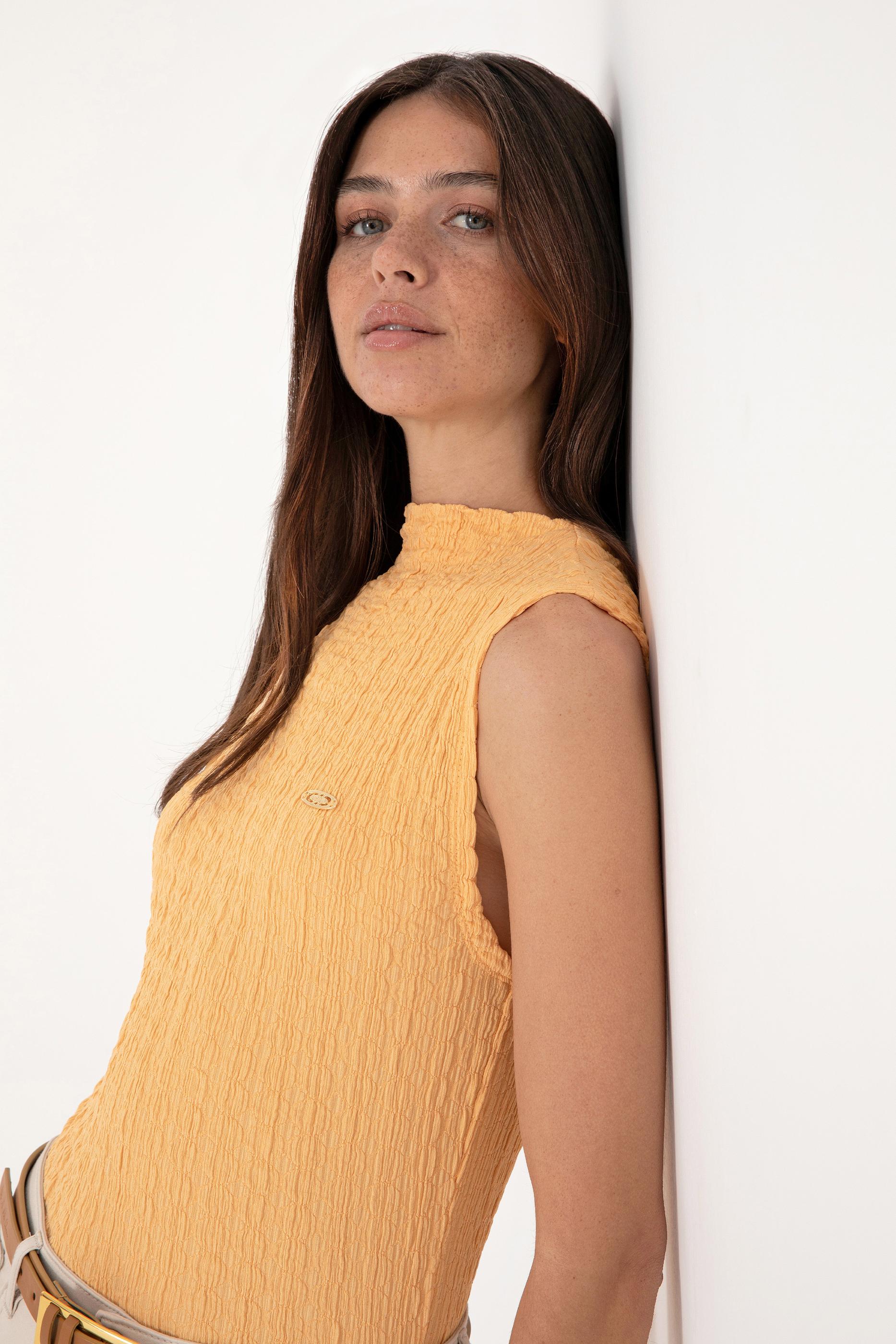 - Kadın Turuncu Kolsuz Dik Yaka Tişört