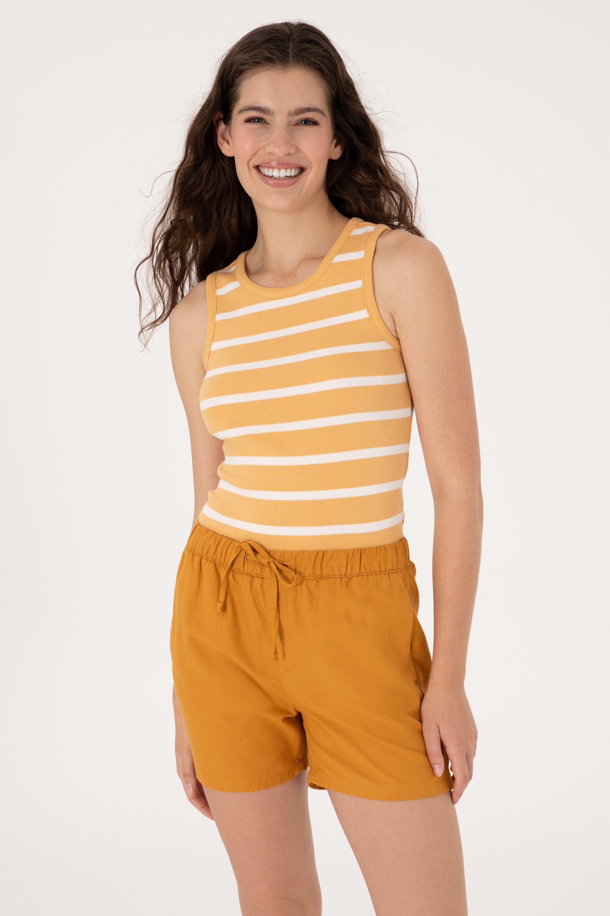 - Kadın Turuncu Çizgili Kolsuz Bisiklet Yaka Tişört