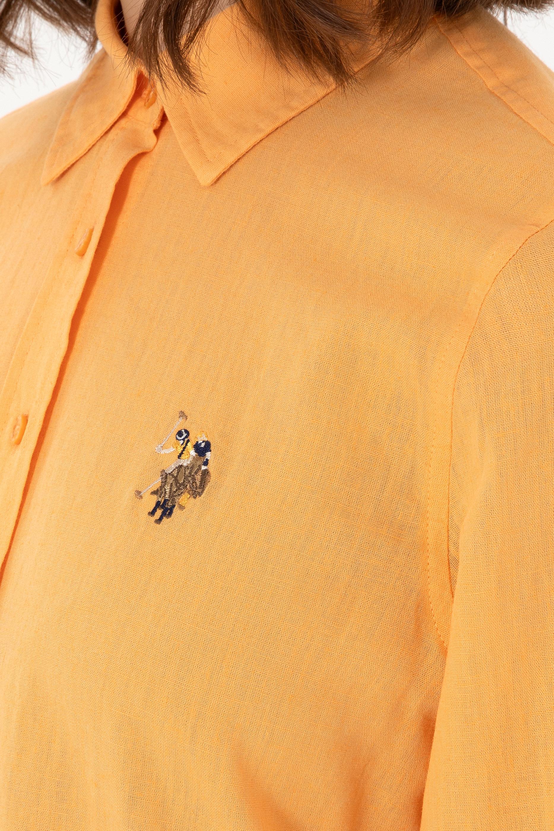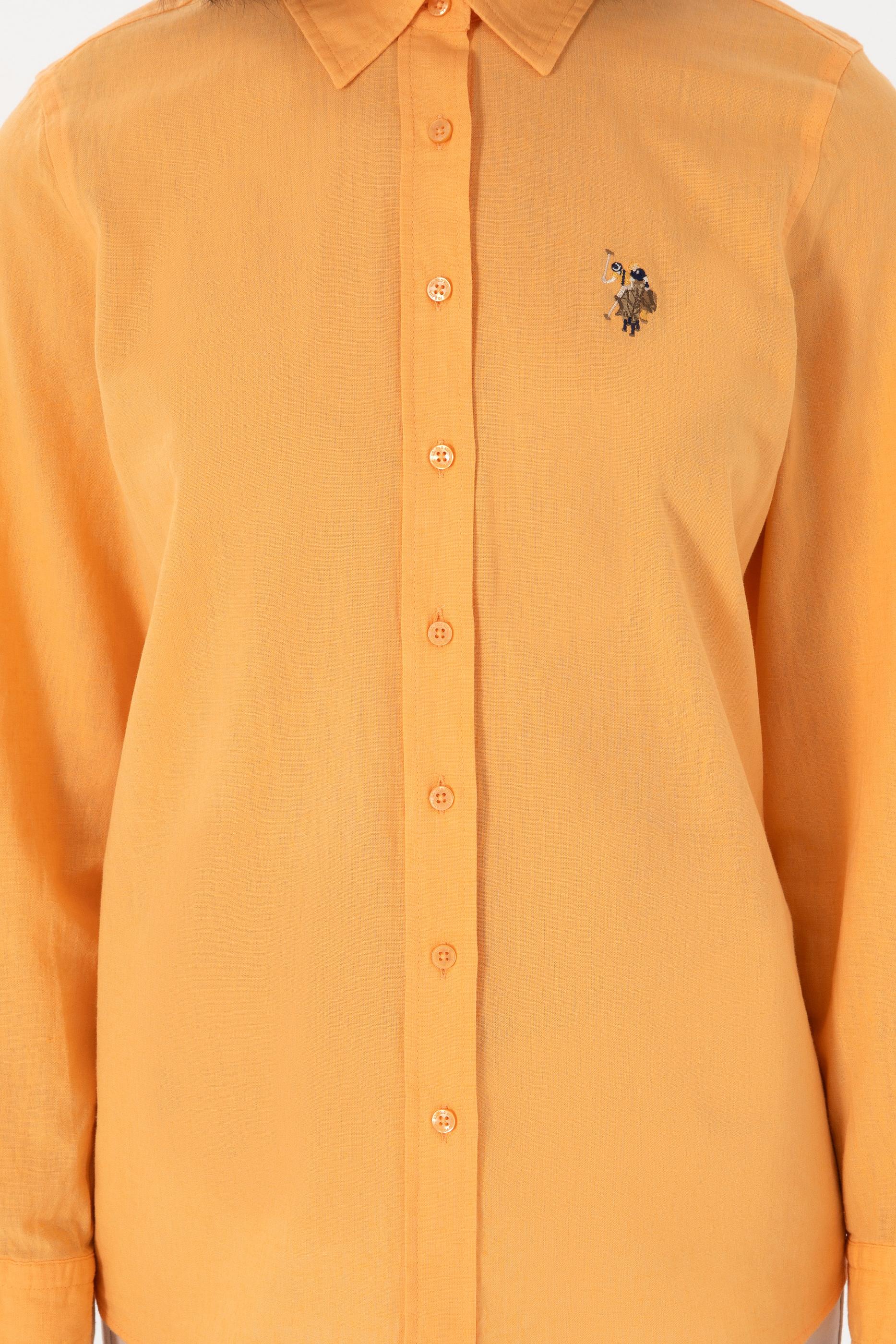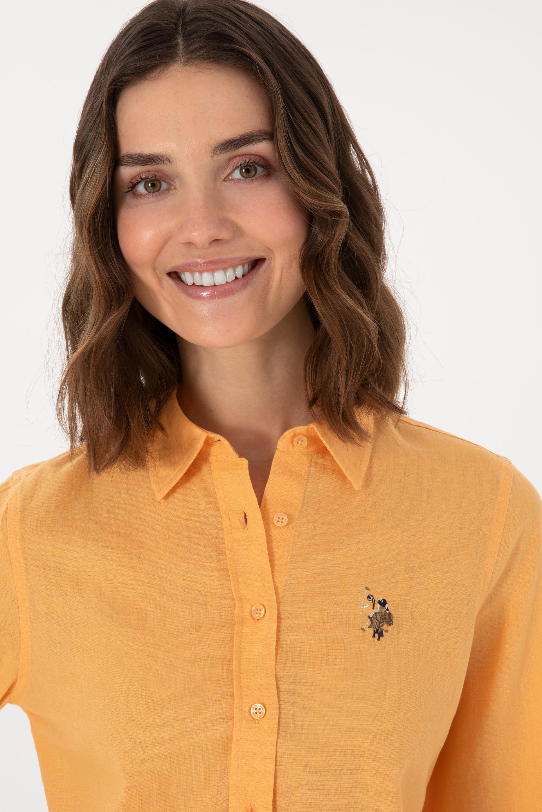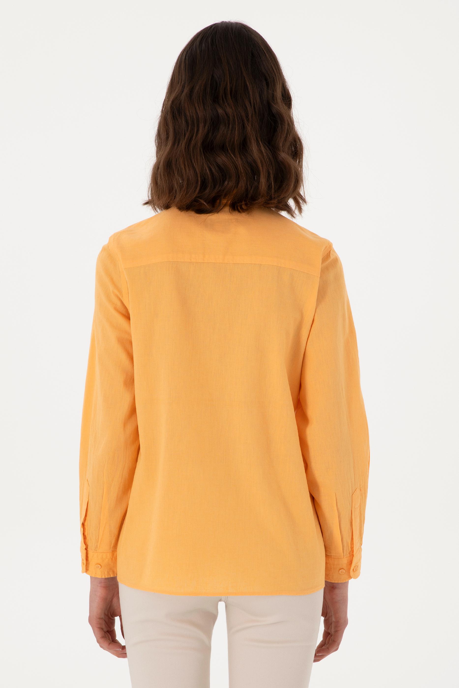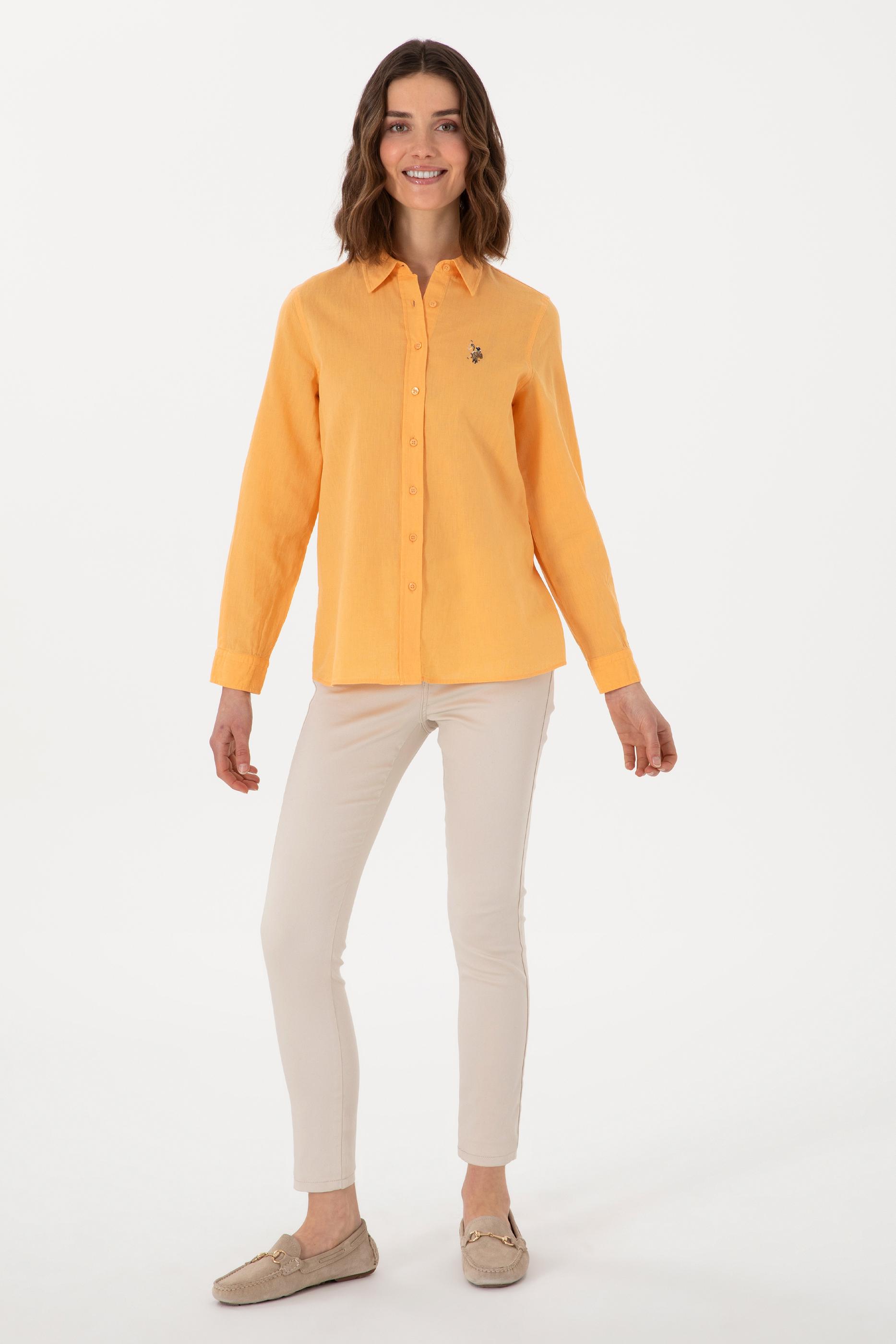 - Kadın Turuncu Keten Karışımlı Uzun Kollu Basic Gömlek