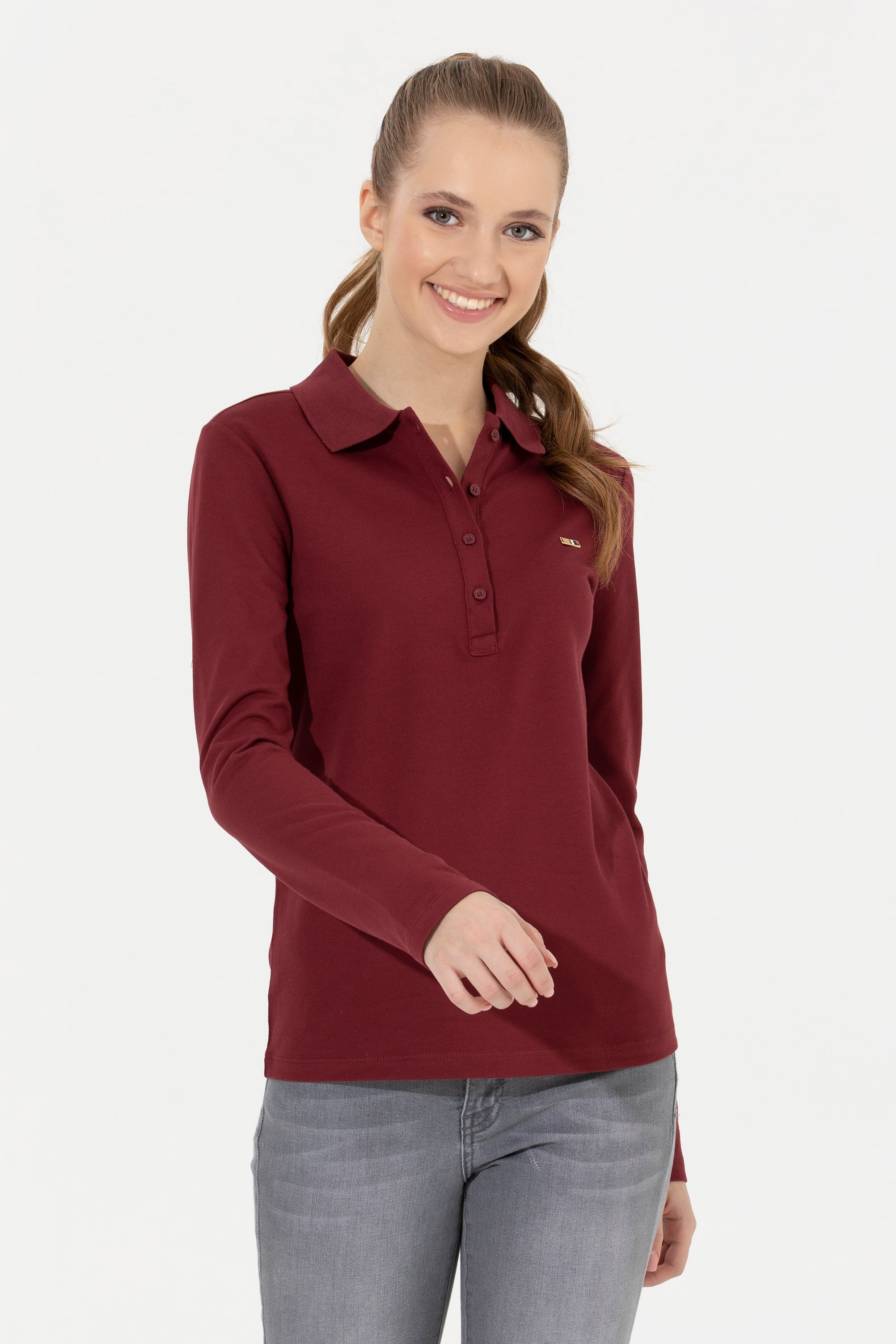 Kadın Vİşne Basic Polo Yaka Sweatshirt