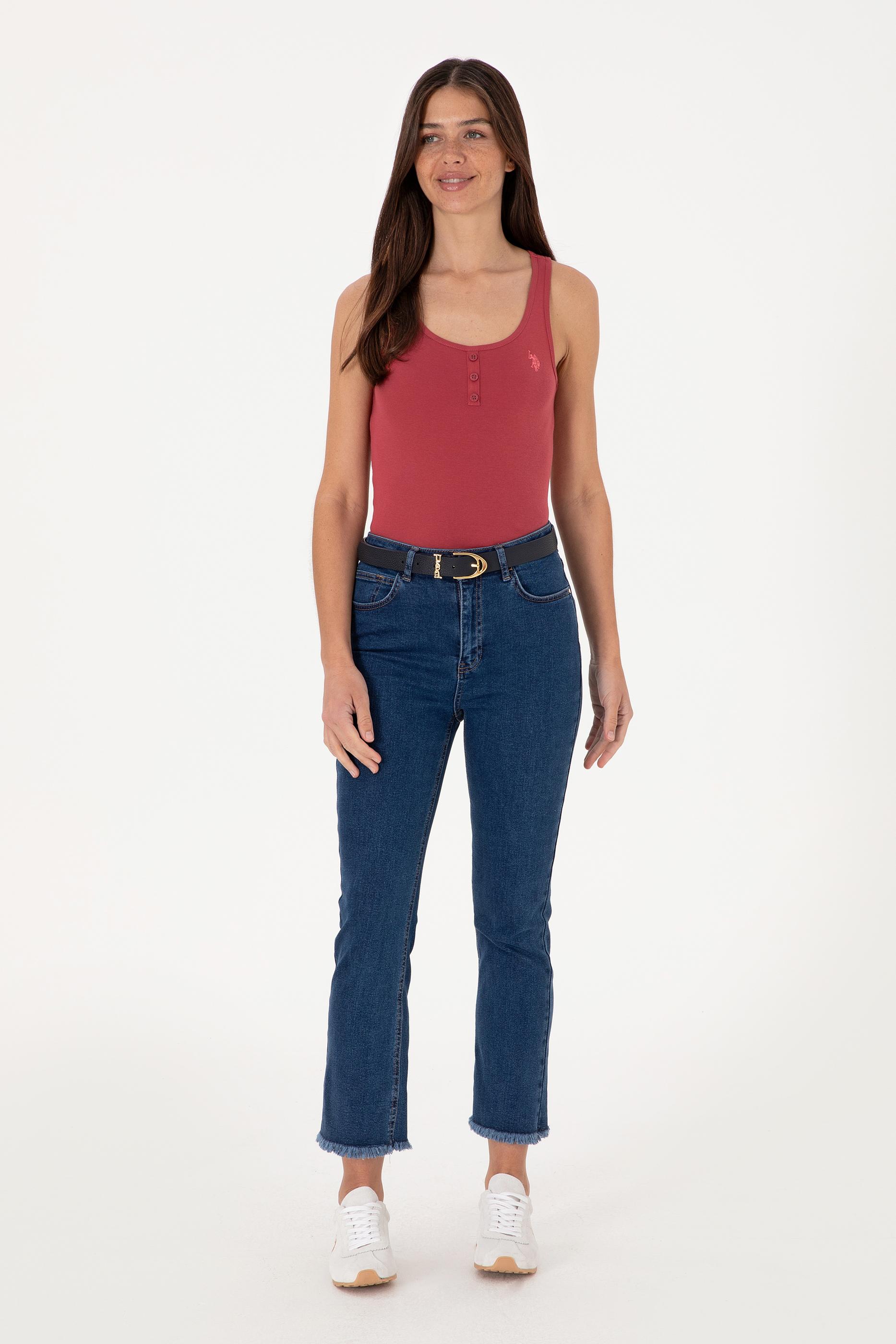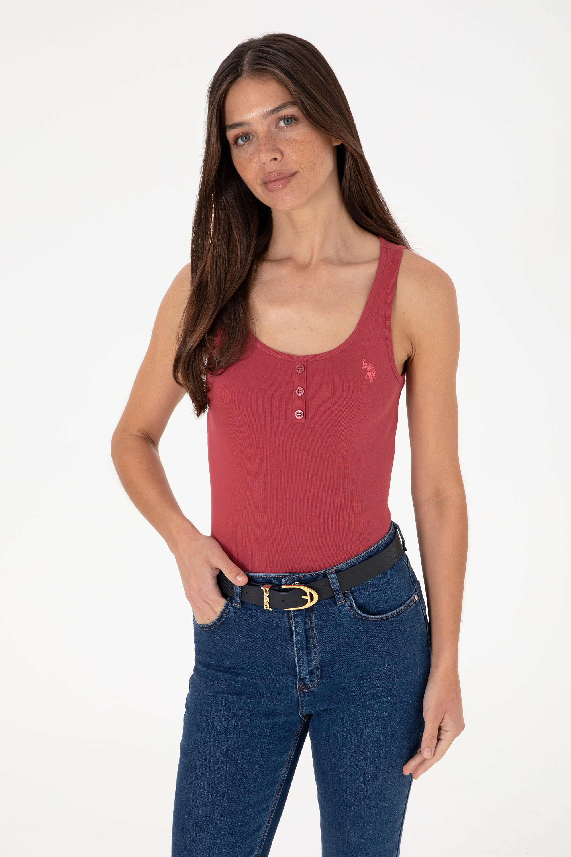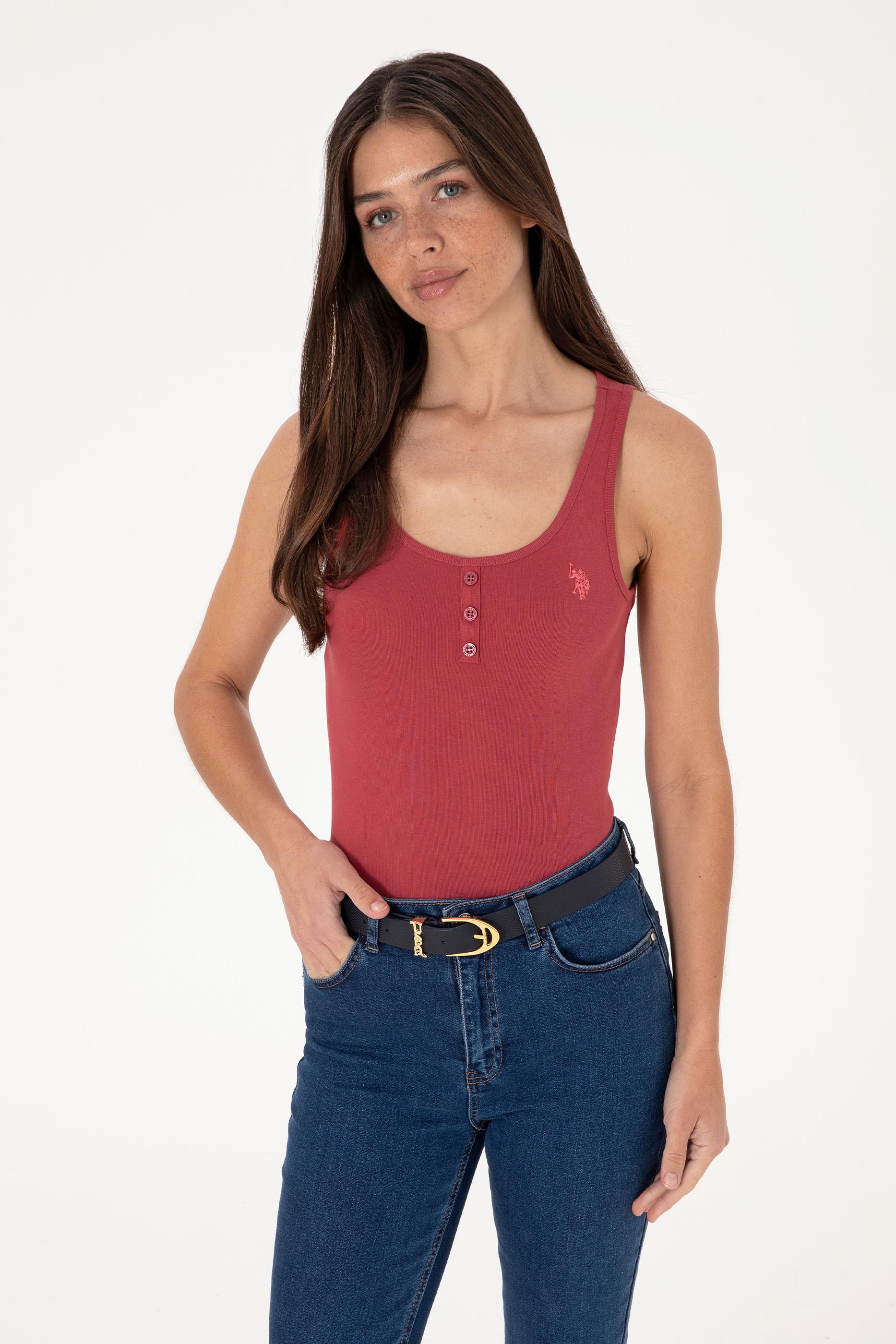 - Kadın Vişne Kolsuz Bisiklet Yaka Basic Tişört