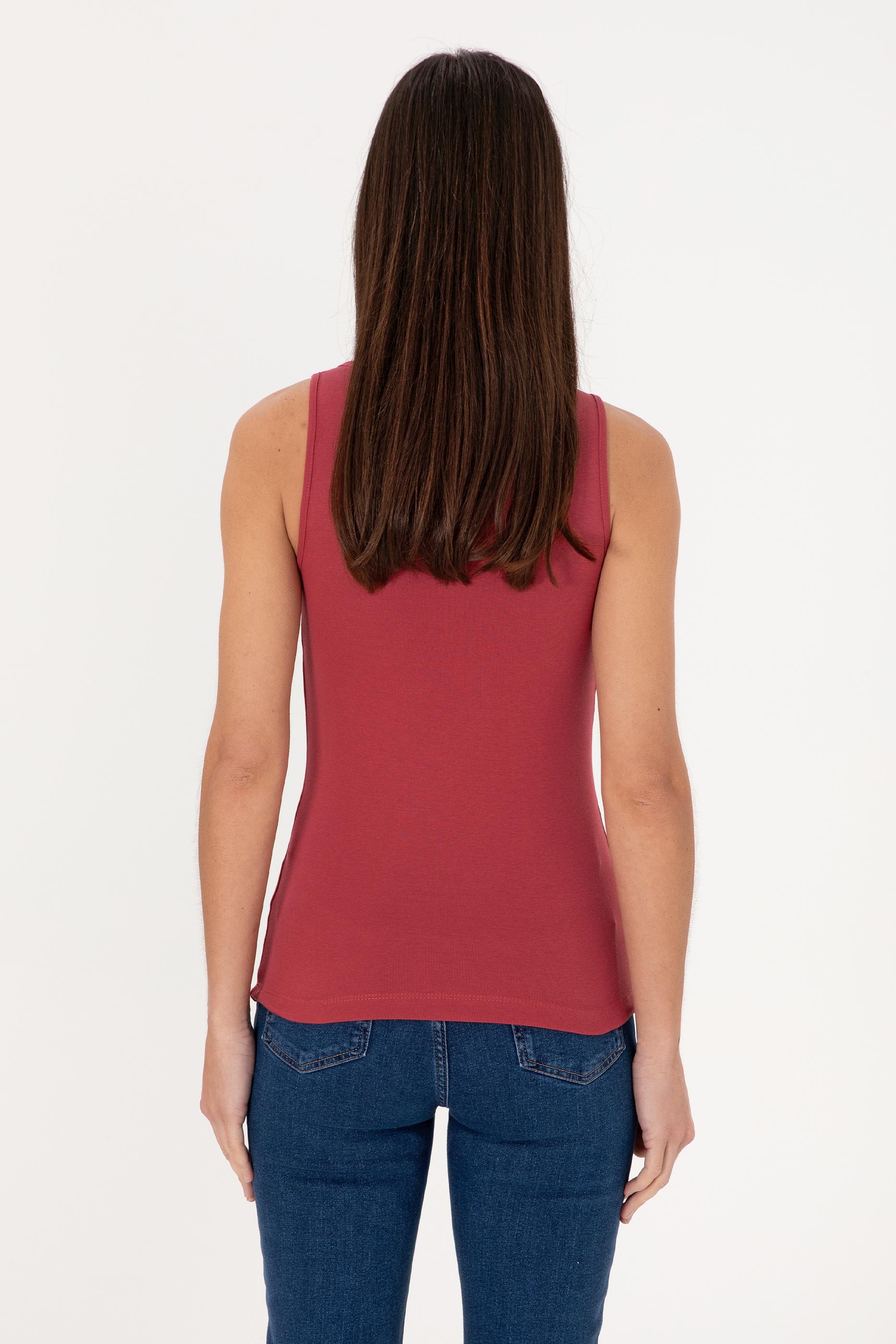 Kadın Vişne Kolsuz Bisiklet Yaka Basic Tişört