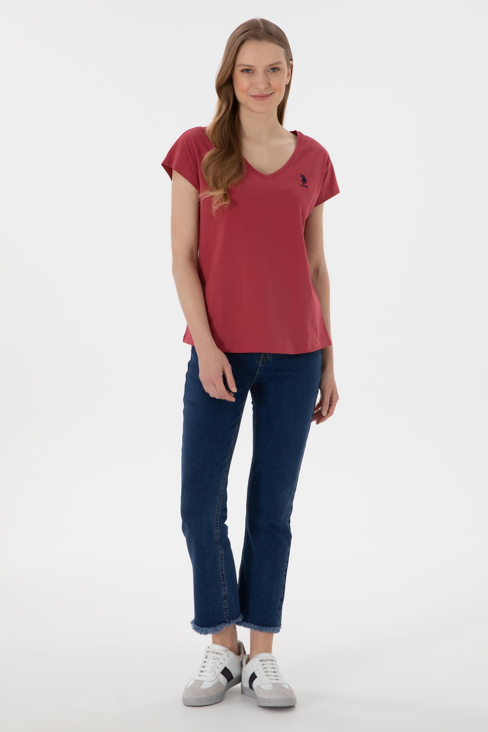 Vişne rengi V yaka t-shirt %100 pamuklu kumaşı sayesinde hafif ve nefes alabilen bir yapı sunar, böylece gün boyu konfor sağlar. Düz tasarımı ve sade formu, onu birçok farklı kombinle uyumlu hâle getirirken, regular kesimi sayesinde vücuda tam oturur. Yumuşak dokusu teni rahatsız etmez, doğal ve rahat bir his bırakır. Vişne rengi, enerjik ve canlı bir görünüm sağlarken, üzerindeki küçük logo detayı modele göz alıcı bir dokunuş katar. V yaka kesimi, boyun bölgesini daha uzun ve zarif gösterir, aynı zamanda rahat bir kullanım sunar. Günlük hayatta şortlarla, kot pantolonlarla veya eteklerle kolayca kombinlenebilir, hem sportif hem de şık bir görünüm elde etmeye yardımcı olur. Yaz aylarında tek başına kullanılabileceği gibi serin havalarda hırka veya ceketlerle tamamlanarak çok yönlü bir kullanım imkânı sunar. Her gardıropta olması gereken klasik model, kullanışlılığı ile öne çıkar ve dikkat çekici bir stil yaratmak isteyenler için ideal bir seçenektir. Kaliteli kumaşı sayesinde uzun süre formunu korur, yıkama sonrası bile canlı rengini ve yumuşaklığını korur.