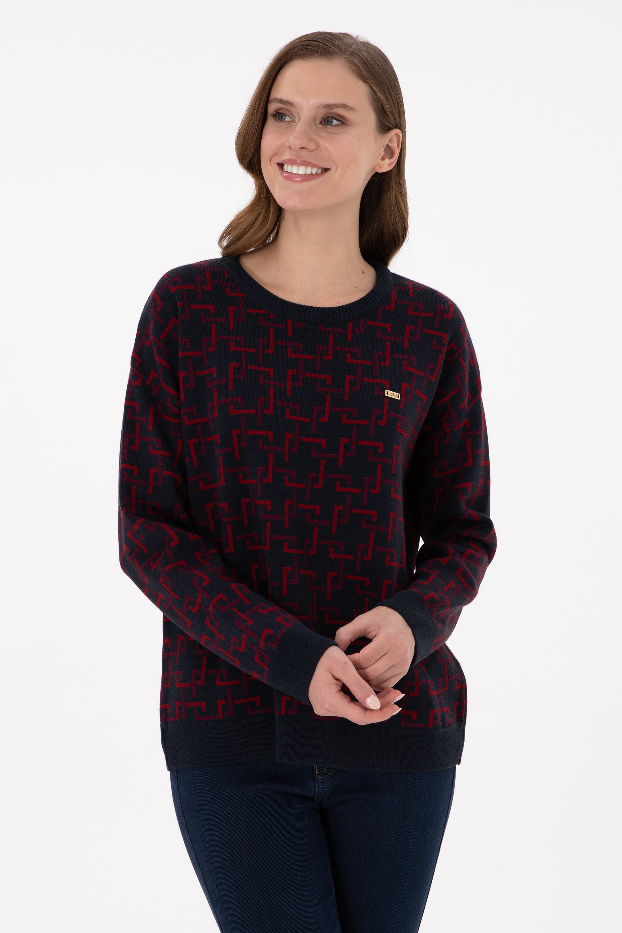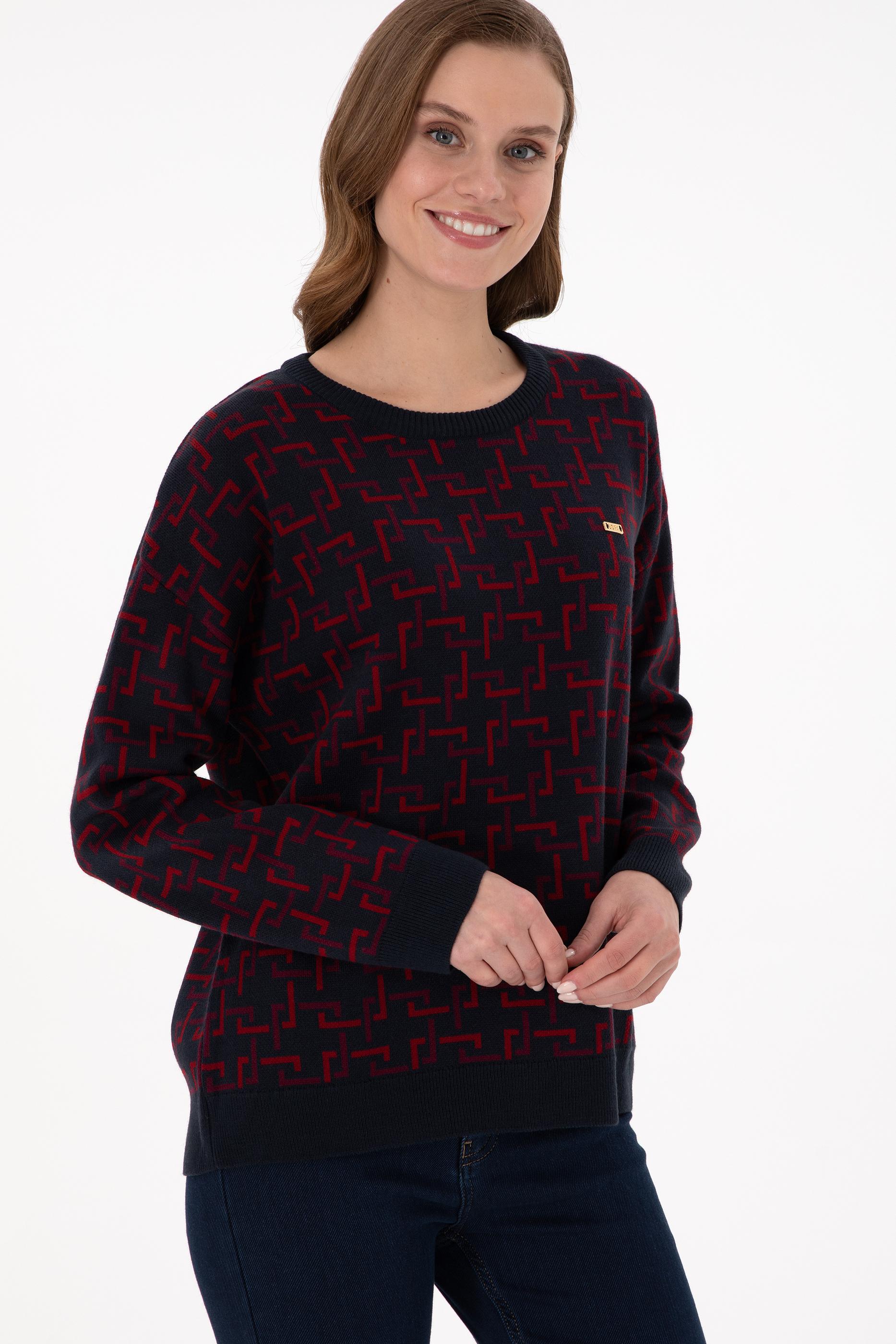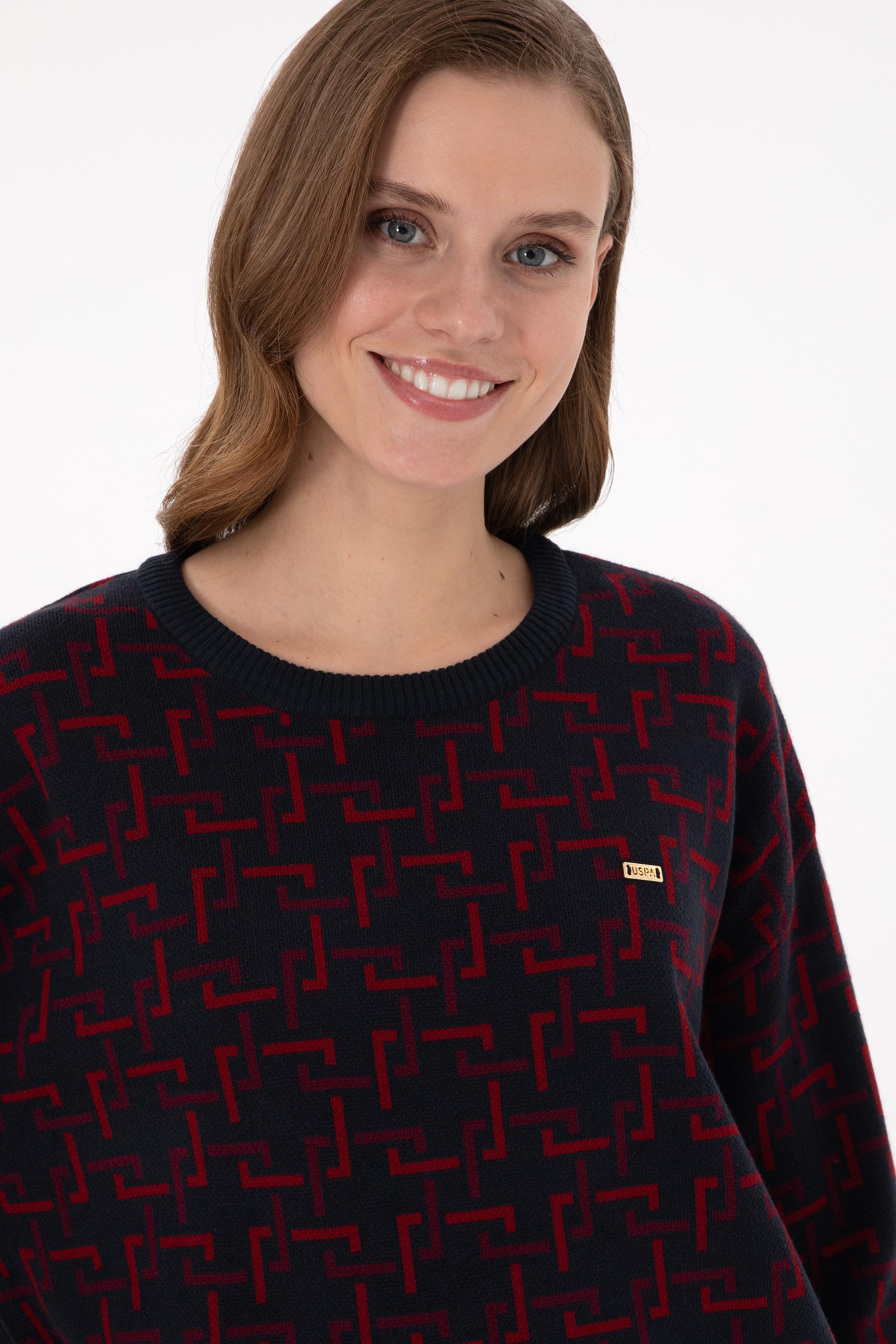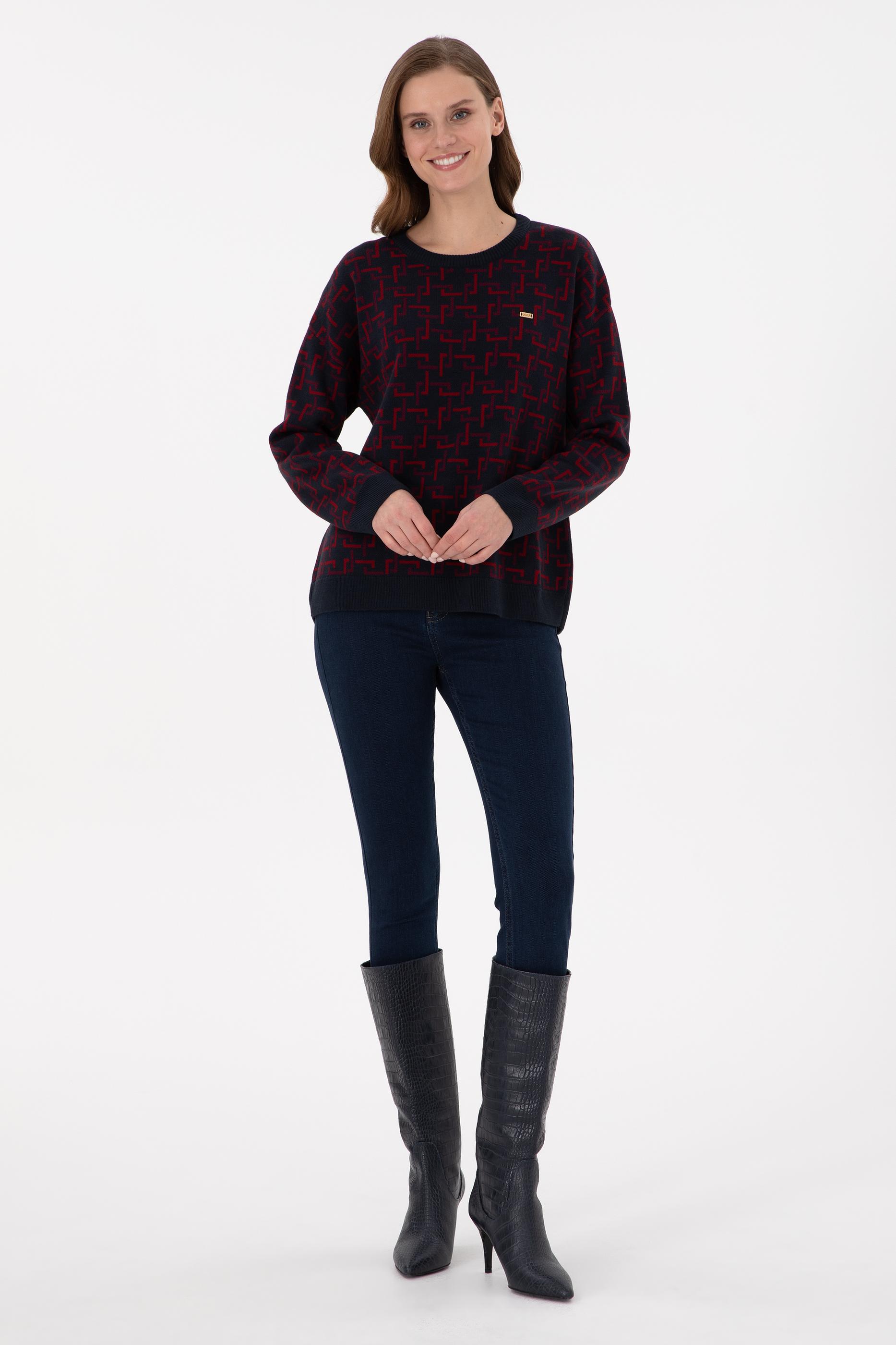 Kadın Vişne Bisiklet Yaka Kazak