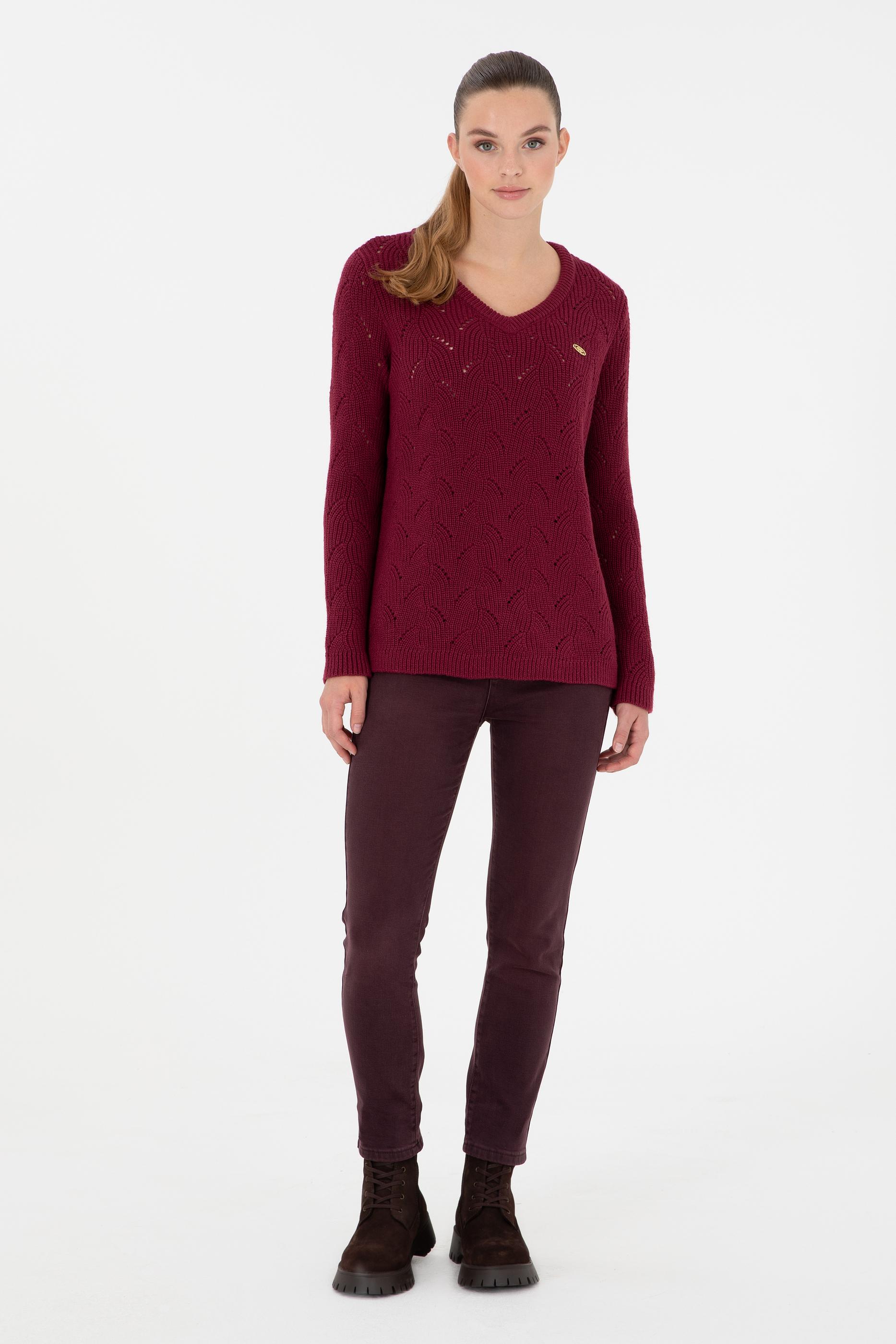 Göz alıcı vişne rengi ve delikli tasarımıyla öne çıkan triko kazak, kış mevsiminin vazgeçilmez parçalarından biridir. Özgün tasarımı ile, hem sıcak tutma özelliği hem de stil sahibi görünümü ile dikkat çekmektedir. %100 akrilik malzemeden üretilen, hafif yapısıyla rahat bir kullanım deneyimi sunmakta ve soğuk havalarda şıklığınızdan ödün vermeden sıcak kalmanızı sağlamaktadır. V-yaka detayı, şık bir siluet oluştururken, delikli dokusu da ferah bir görünüm katmaktadır. Regular fit yapısı, vücut hatlarını güzelce sarmakta ve her bedene uyum sağlamaktadır. Farklı stil alternatifleriyle hem gündelik yaşamda hem de özel davetlerde rahatlıkla giyilebilen, kullanım açısından büyük bir esneklik sunmaktadır. Uzun kollu yapısı, soğuk havalarda sıcak kalmayı sağlayarak katmanlı giyimde mükemmel bir seçenek haline gelmektedir. Hem şıklığınızı koruyabilir hem de konforlu bir deneyim yaşayabilirsiniz. Uzun kollu tasarımı, soğuk havalarda sıcak tutmakta ve katmanlı giyimde kullanılma avantajı sağlamaktadır. Ayrıca, vişne renginin canlılığı, enerjik bir görünüm sunarak, kombinlerinize hareket katmaktadır. Kolay bakımı sayesinde zahmetsiz bir şekilde temizlenebilmesi, önemli bir avantaj sunmaktadır. Ofiste, arkadaş buluşmalarında ya da günlük yürüyüşlerde şık bir alternatif oluşturarak, modayı takip edenlerin gözdesi olmaktadır.