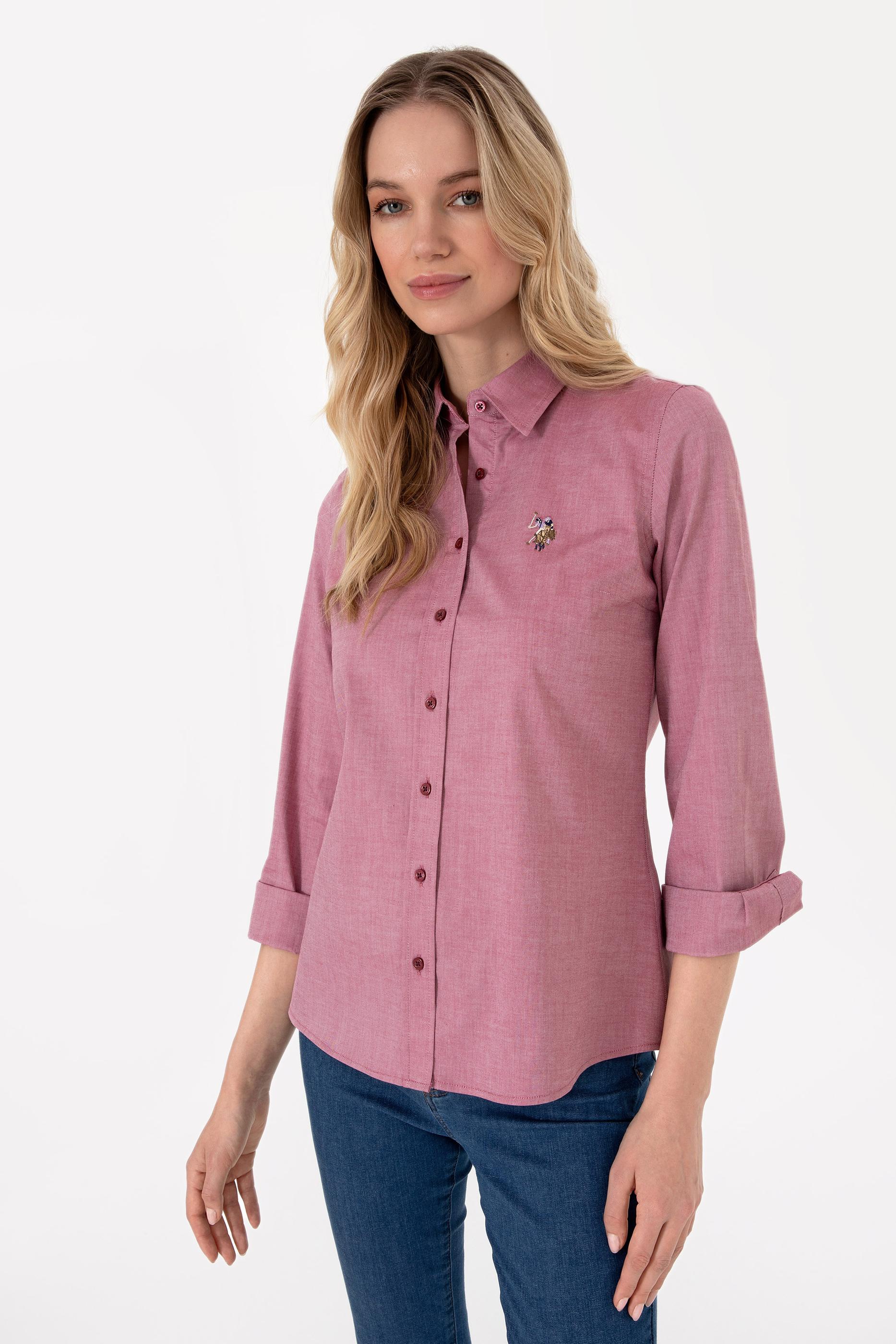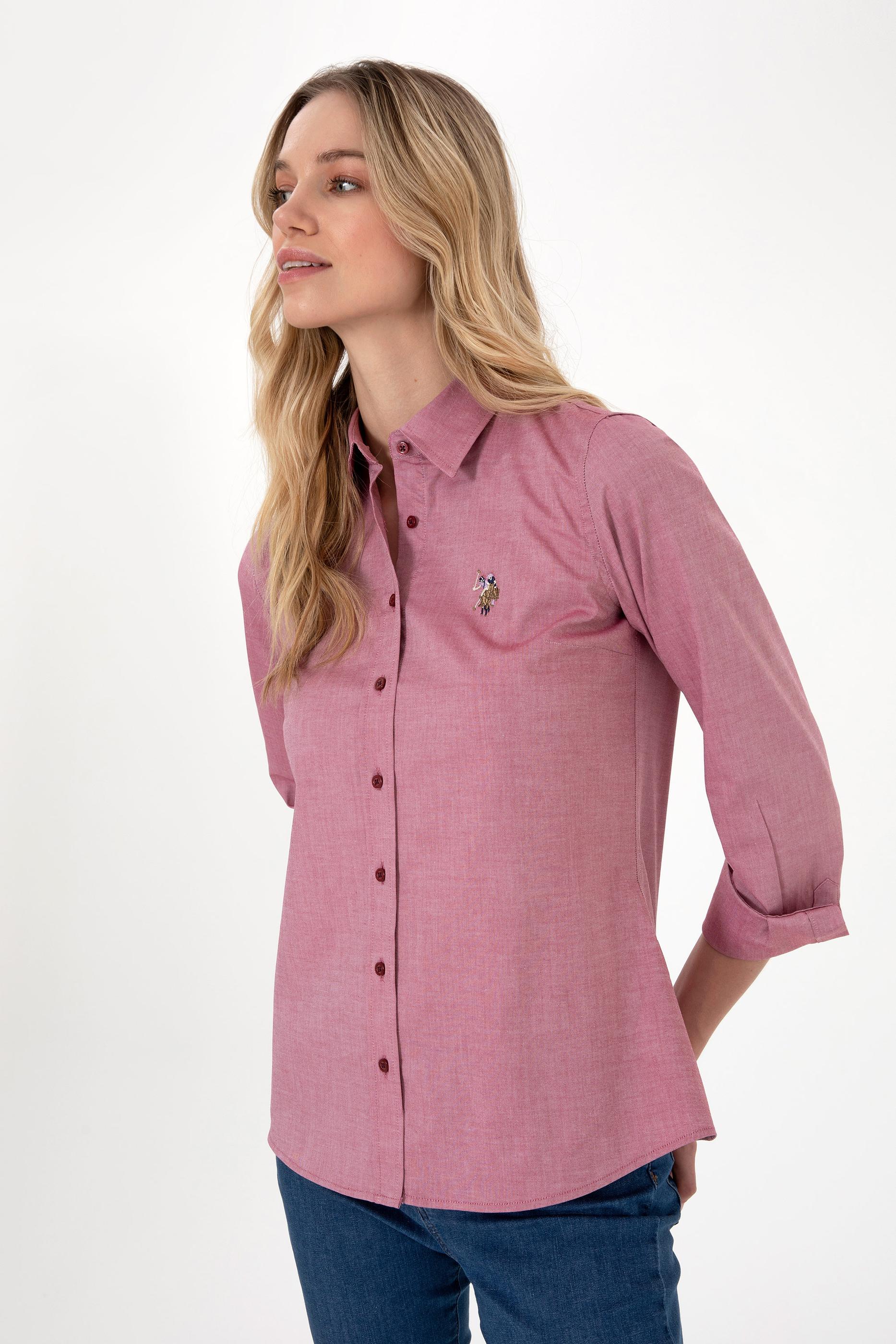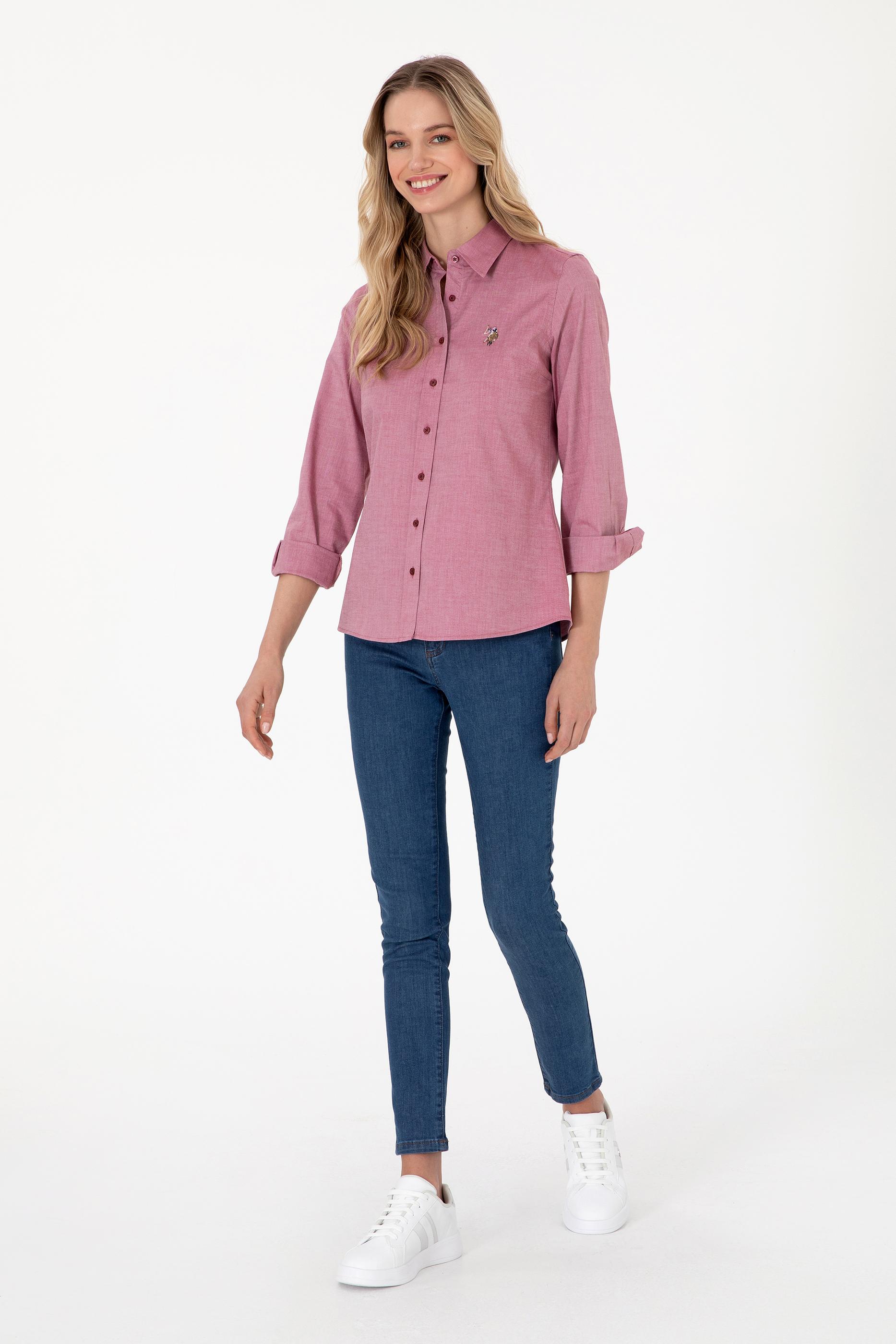 - Kadın Vişne Uzun Kollu Basic Gömlek