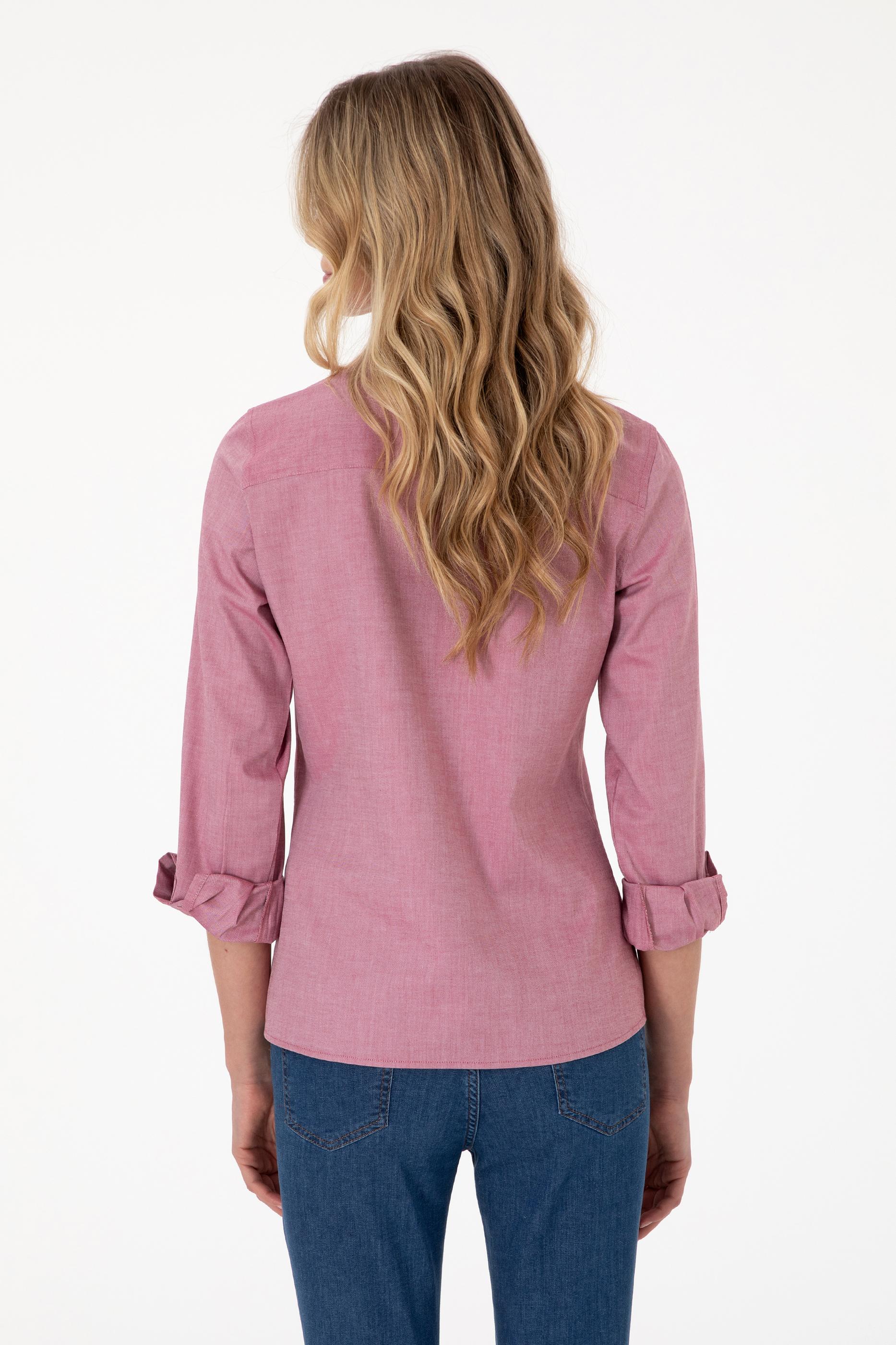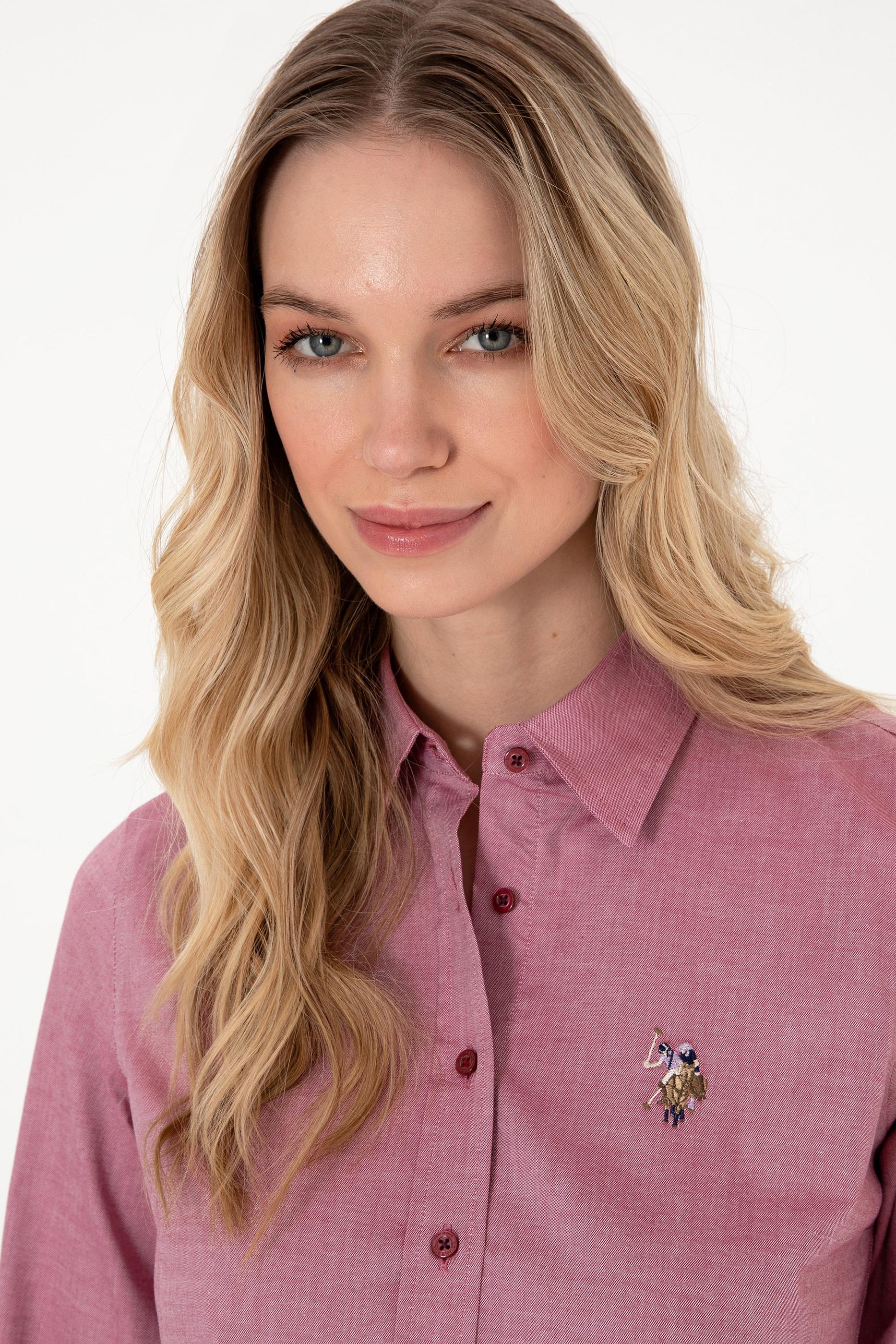 Kadın Vişne Uzun Kollu Basic Gömlek