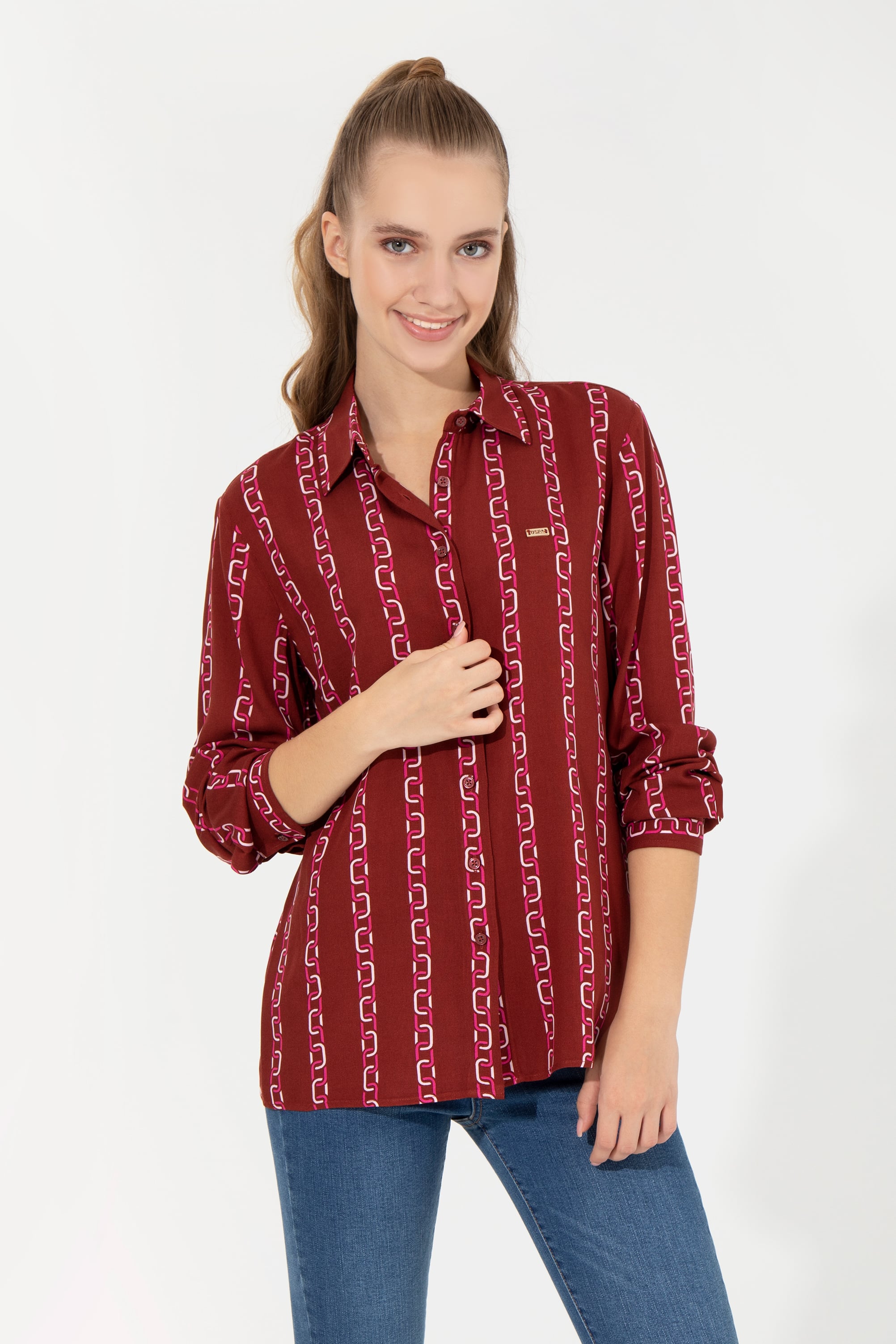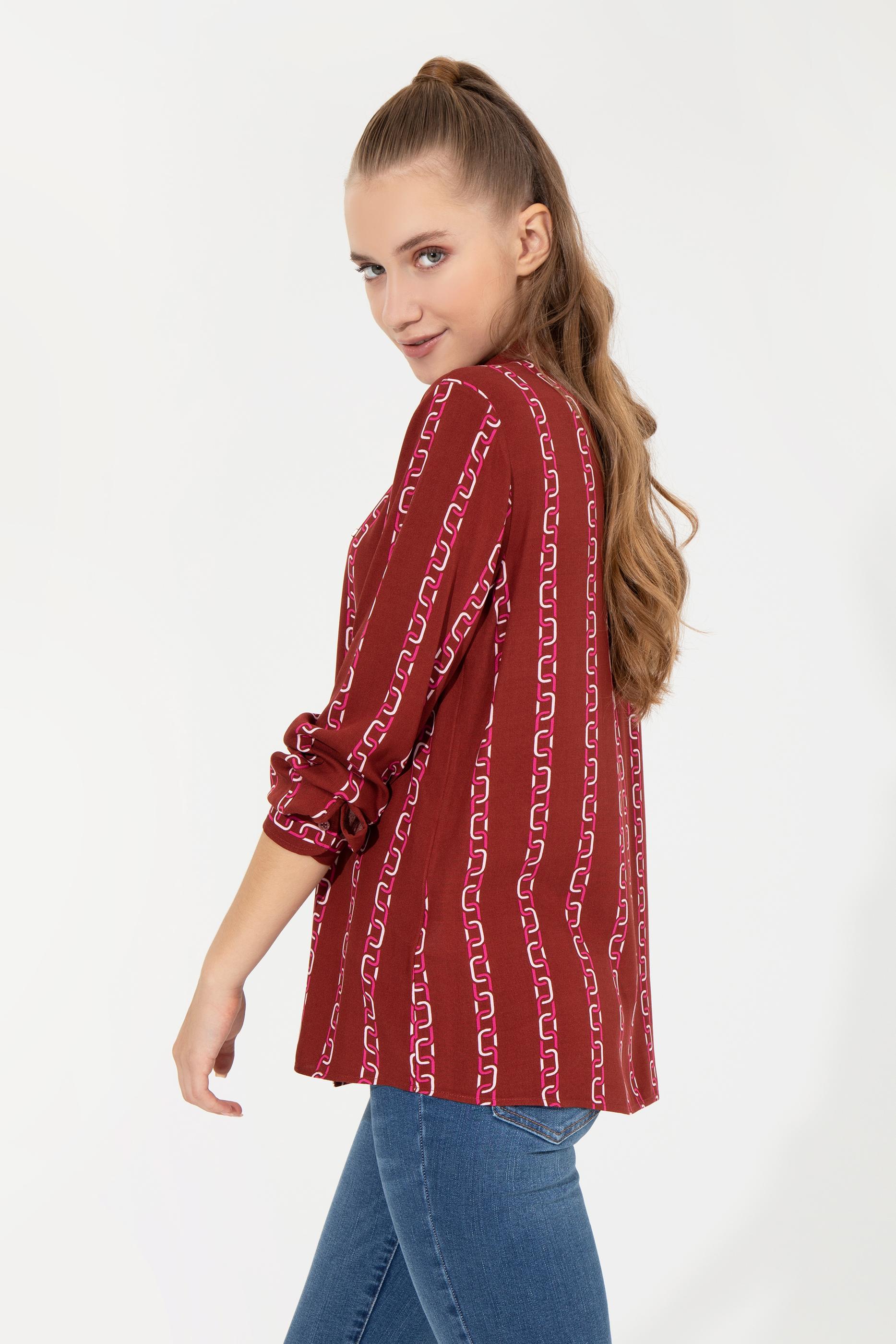 - Kadın Vişne Uzun Kollu Gömlek