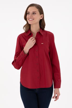 Yoğun dokusu ve göz alıcı rengiyle vişne tonlarındaki uzun kollu gömlek, şıklığı ve rahatlığı bir araya getirmektedir. %100 pamuk yapısı ile cildi rahatlatan ürün, hafif ve nefes alabilen bir kumaştan üretilmiştir. Gün boyu kullanım için ideal olan kumaş, özellikle sıcak havalarda serinlik sağlamaktadır. Doğal lif yapısı sayesinde hassas ciltler için de güvenle tercih edilebilir. Düz tasarımı, sade ve şık bir görünüm sunarken, vişne rengi gömleğe tatlı bir hava katmaktadır. Bu göz alıcı renk, klasik bir stile modern bir dokunuş kazandırmakta ve her türlü kombine uyum sağlamaktadır. Geniş bir kullanım alanı sunan gömlek, hem günlük hayatta hem de iş ortamında rahatlıkla tercih edilebilir. Comfort fit kalıbı, vücuda yapışmayan yapısı ile hareket özgürlüğü sunmaktadır. Özellikle yoğun tempolu günlerde hem rahat hem de şık olma ihtiyacına karşılık gelmektedir. Rahat kesimi sayesinde farklı vücut tiplerine kolayca uyum sağlamakta, her ortamda stil sahibi bir duruş sergilemektedir. Düz deseni detaylarıyla, farklı aksesuarlarla kolayca kombinlenebilecek bir yapıya sahiptir. Kol manşetlerinde yer alan düğmeler ise klasik detaylar arasında yer almaktadır. Hem pantolon hem de eteklerle rahatlıkla kombin yapılabilir.
