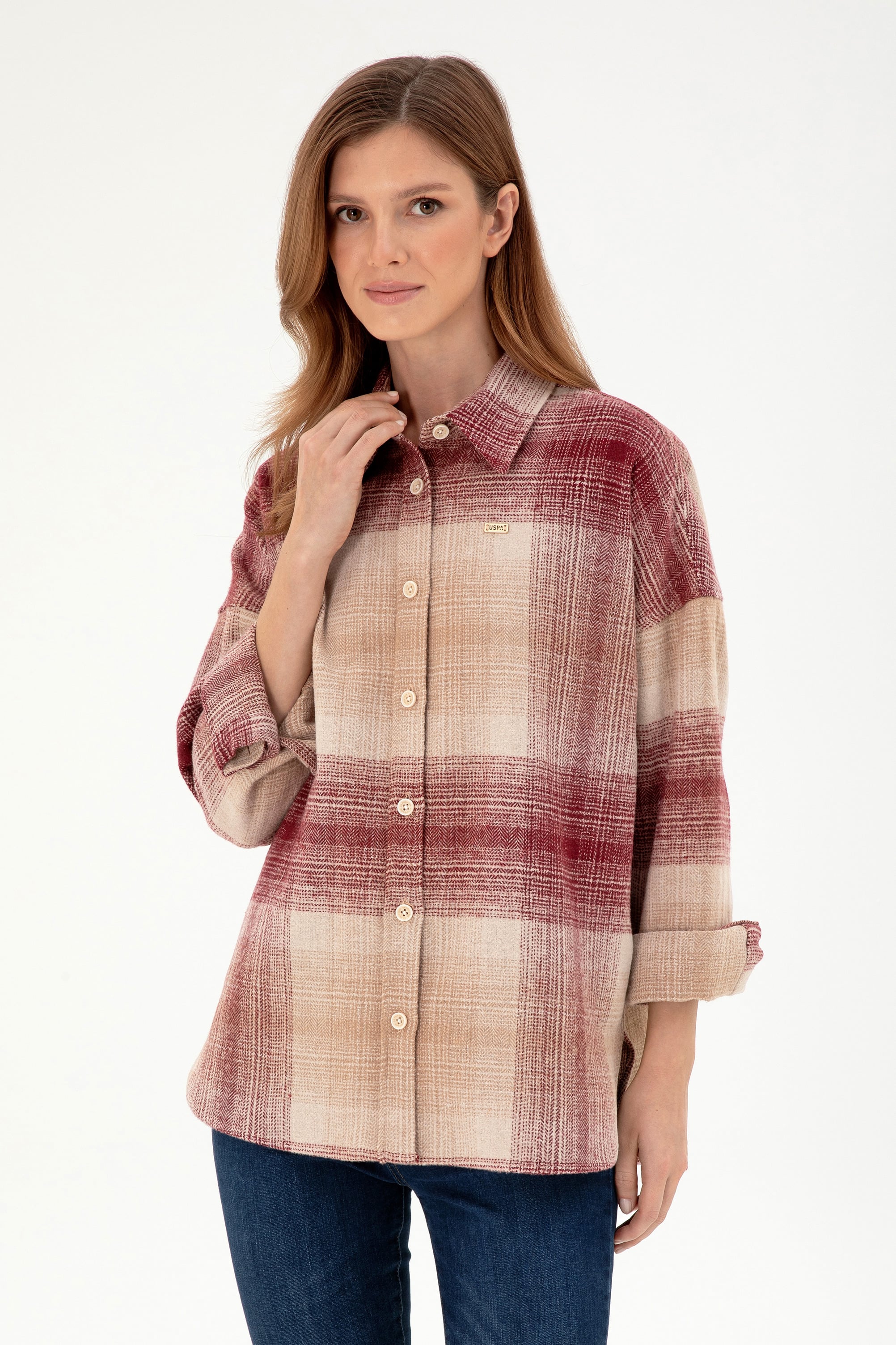 - Kadın Vişne Uzun Kollu Gömlek