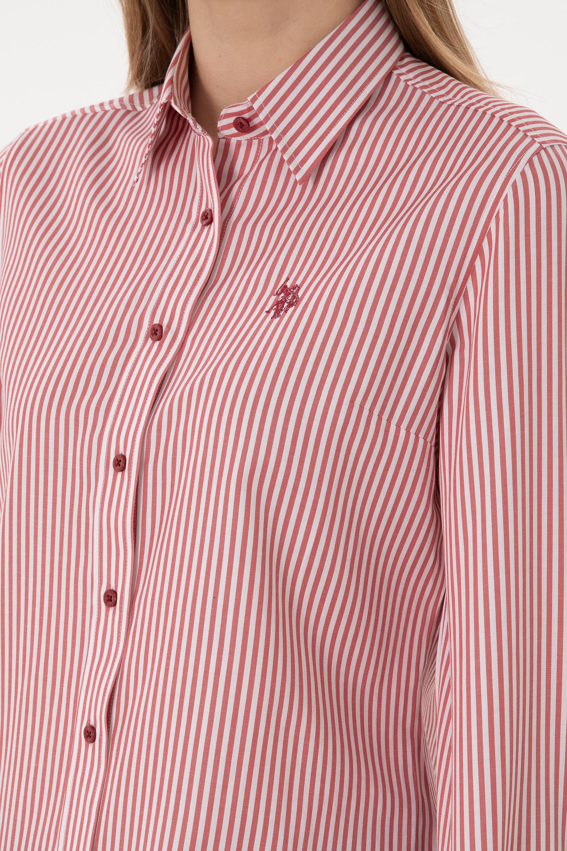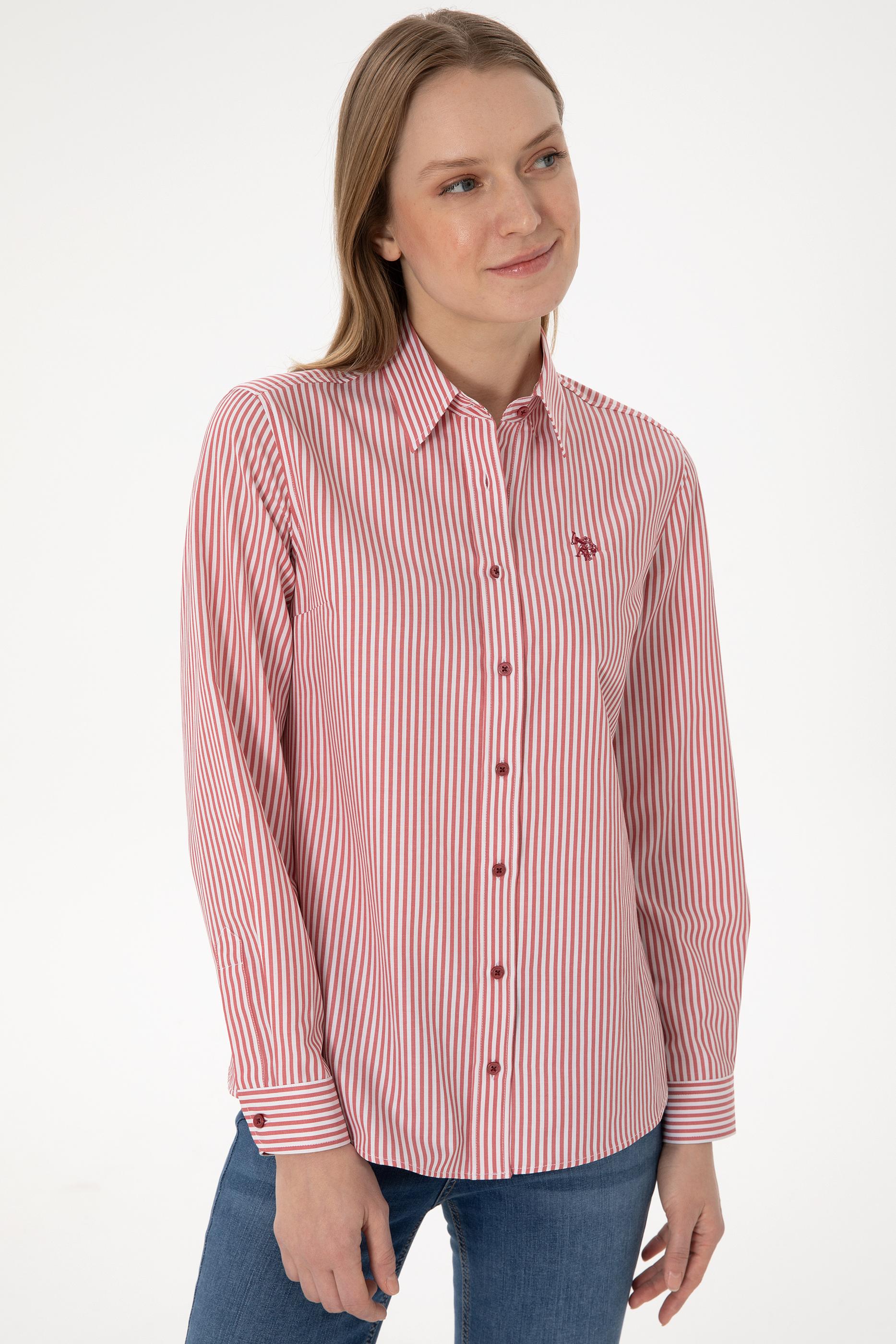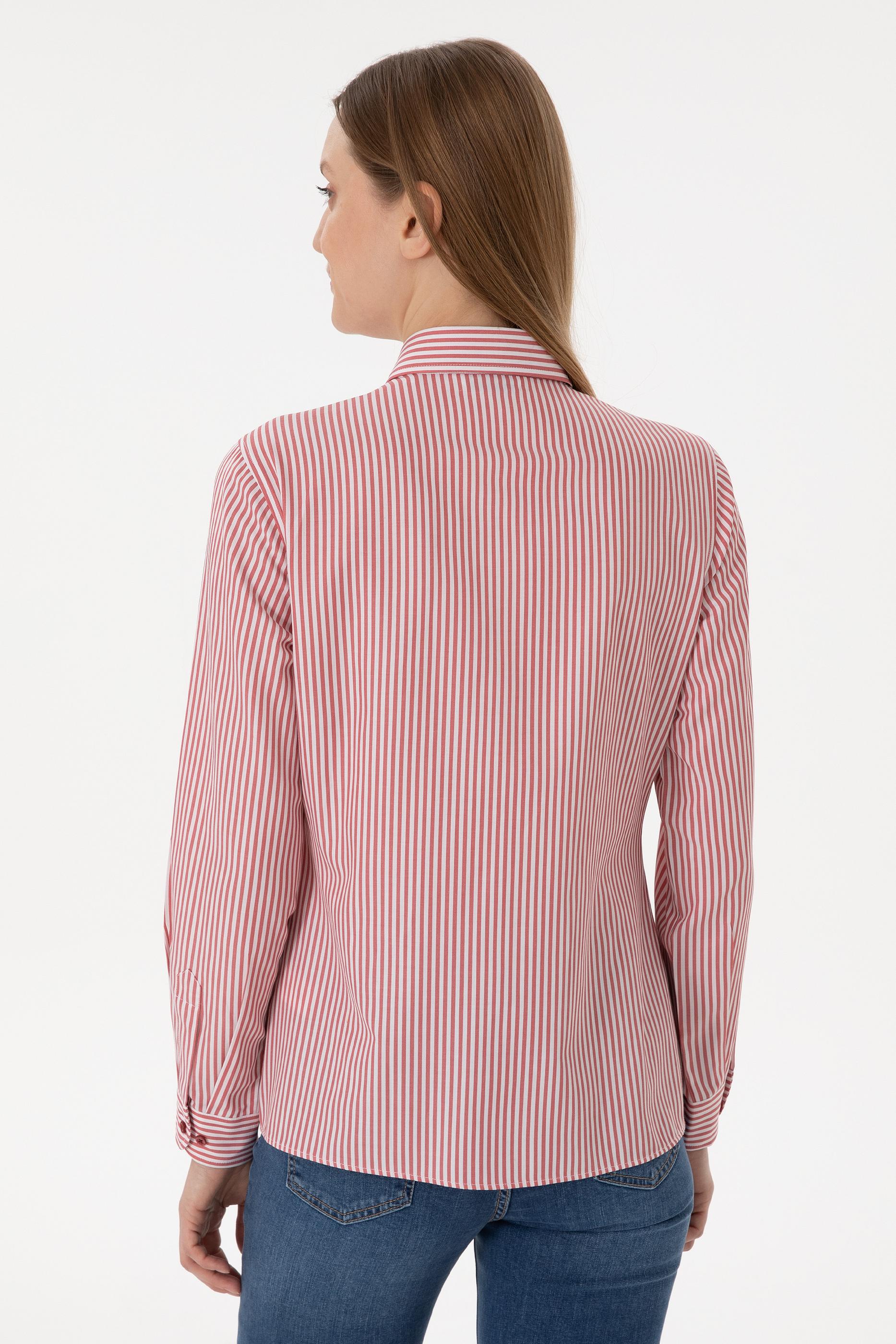 - Kadın Vişne Çizgili Uzun Kollu Gömlek