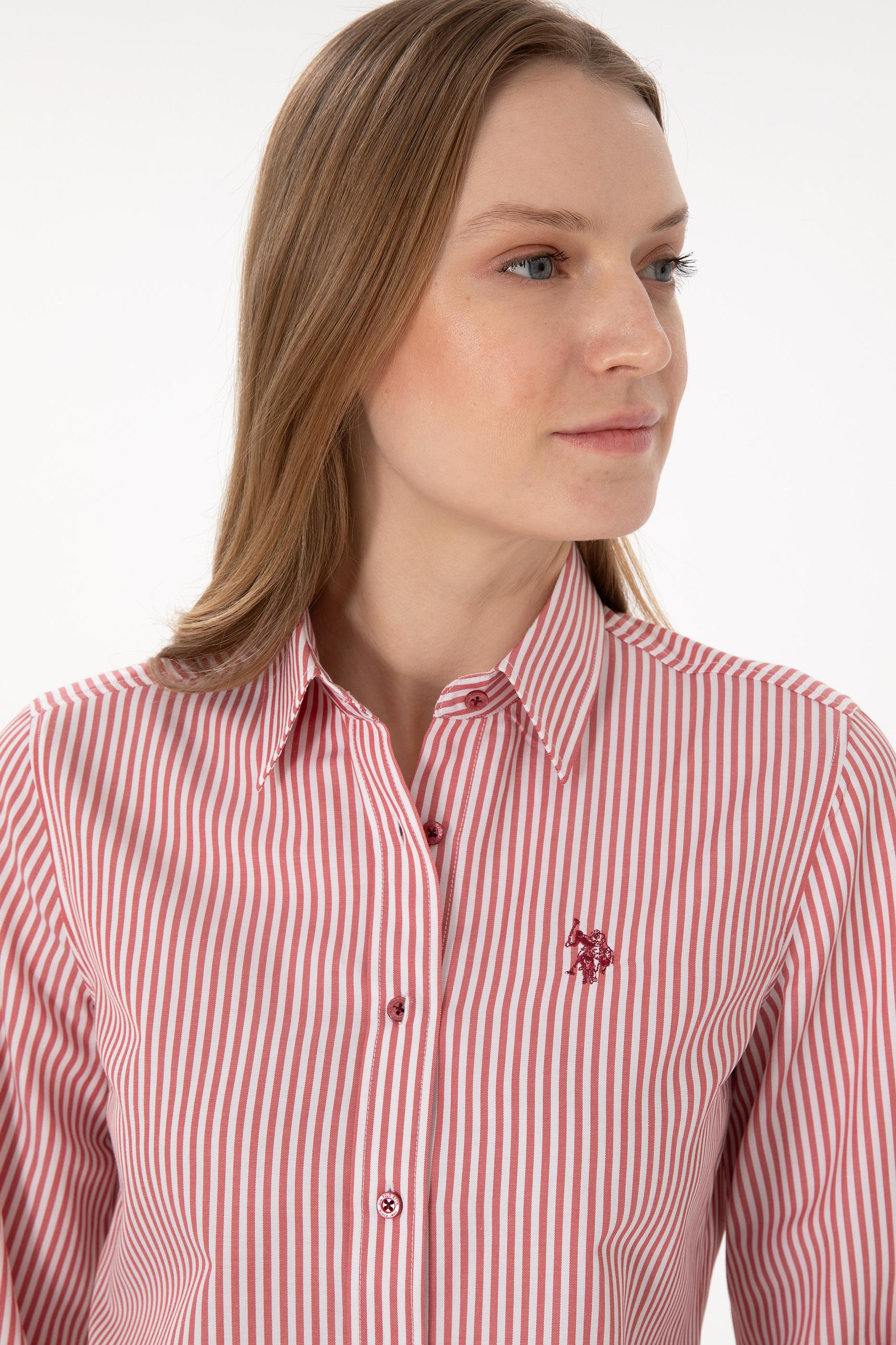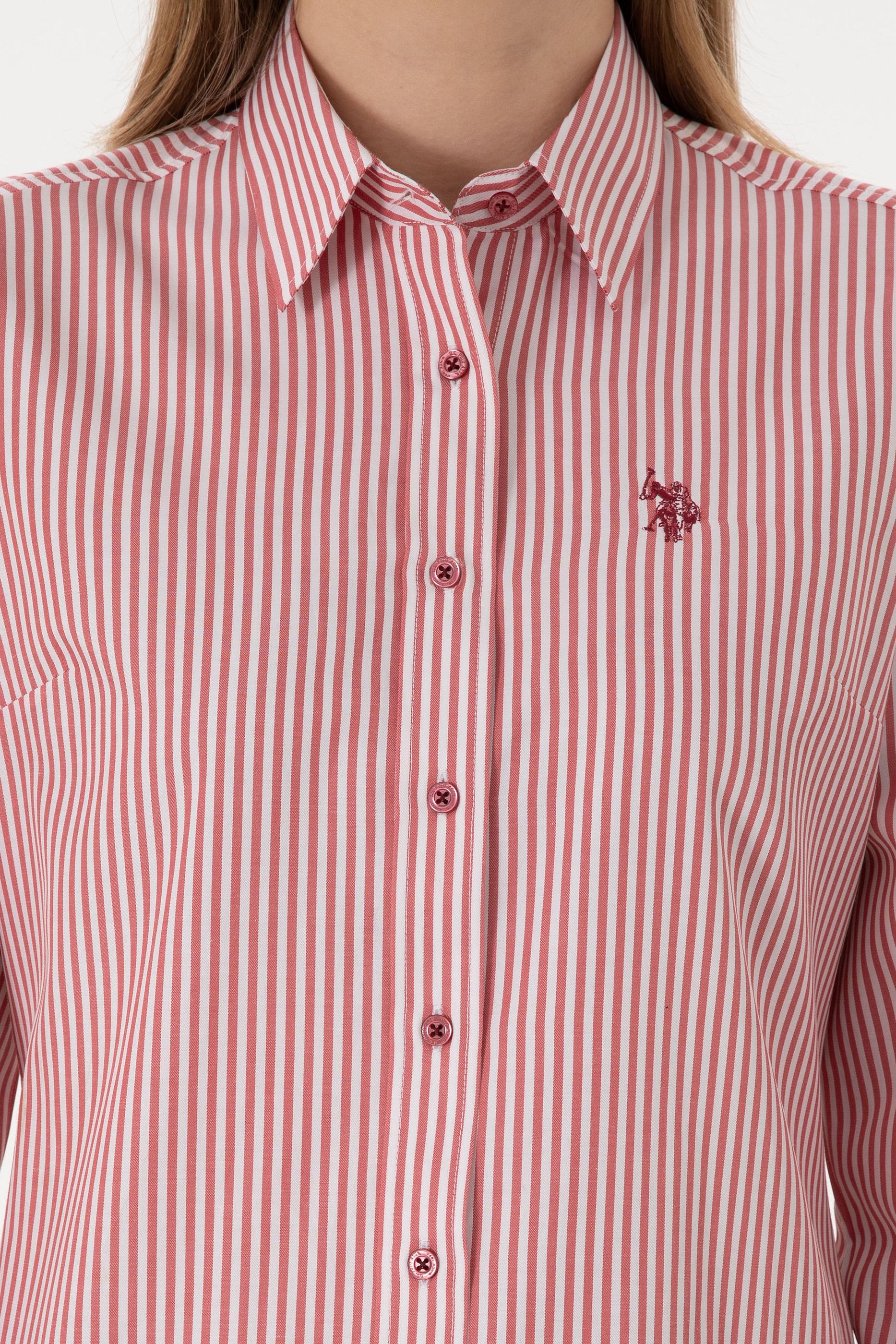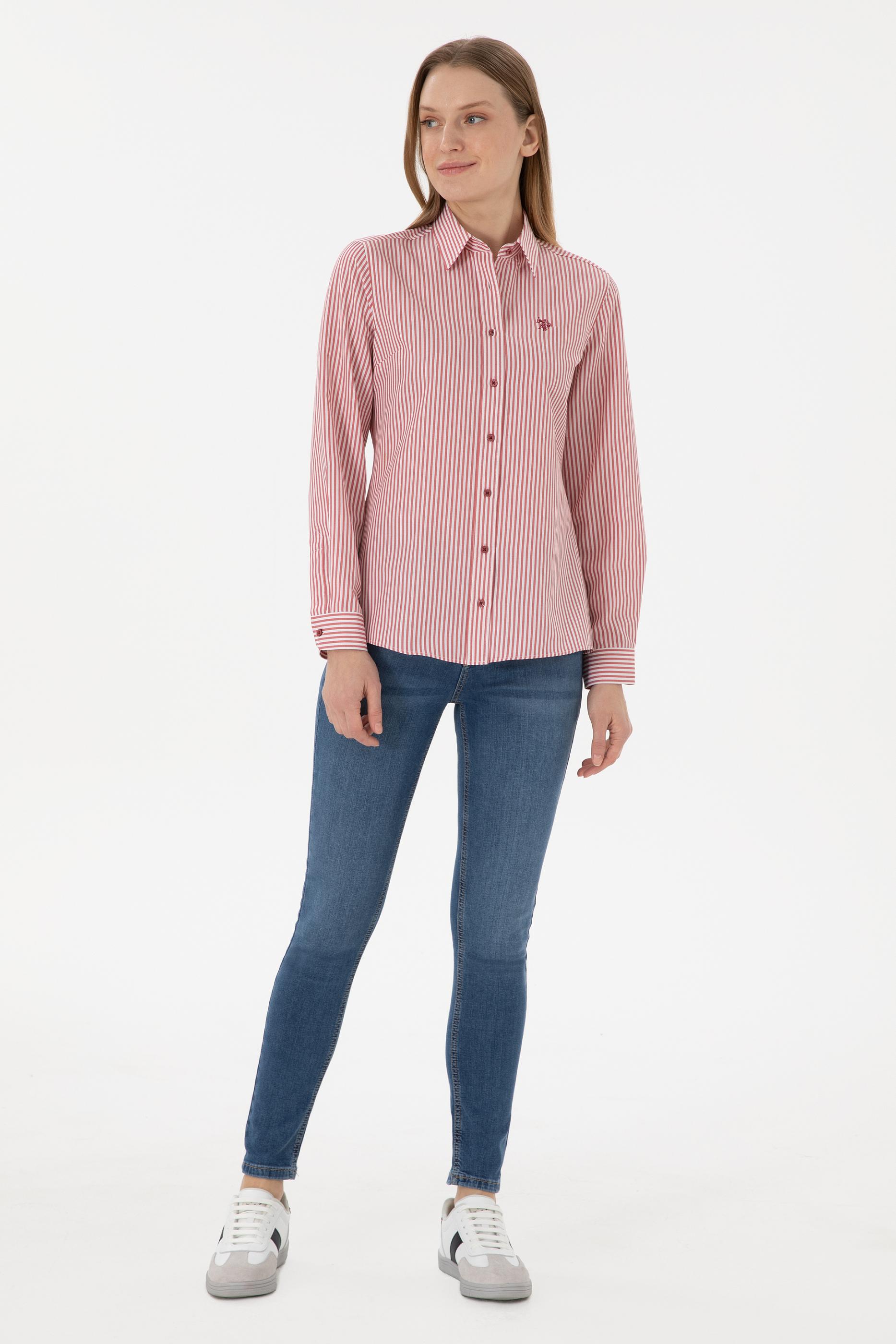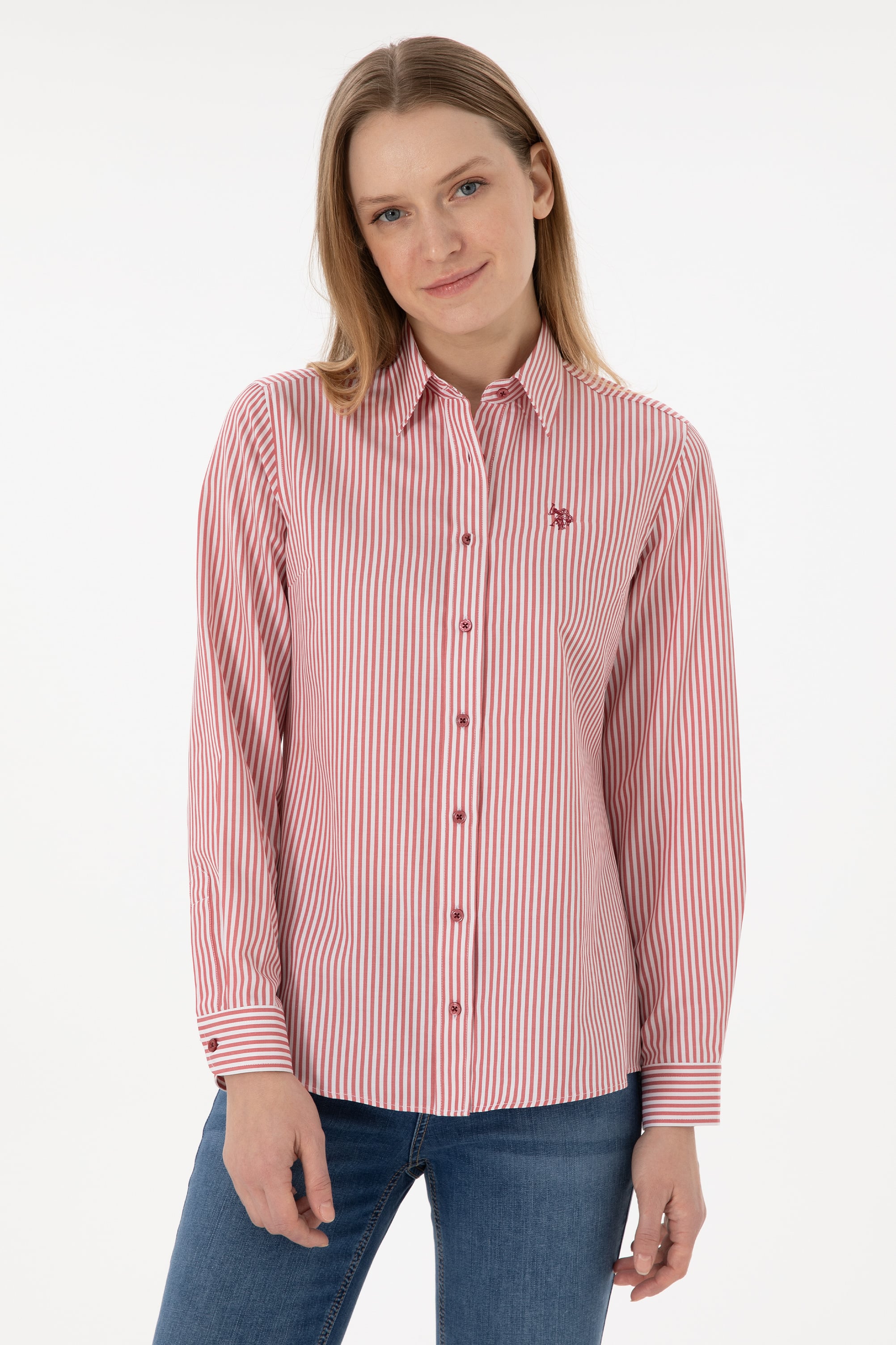 - Kadın Vişne Çizgili Uzun Kollu Gömlek