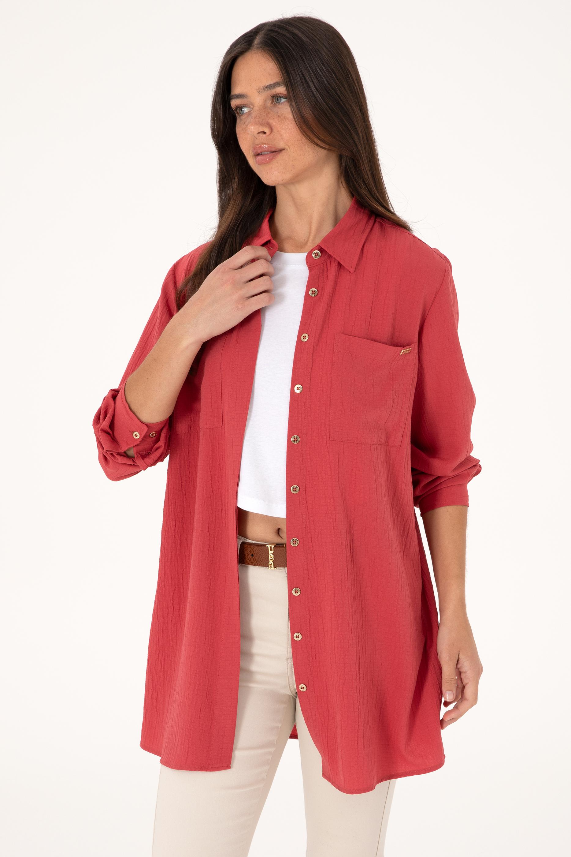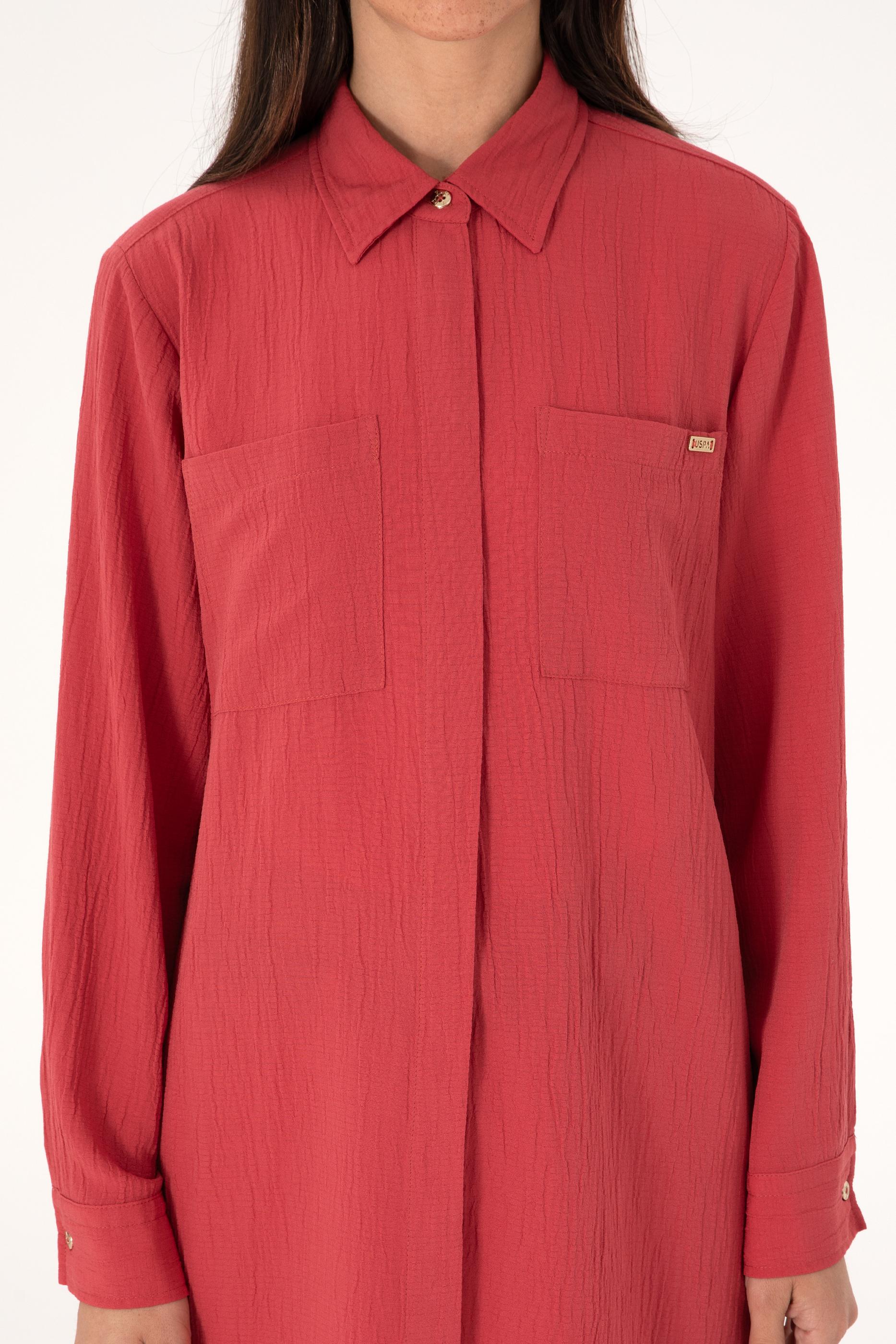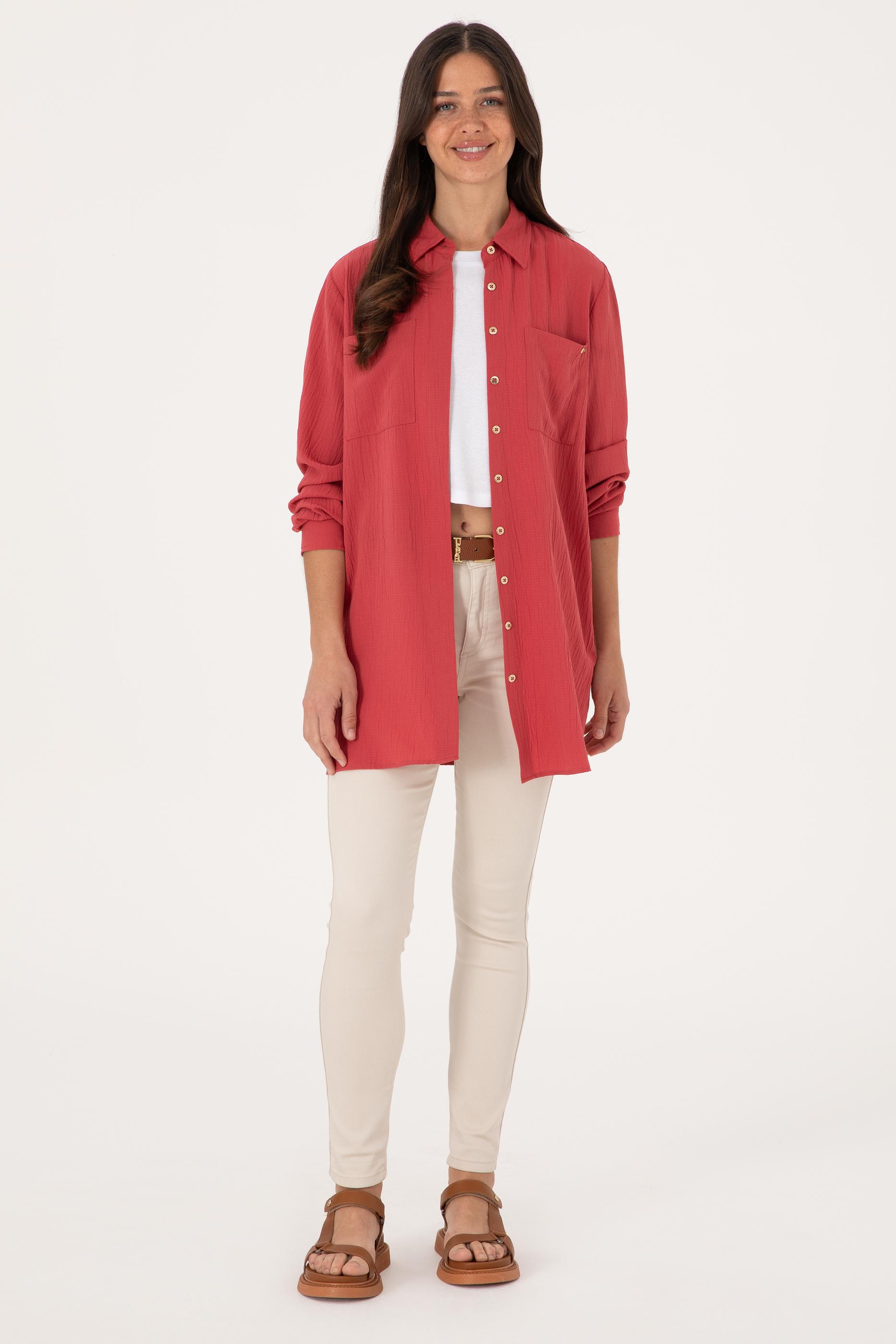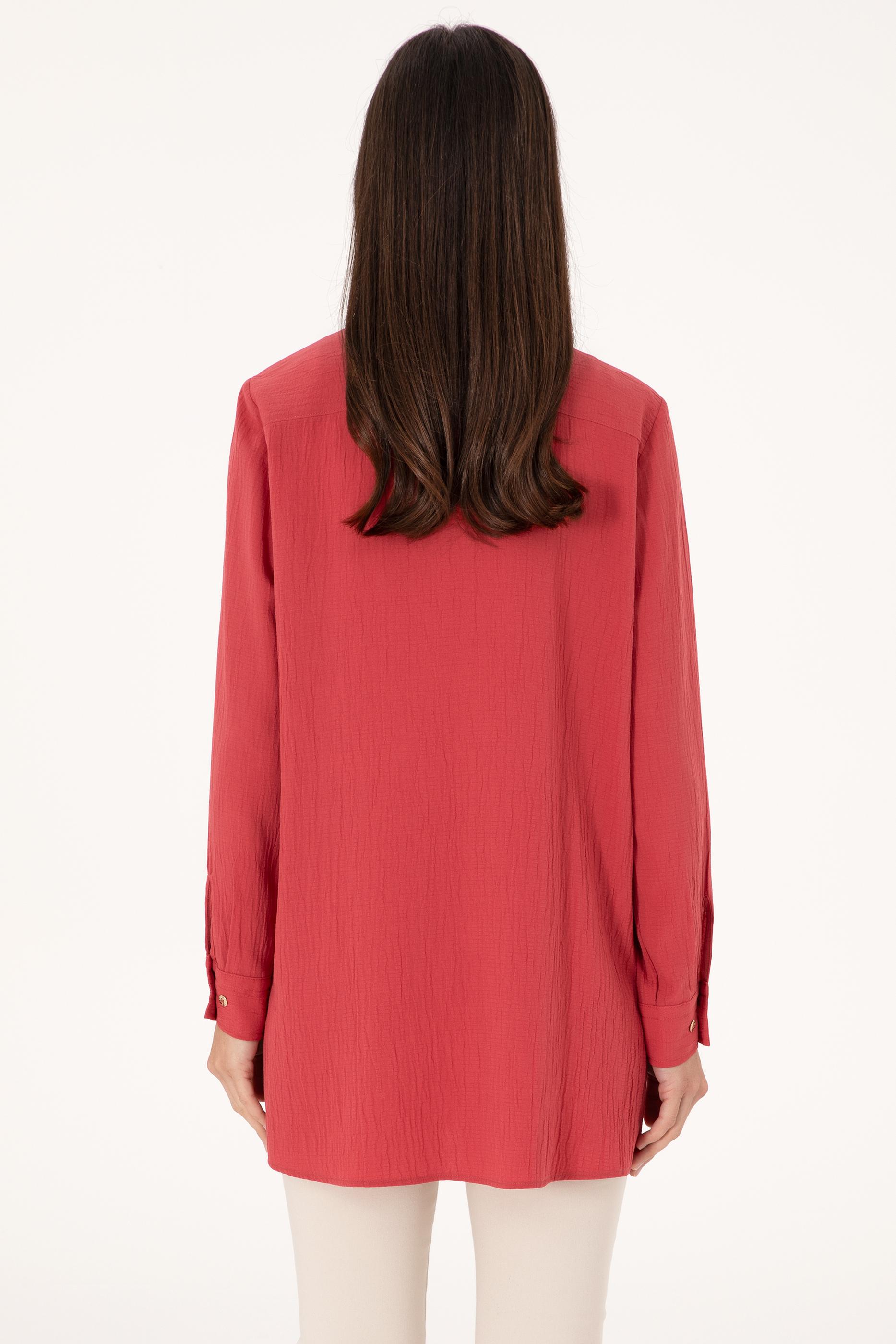 - Kadın Vişne Uzun Kollu Tunik Gömlek