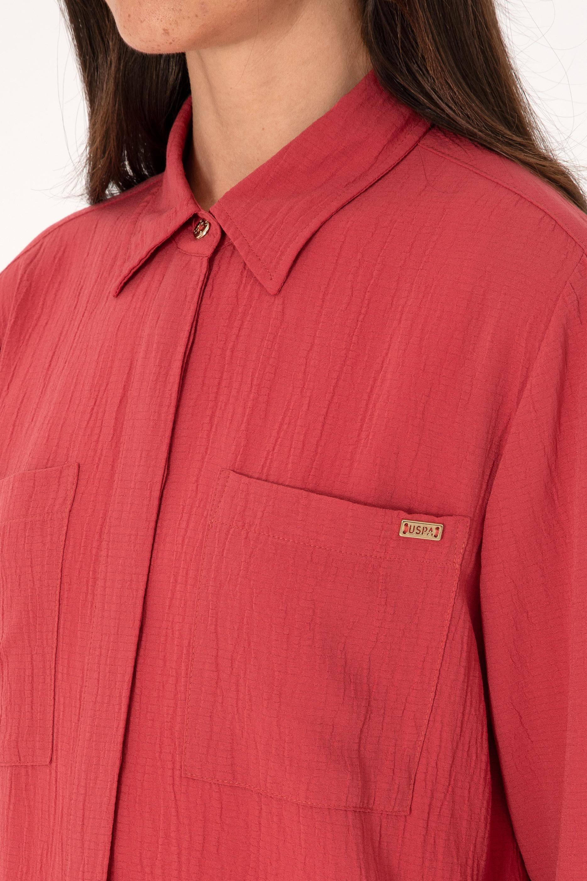 Kadın Vişne Uzun Kollu Tunik Gömlek