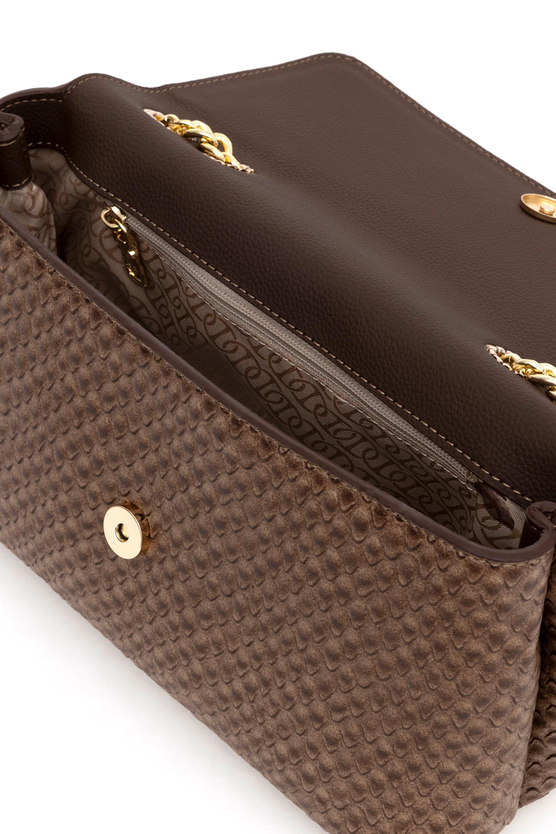 Şık kombinleri zincirli askı detayıyla çok daha göz alıcı hale getirecek kadın omuz çantası modelimiz klipsli metal düğme ile açılıp kapanır. İç tasarımında bulunan fermuarlı göz sayesinde kişisel eşyalarınızı güvenle yanınıza alabileceğiniz kadın omuz çantası modelimize sadece Online’a özel olarak, tek tıkla ulaşabilirsiniz.
