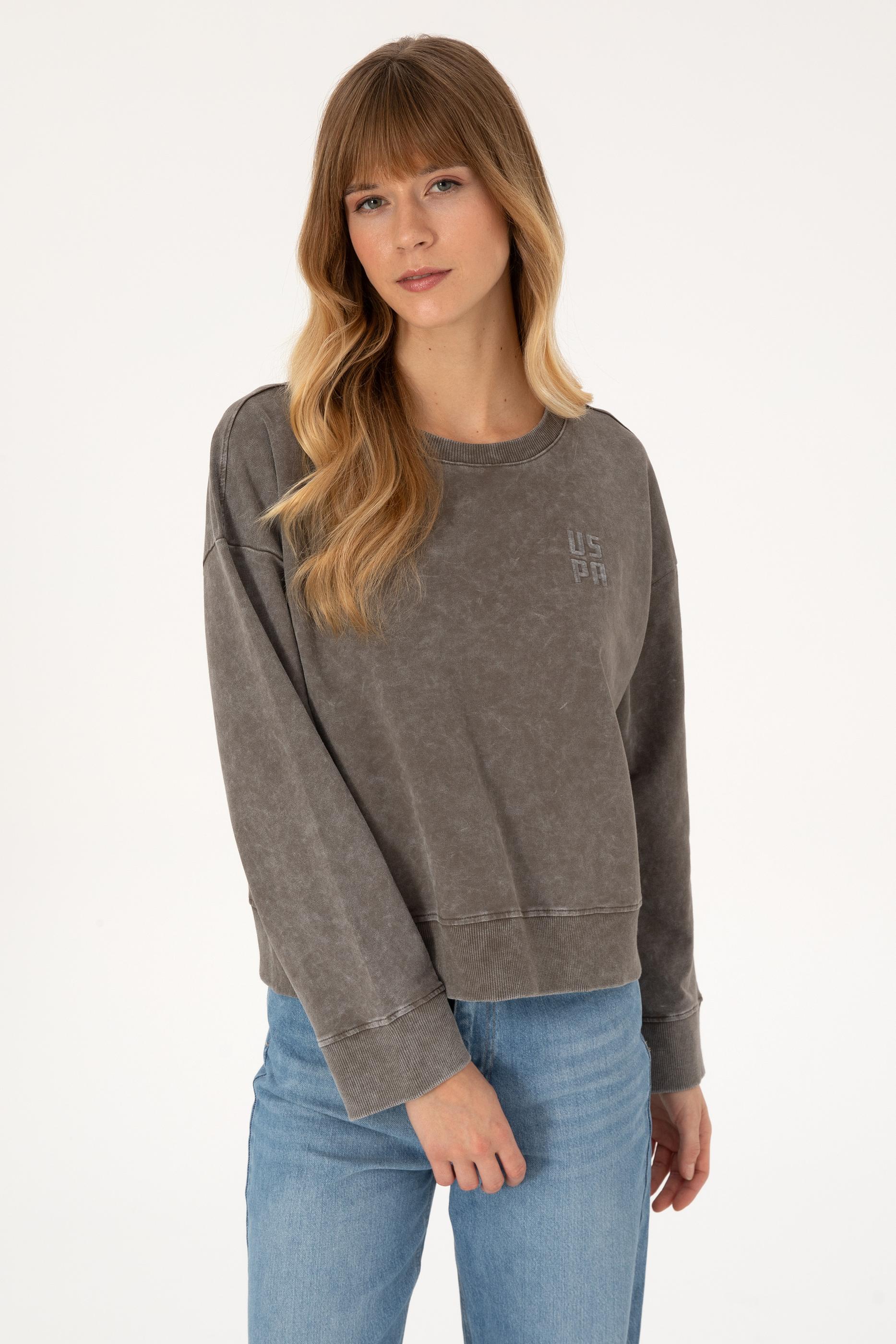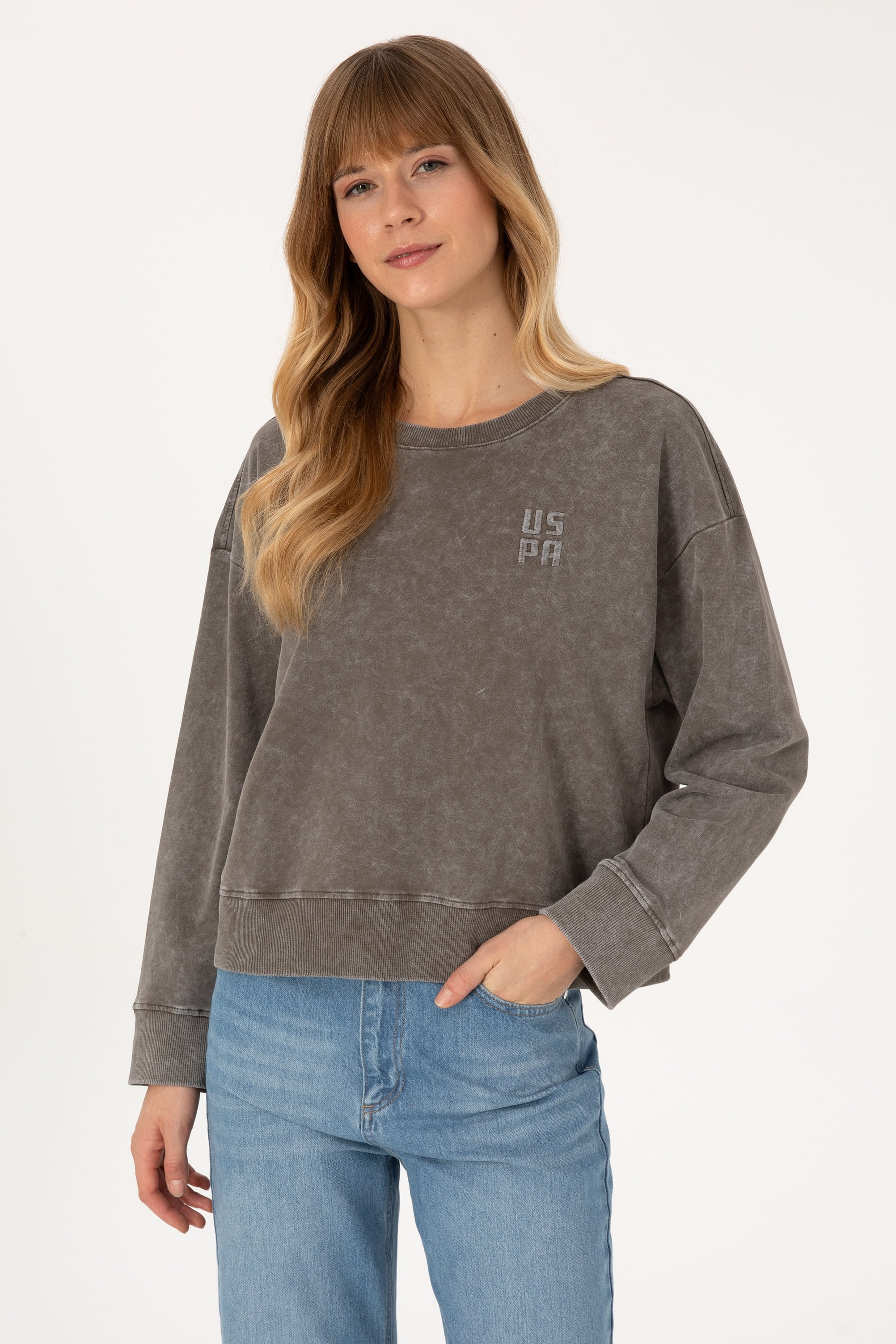 - Kadın Vizon Yıkamalı Bisiket Yaka Sweatshirt