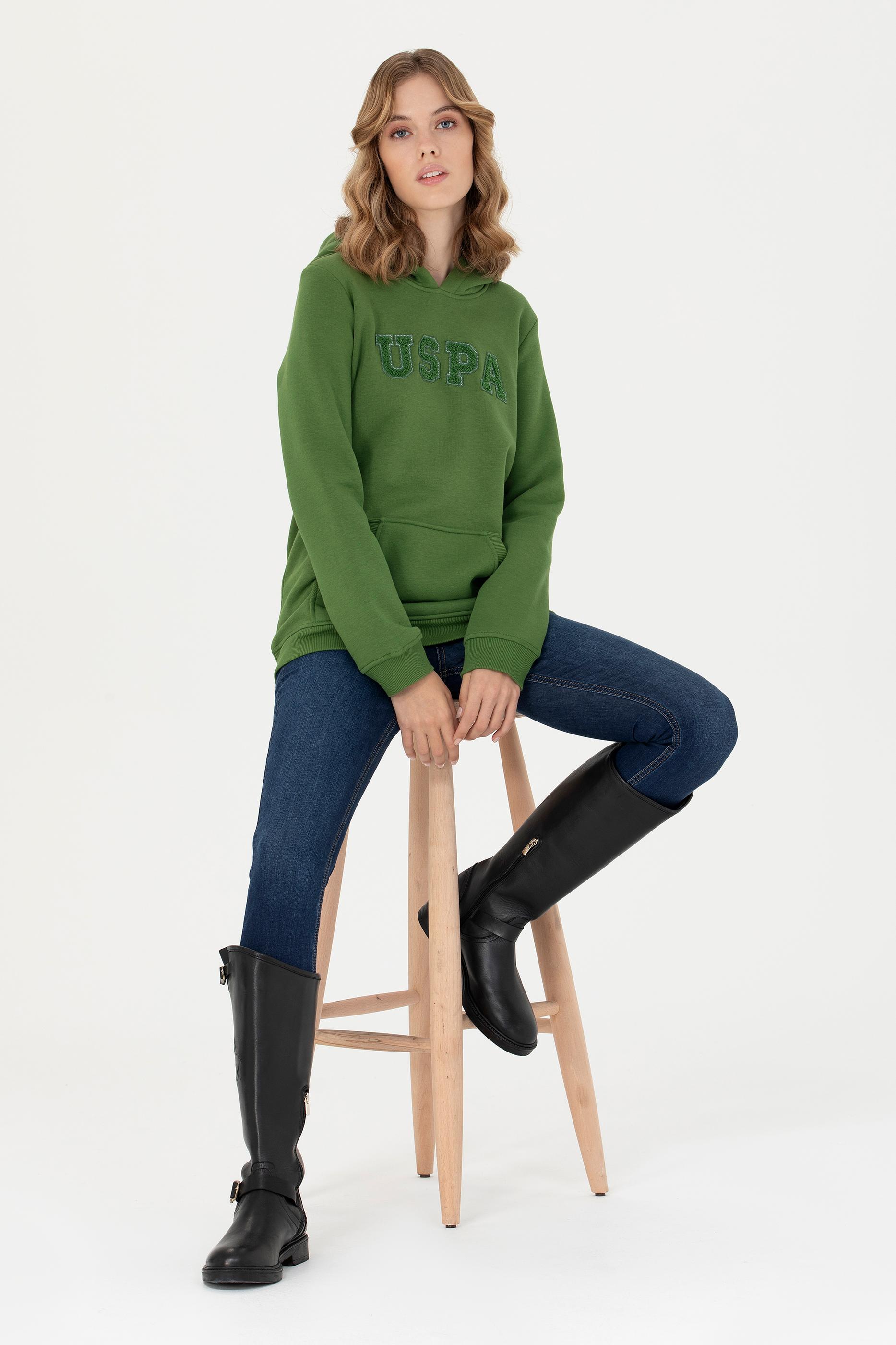 - Kadın Yeşil Kapüşonlu Basic Sweatshirt