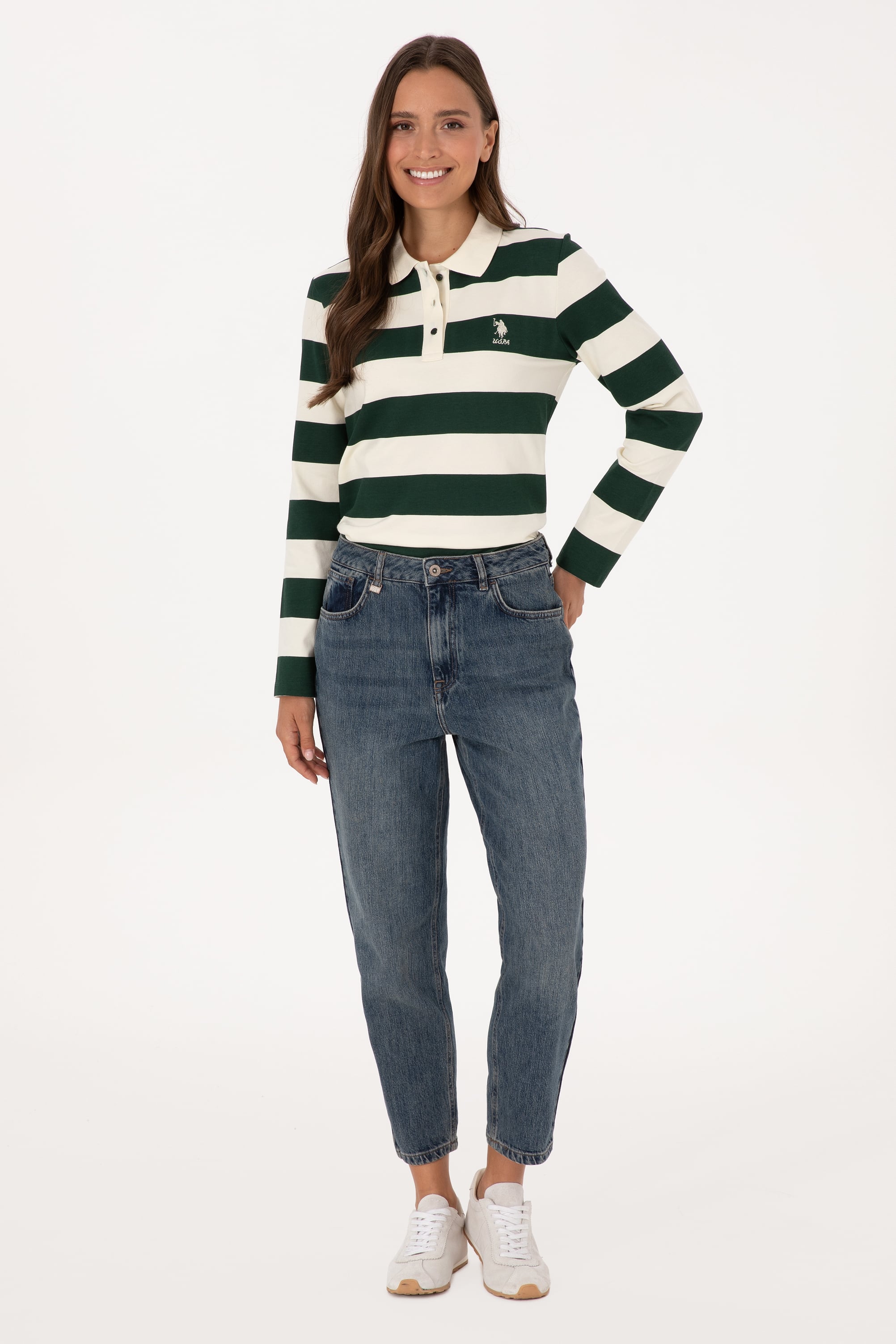 Kadın Yeşil Mom High Waist Fit Jean Pantolon
