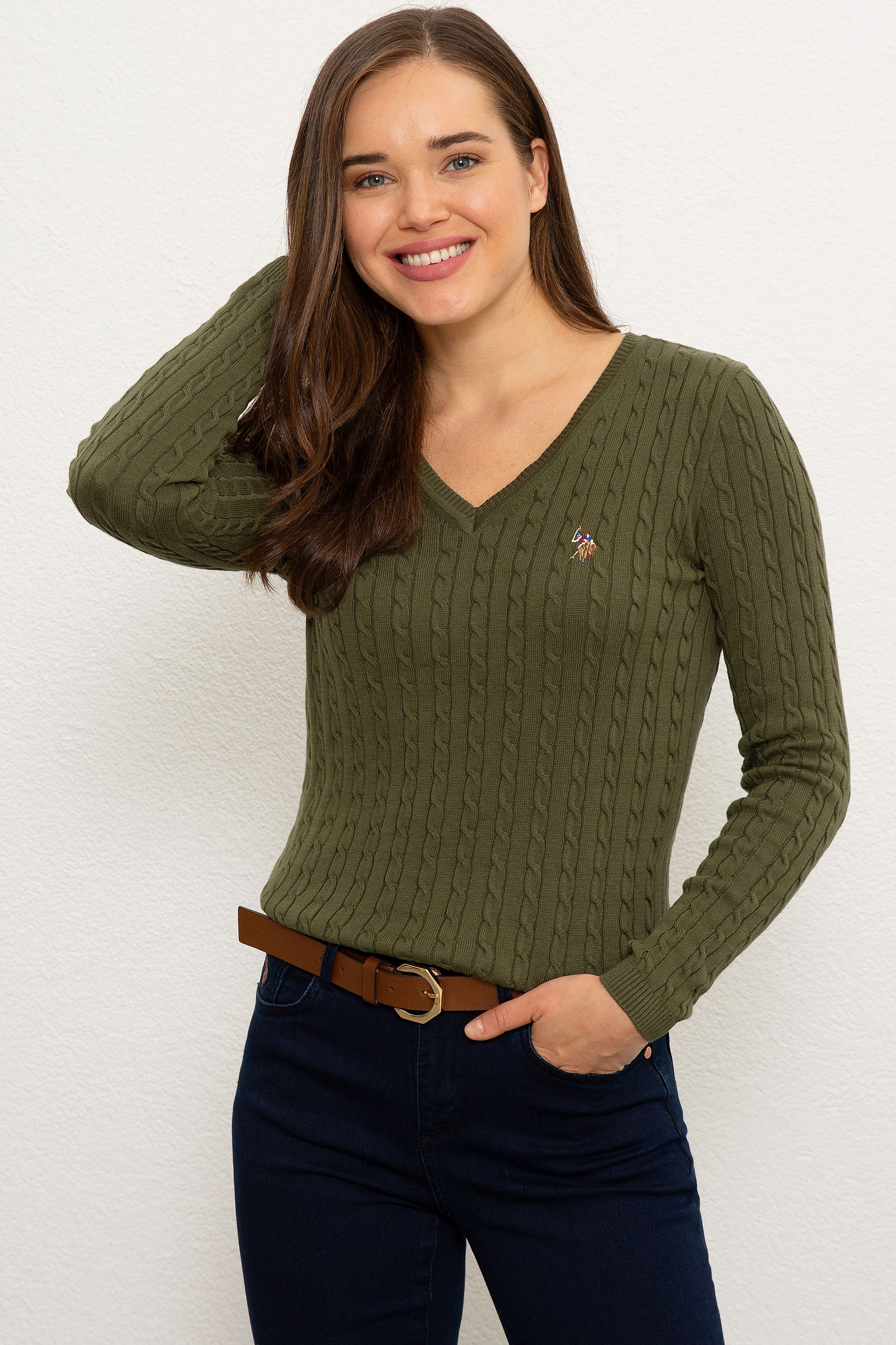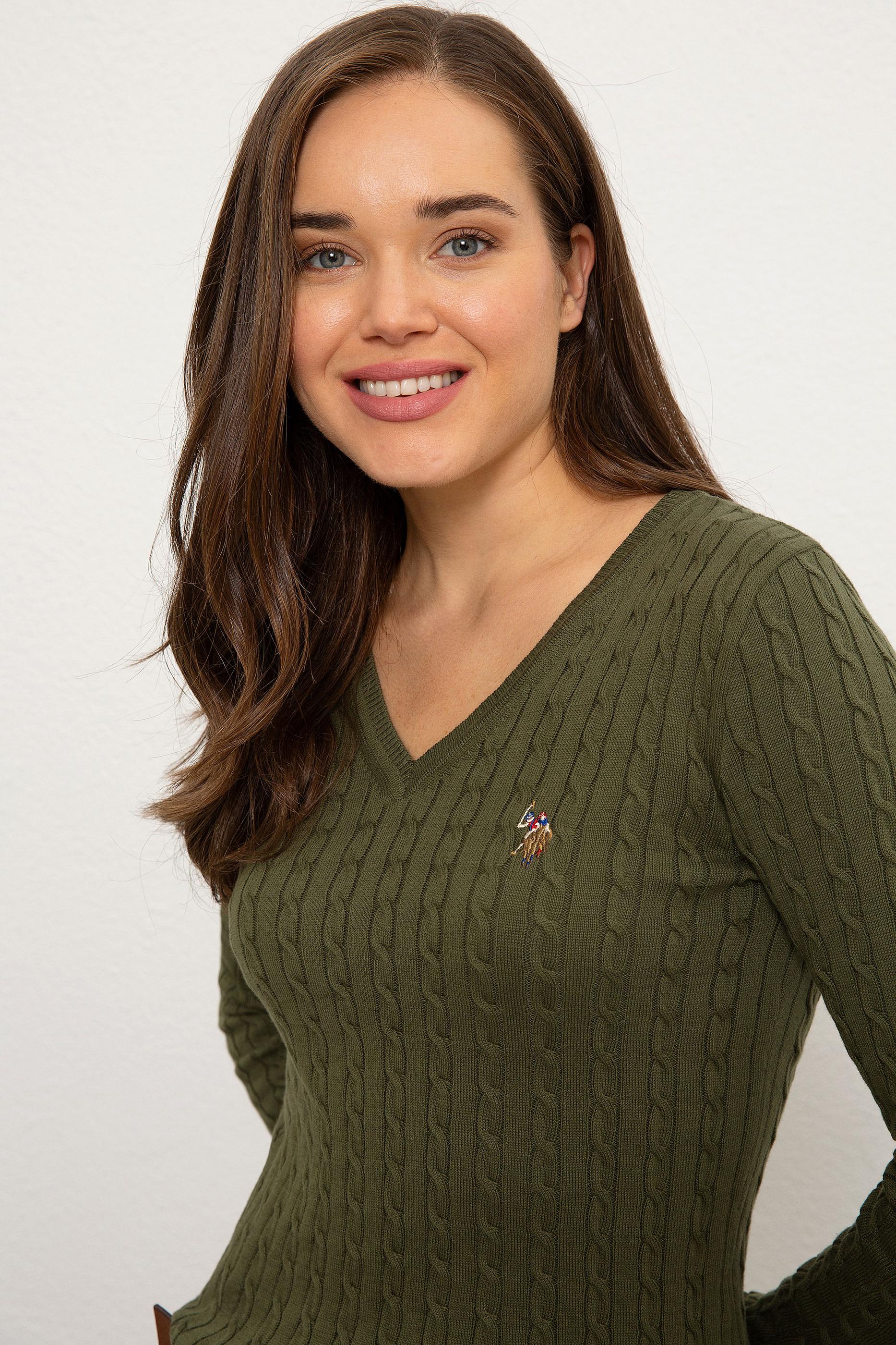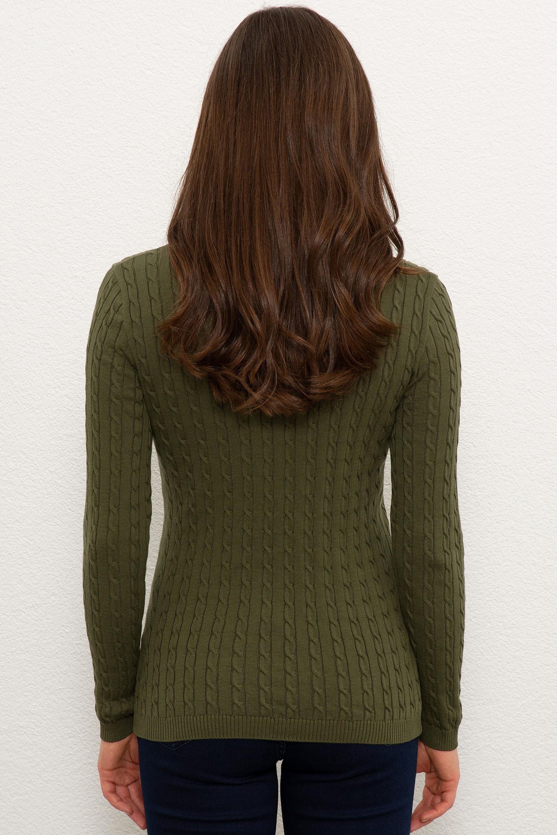Kadın Yeşil Triko Kazak Basic