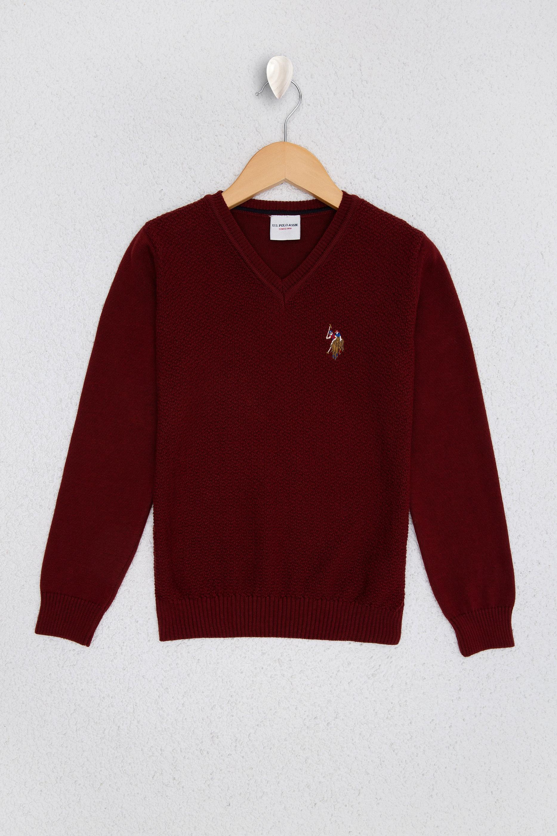 Erkek Çocuk Bordo Bisiklet Yaka Triko Kazak