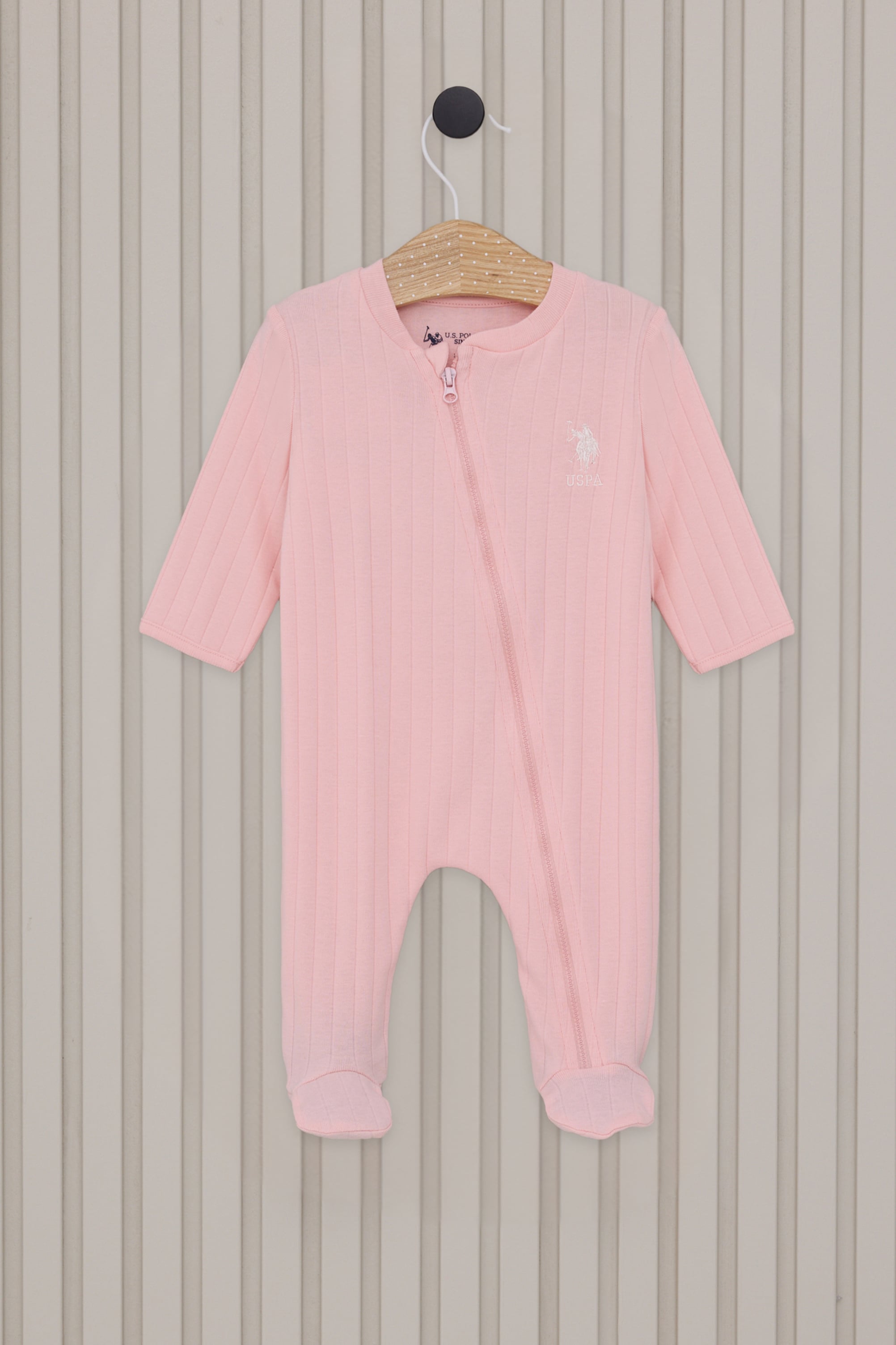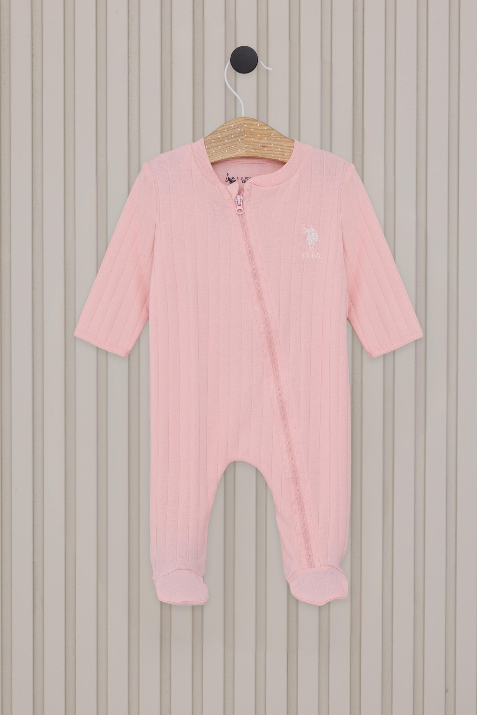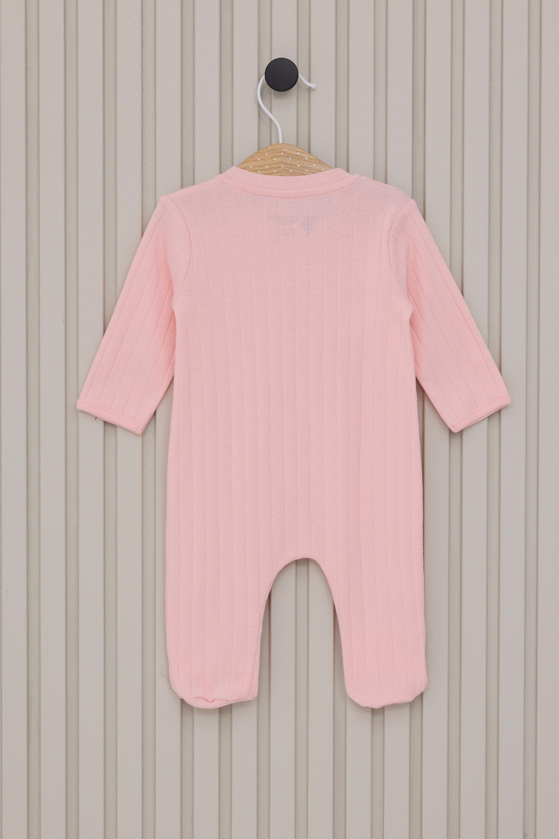 Kız Bebek Açık Pembe Fermuarlı %100 Pamuk Patikli Tulum