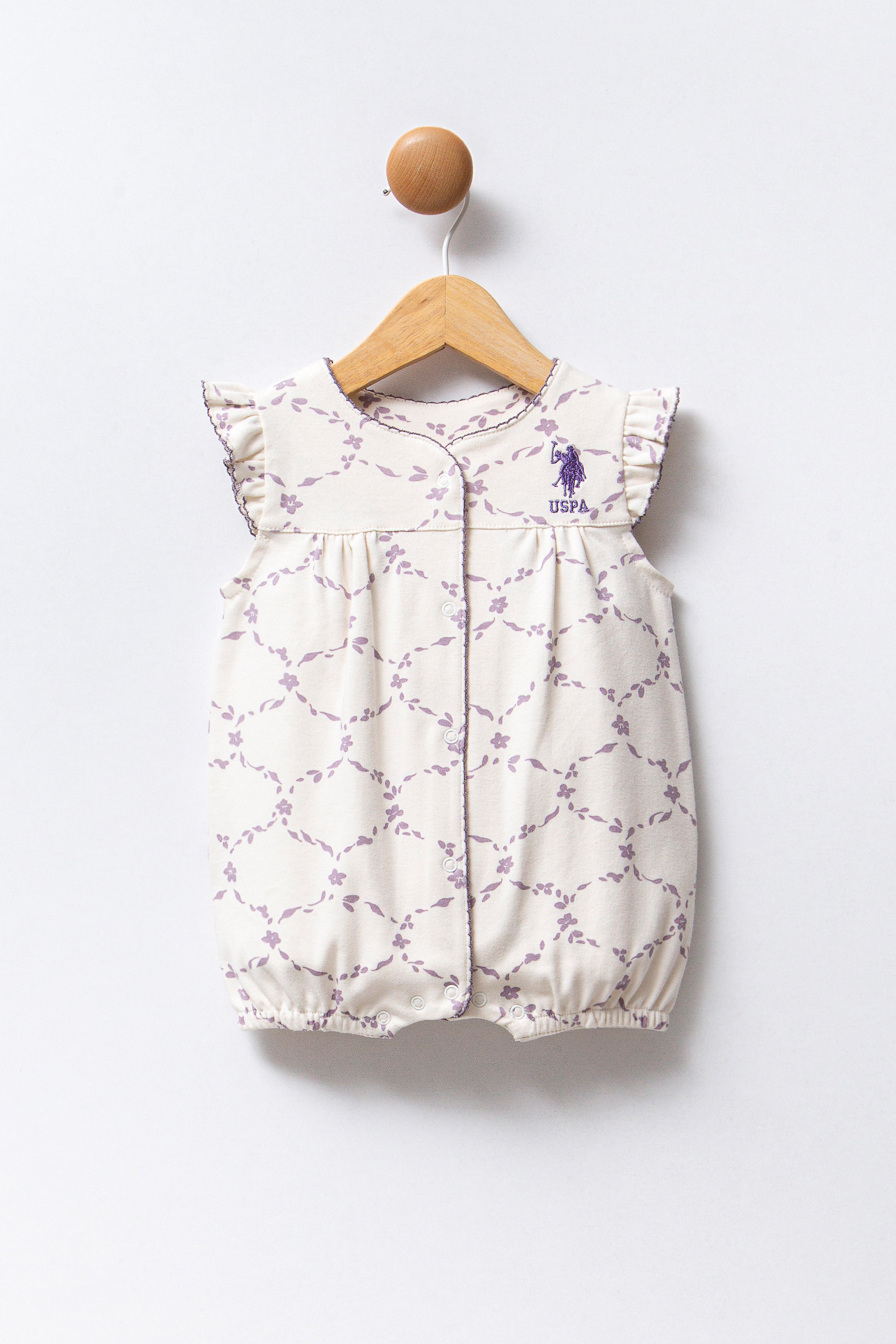 Kız Bebek Beyaz Desenli Fırfır Kollu %100 Pamuk Kısa Tulum