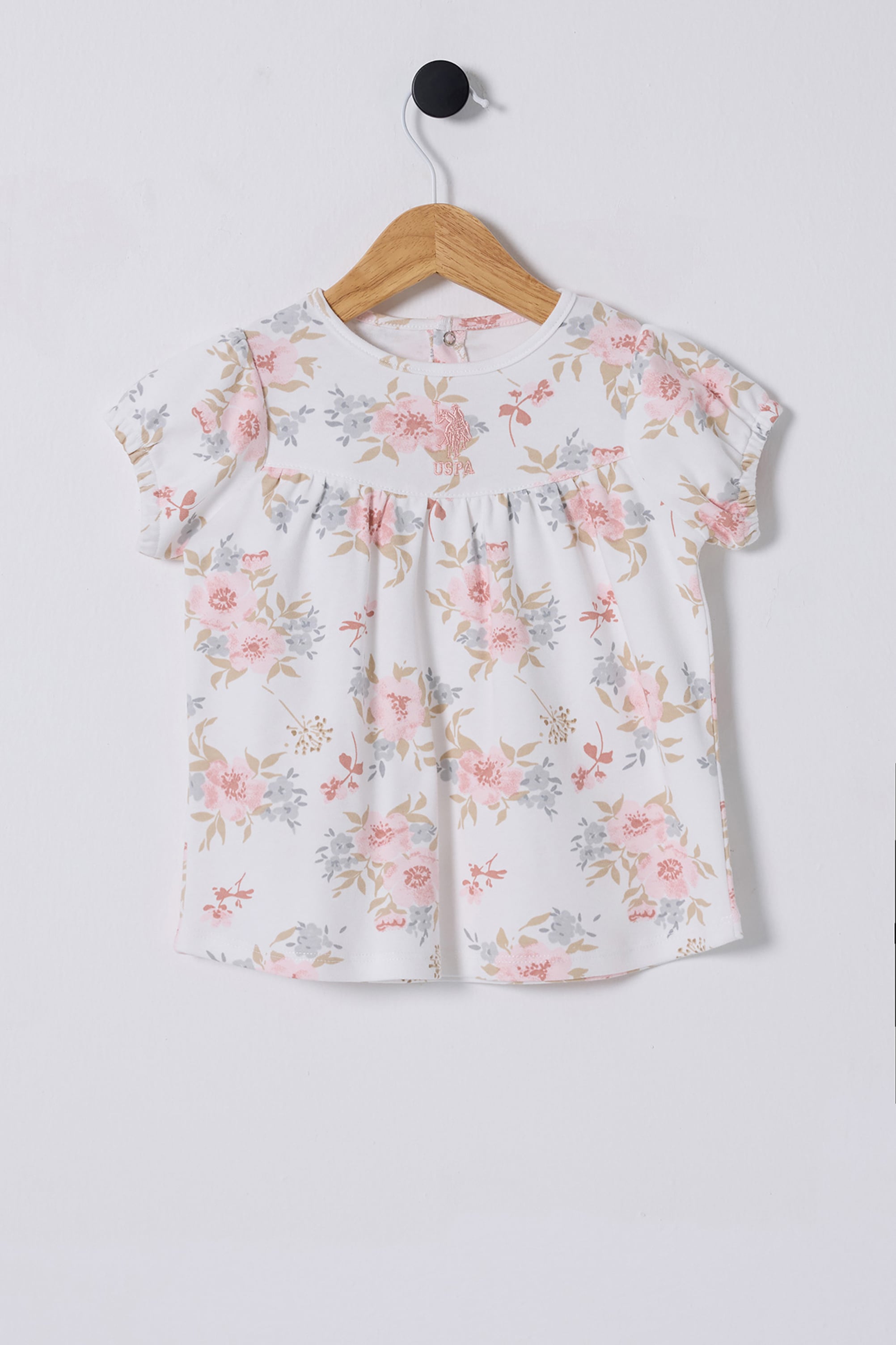 Kız Bebek Beyaz Çiçek Desenli Elbise