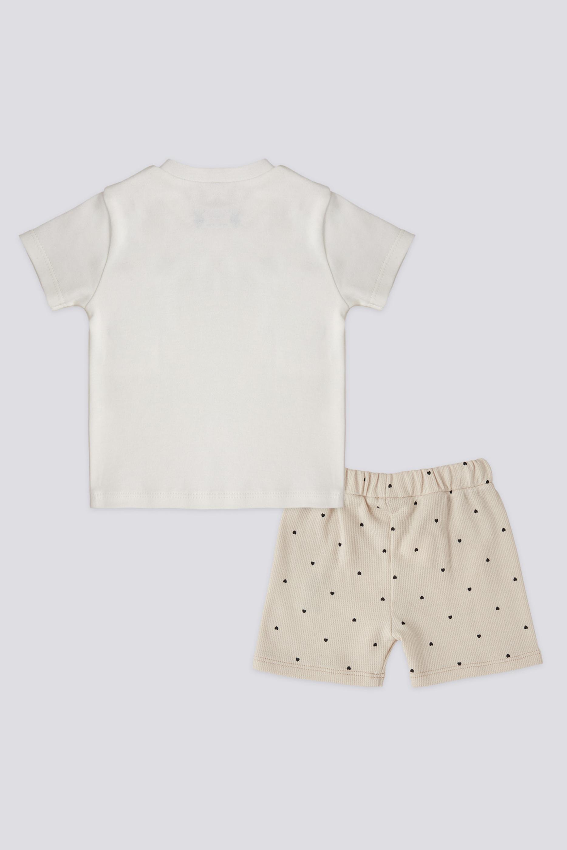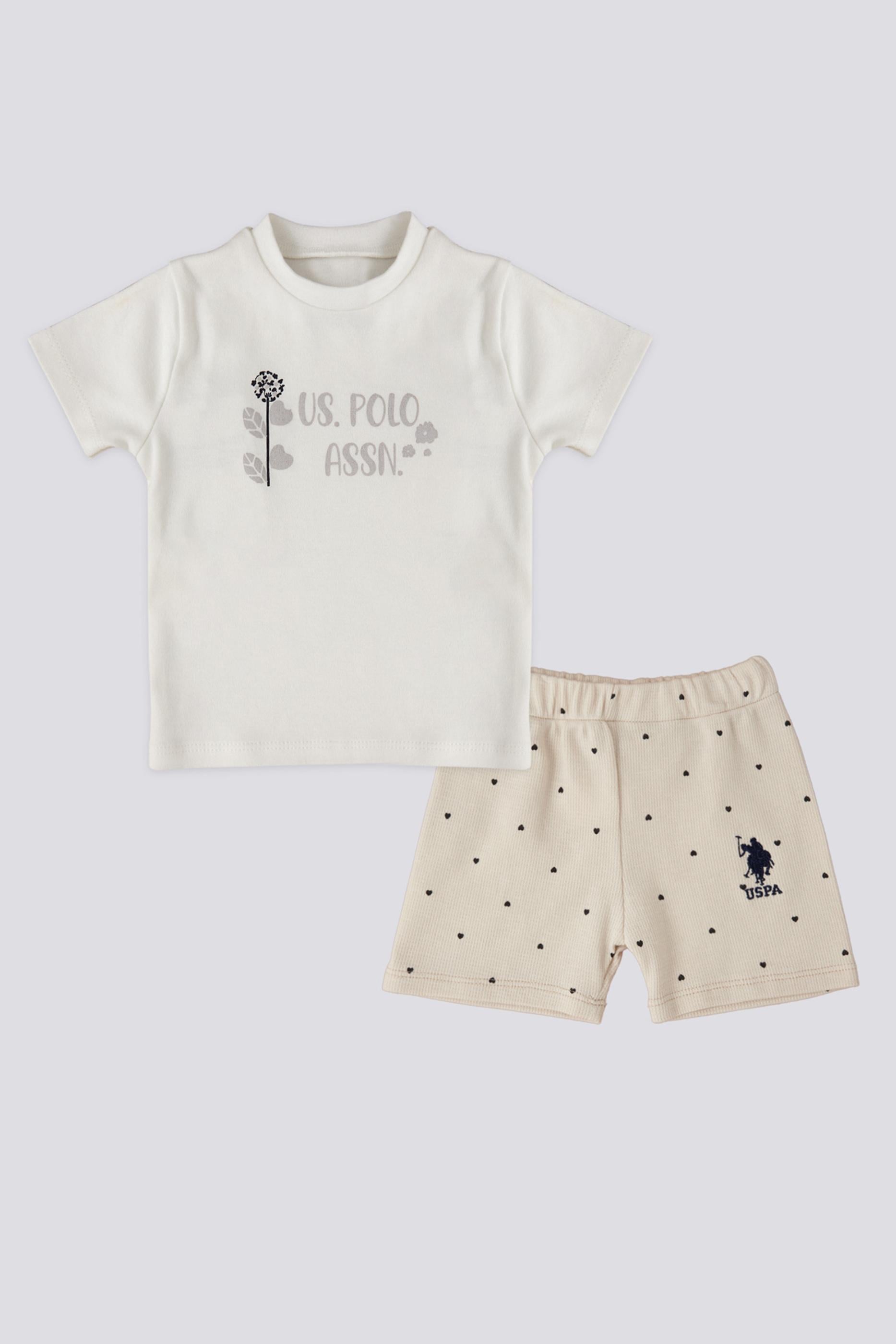 - Kız Bebek Bej Puantiyeli 2'li Kısa Kol Tişört Takım