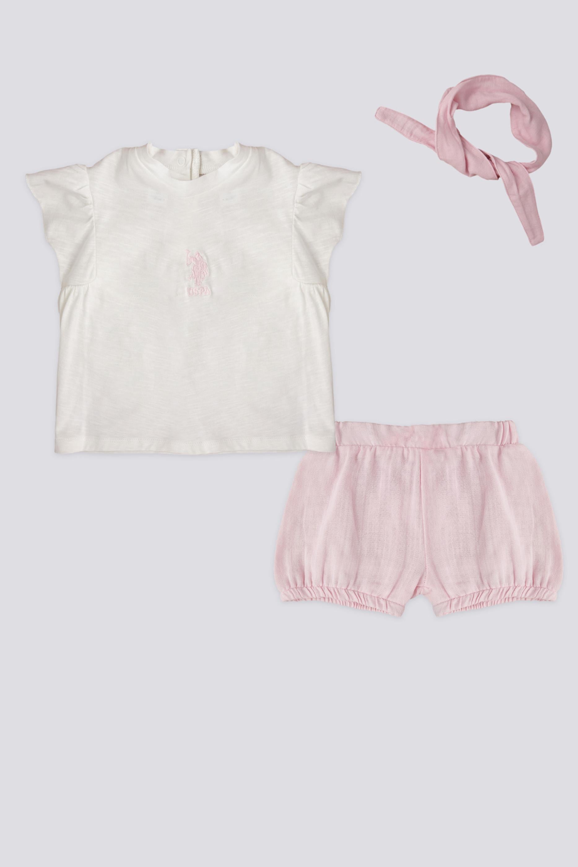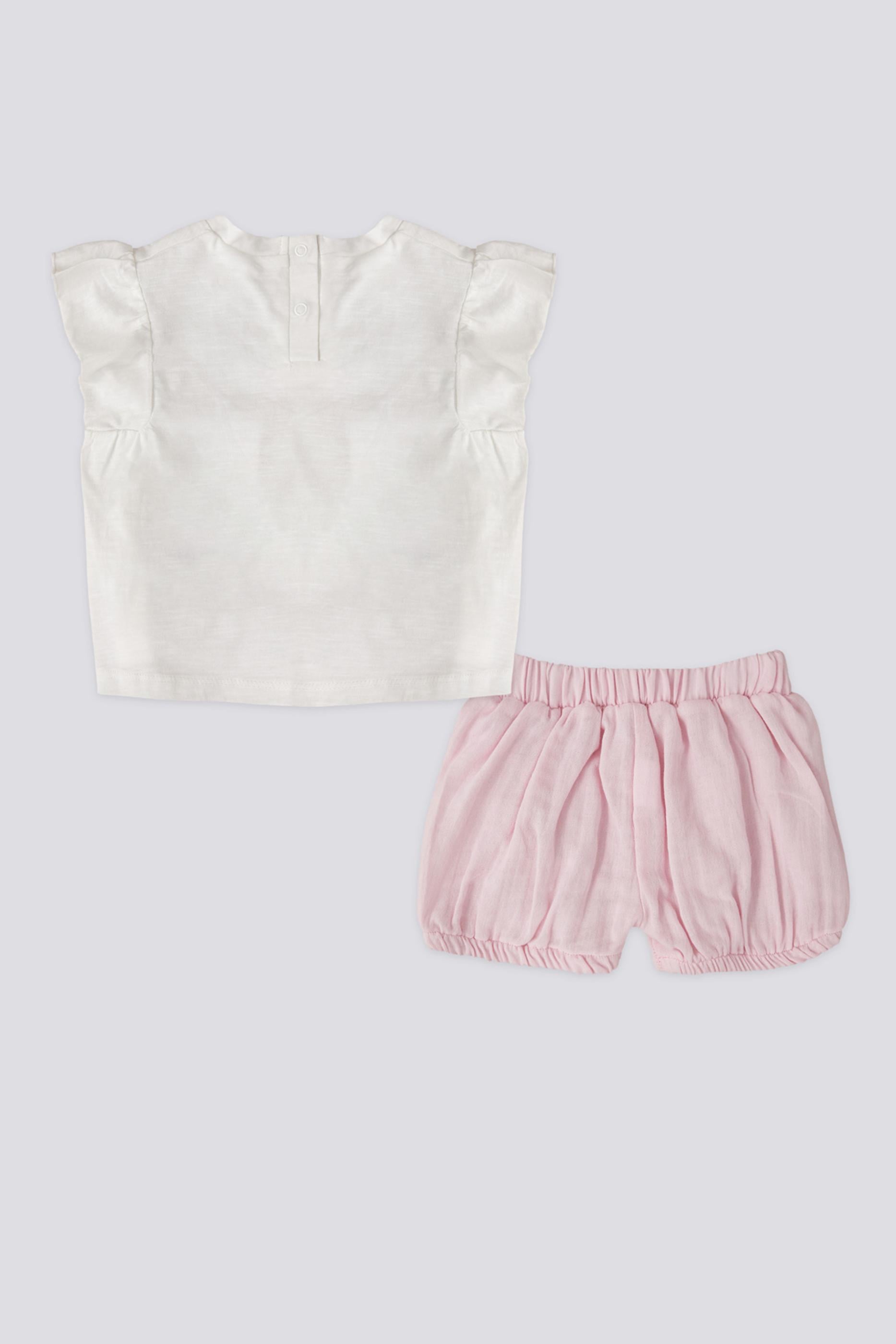 - Kız Bebek Pembe Fırfırlı 3'lü Kısa Kol Tişört Takım