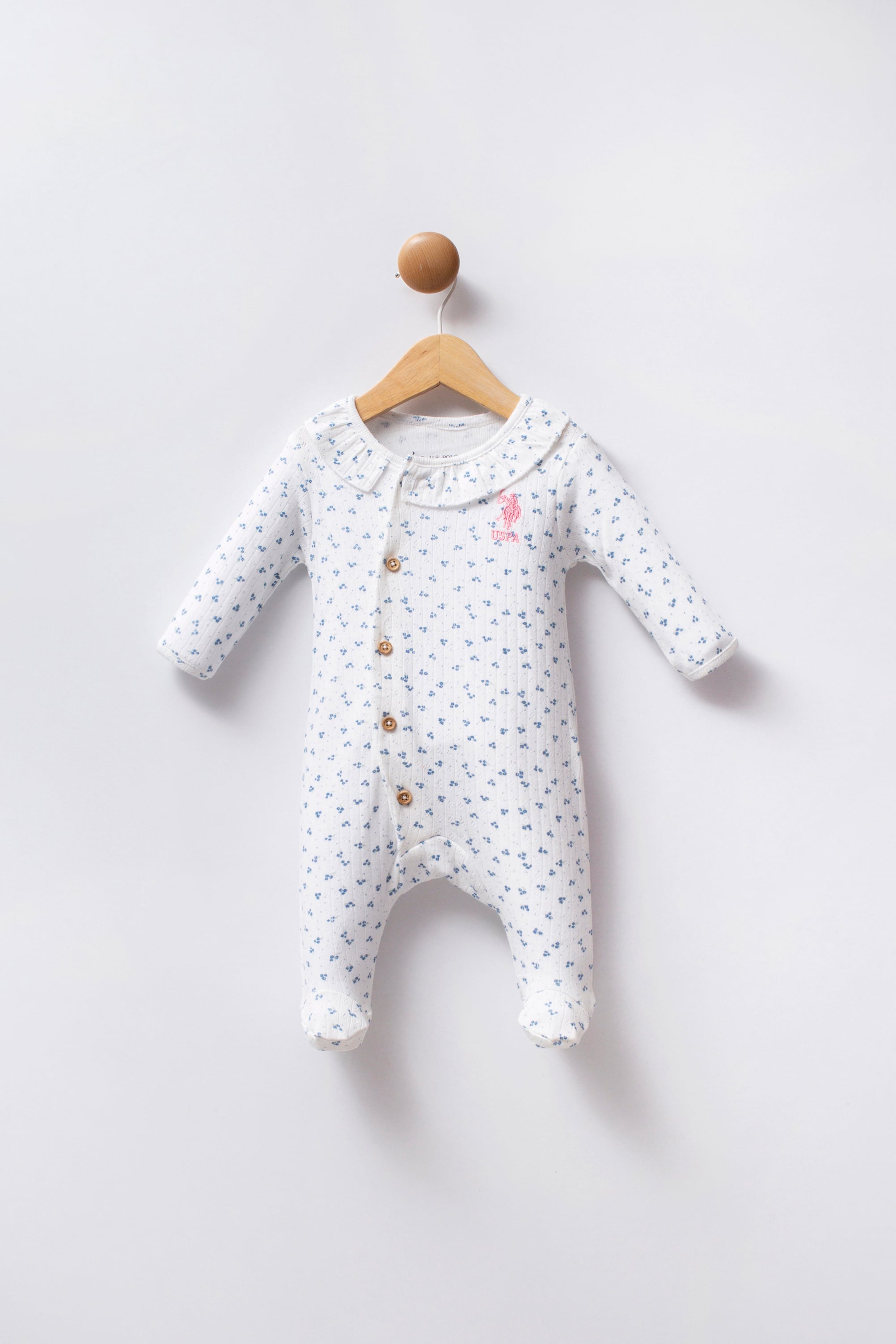 Kız Bebek Mavi Minimal Desen Fitilli Patikli Tulum